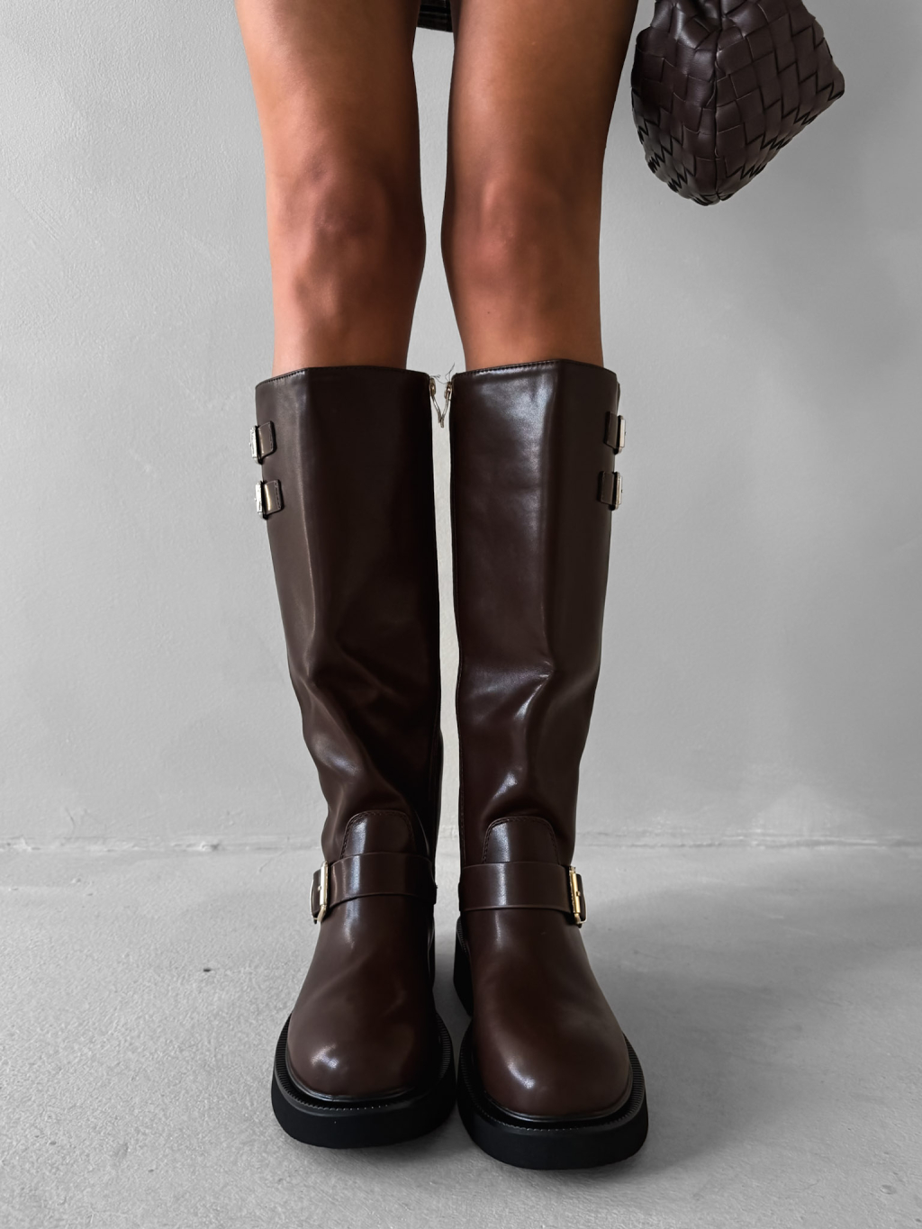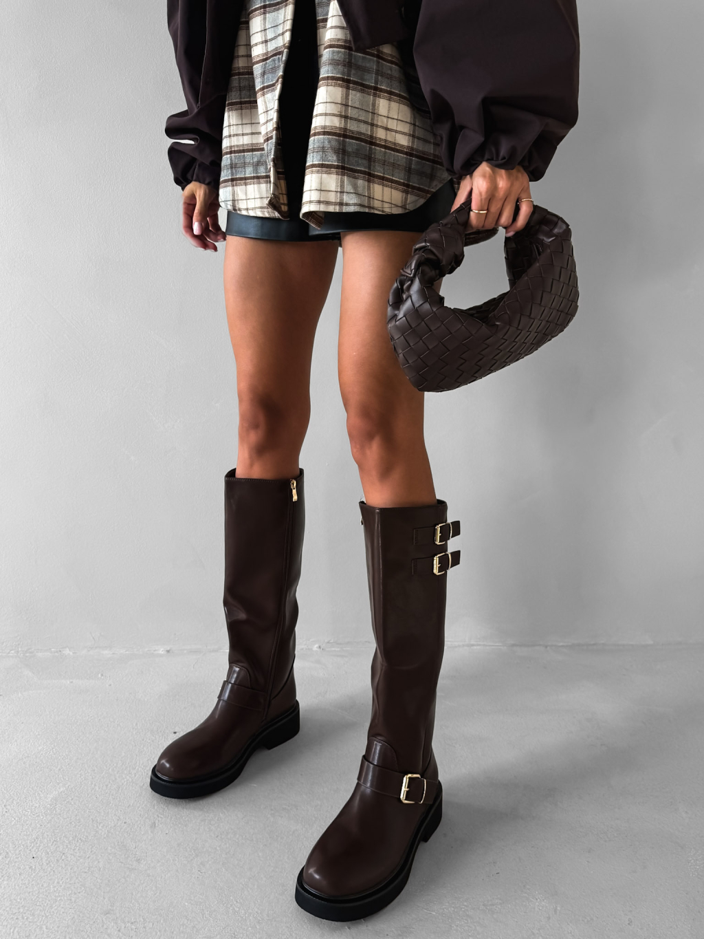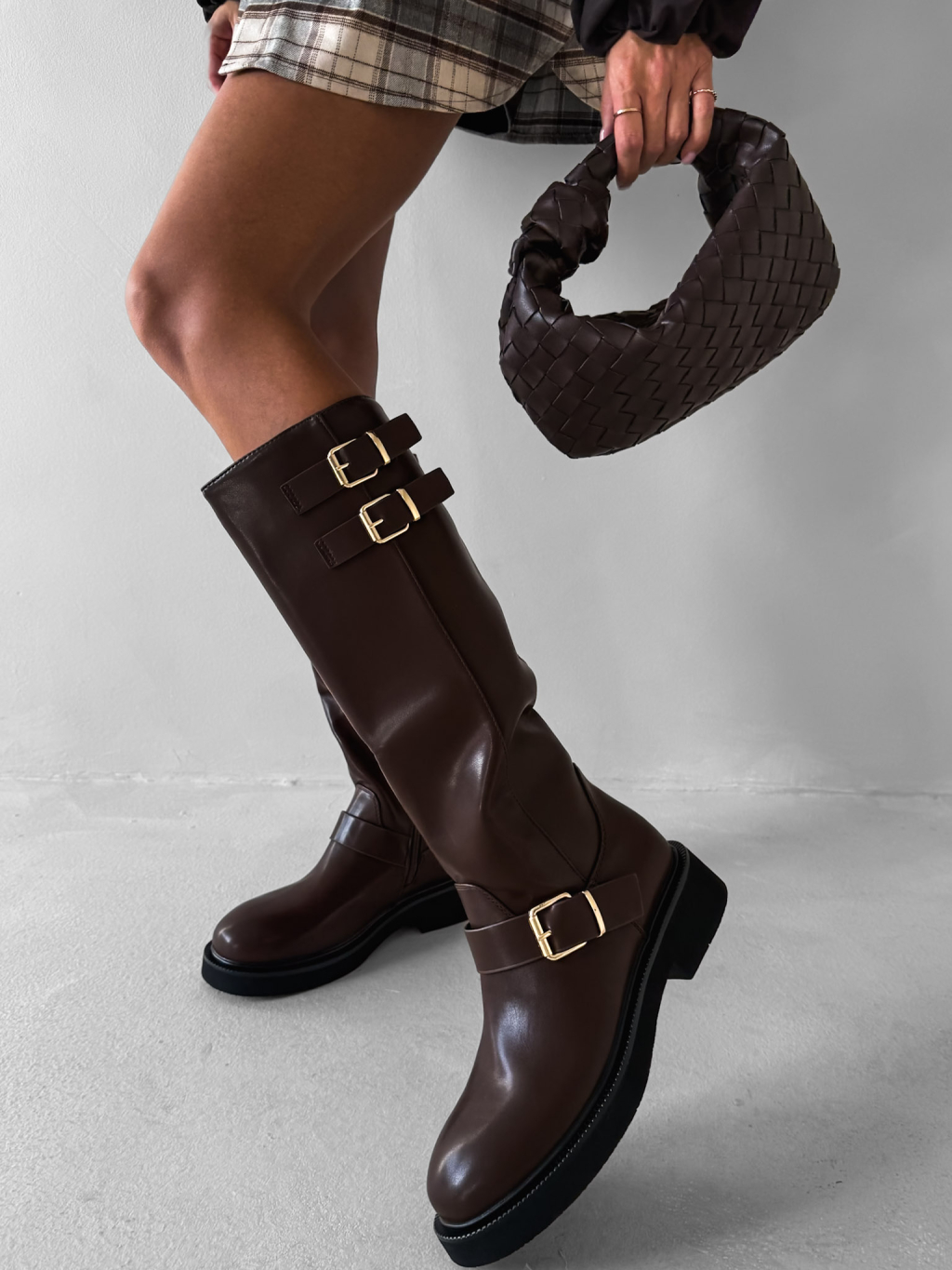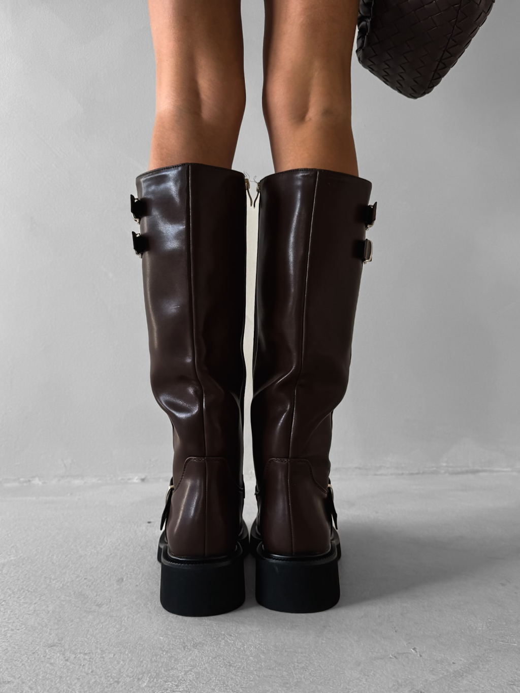 Hnědé koženkové kozačky MYRANY