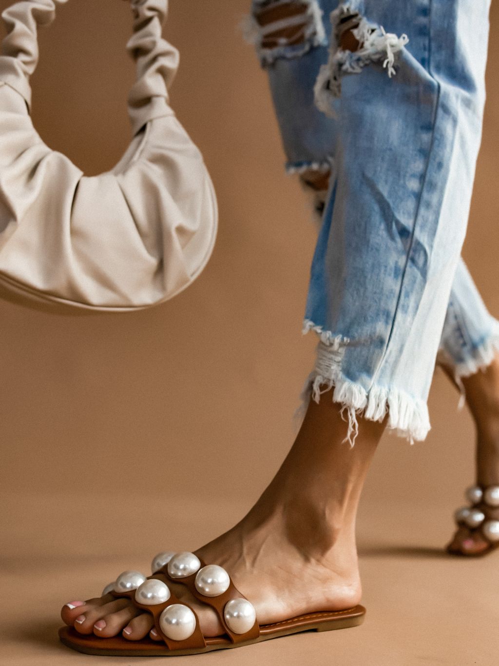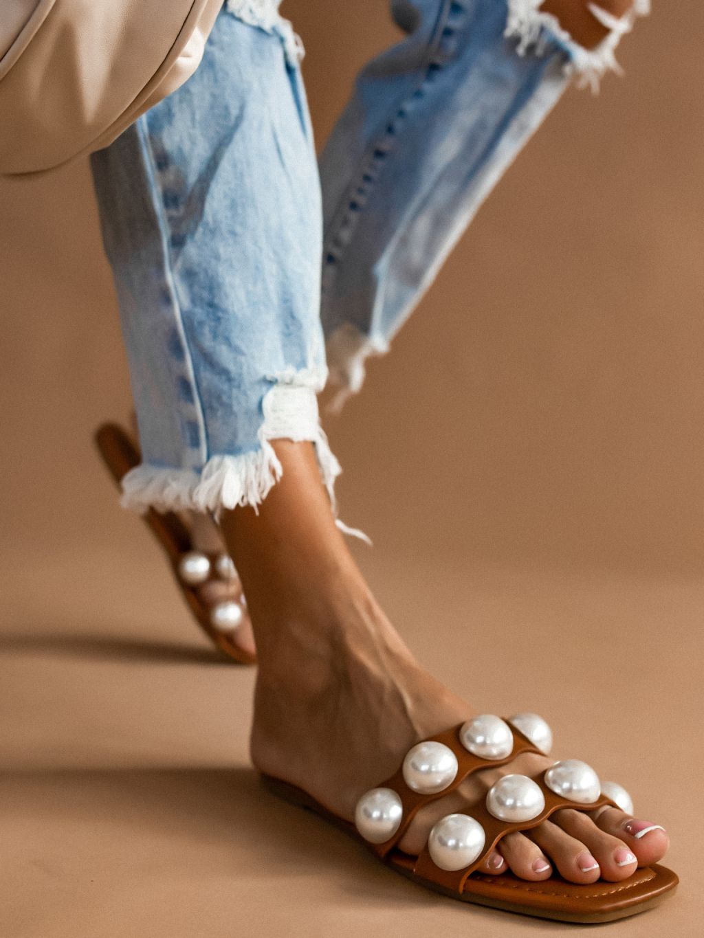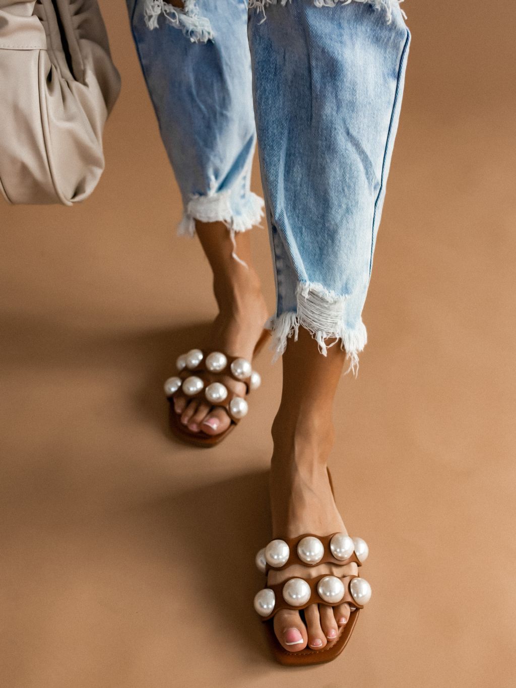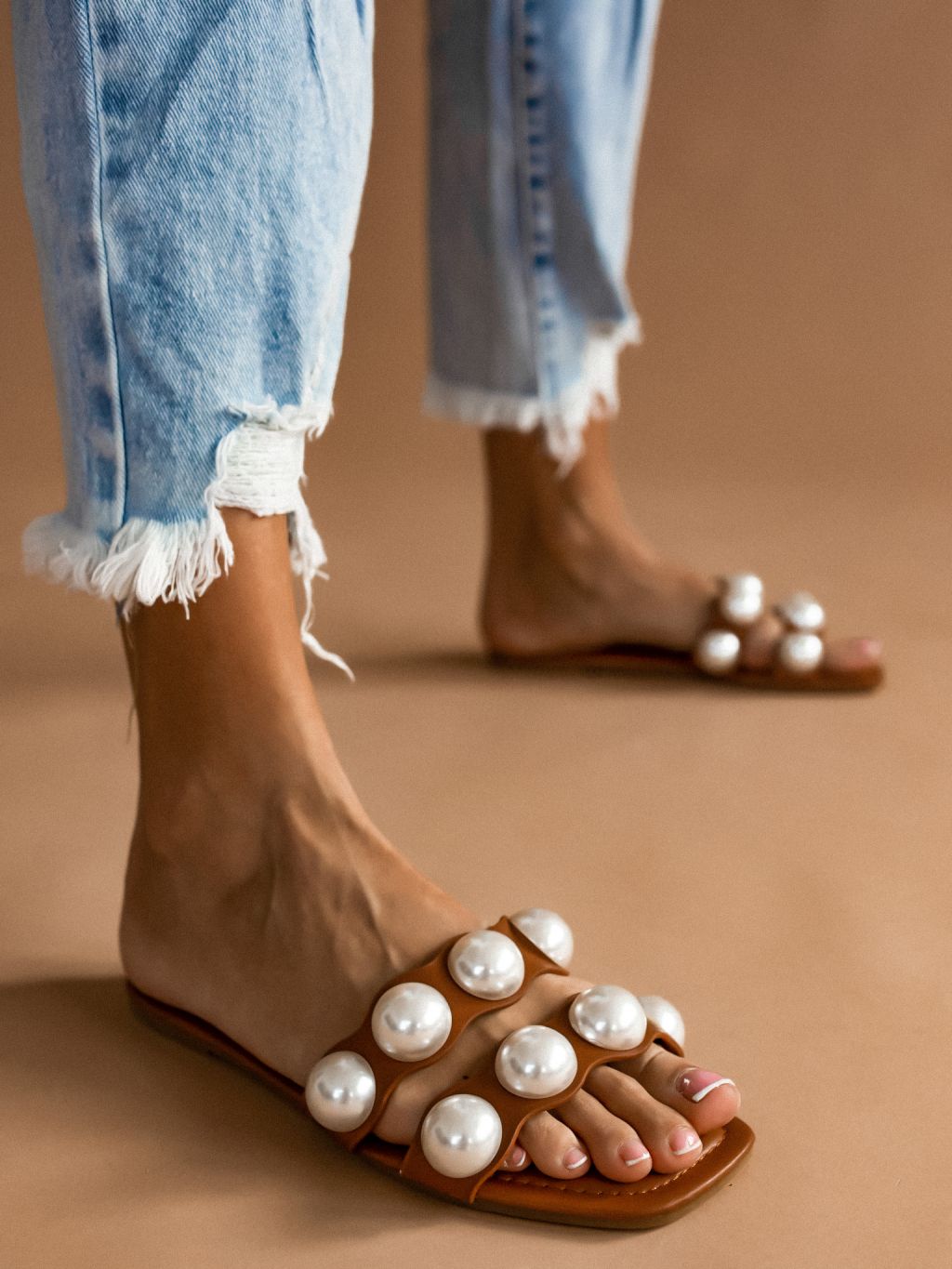 Hnědé pantofle ETERNAL s perlami