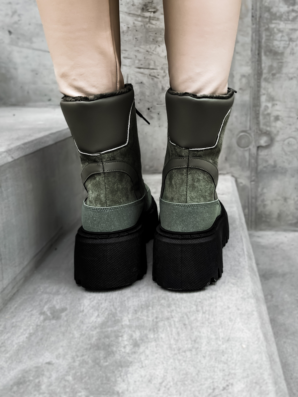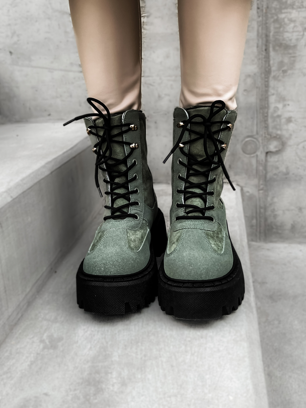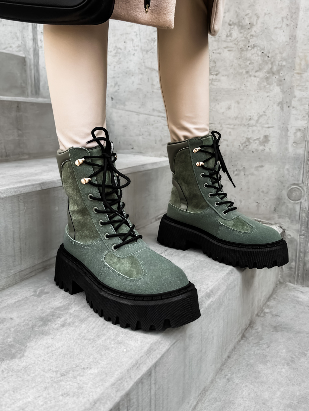 Khaki semišové kotníkové boty GROVEY s vysokou podrážkou