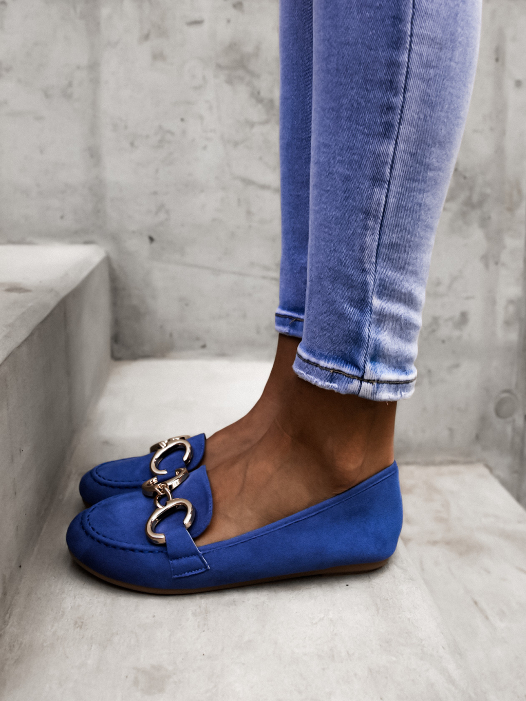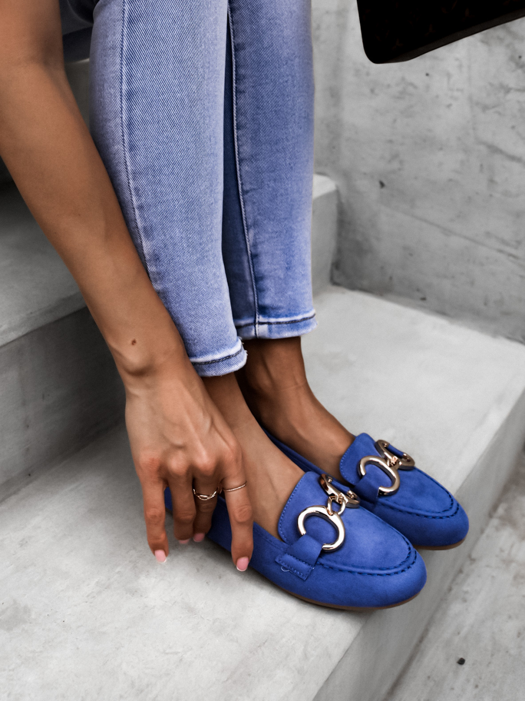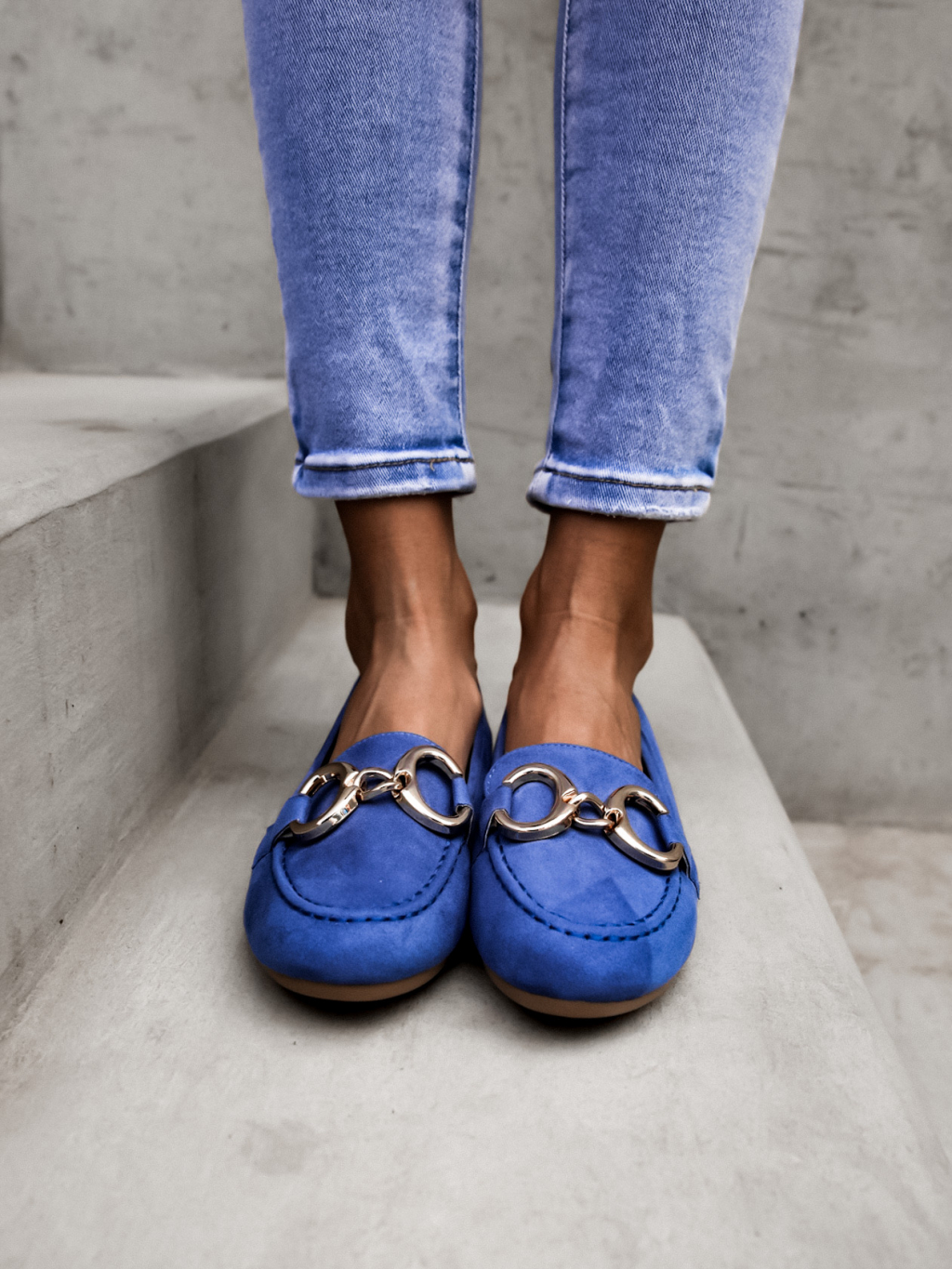 Královsky modré semišové polobotky BRADY se zlatou sponou