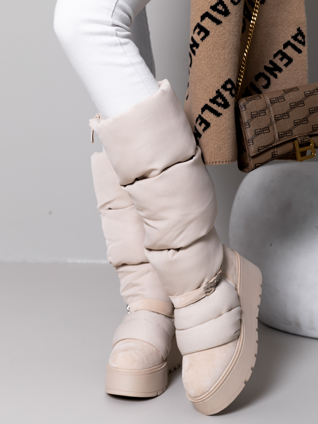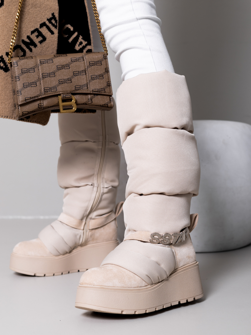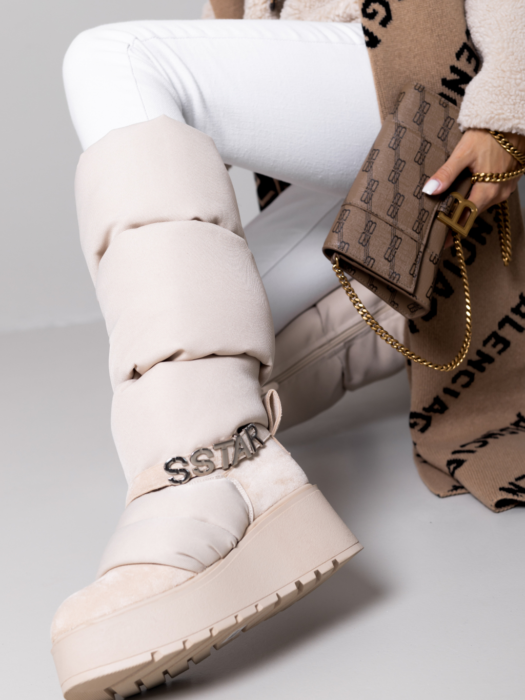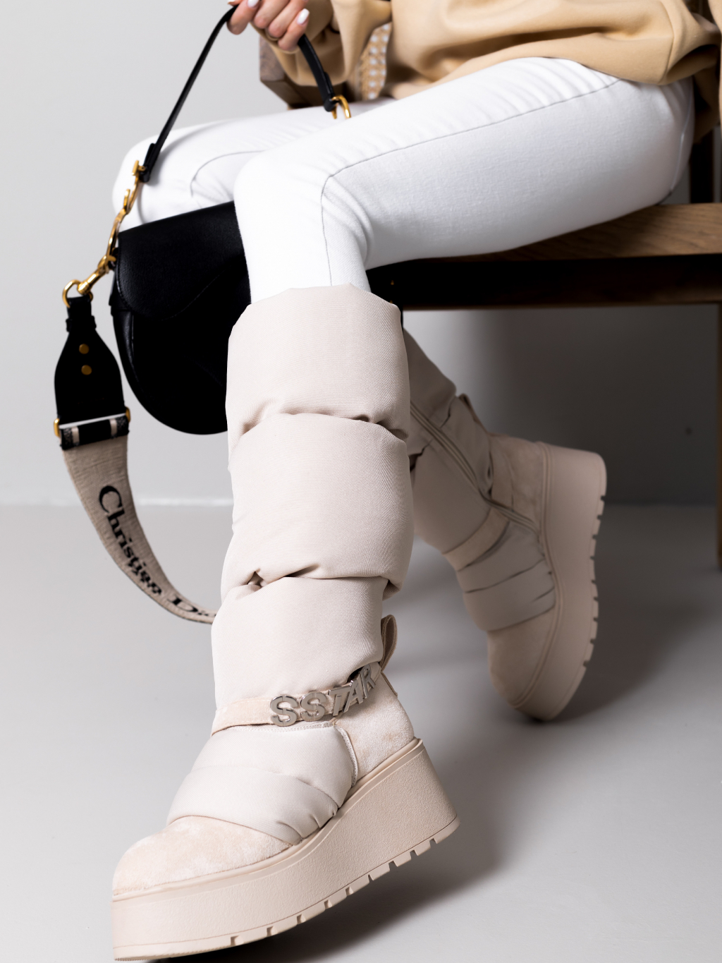Krémové vysoké sněhule SSTAR na klínku