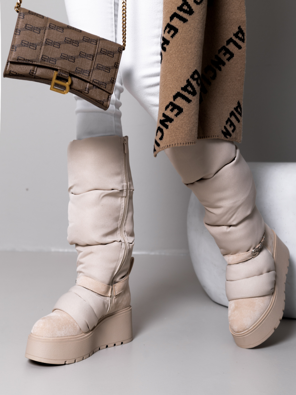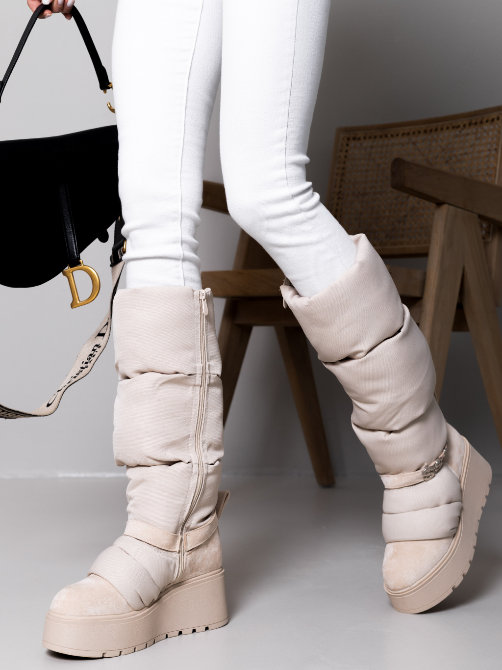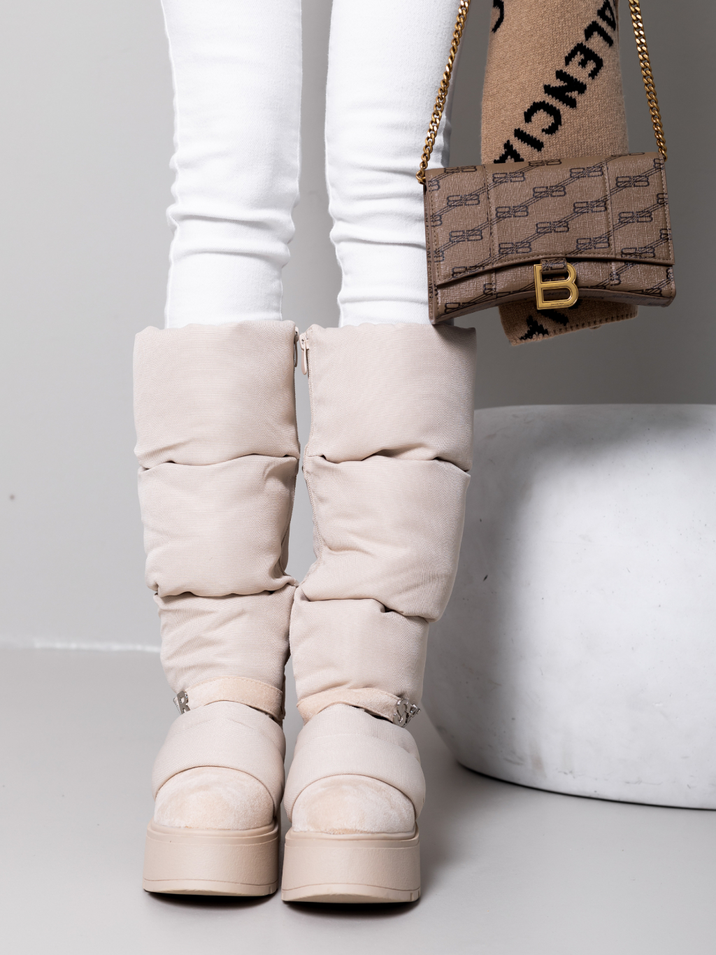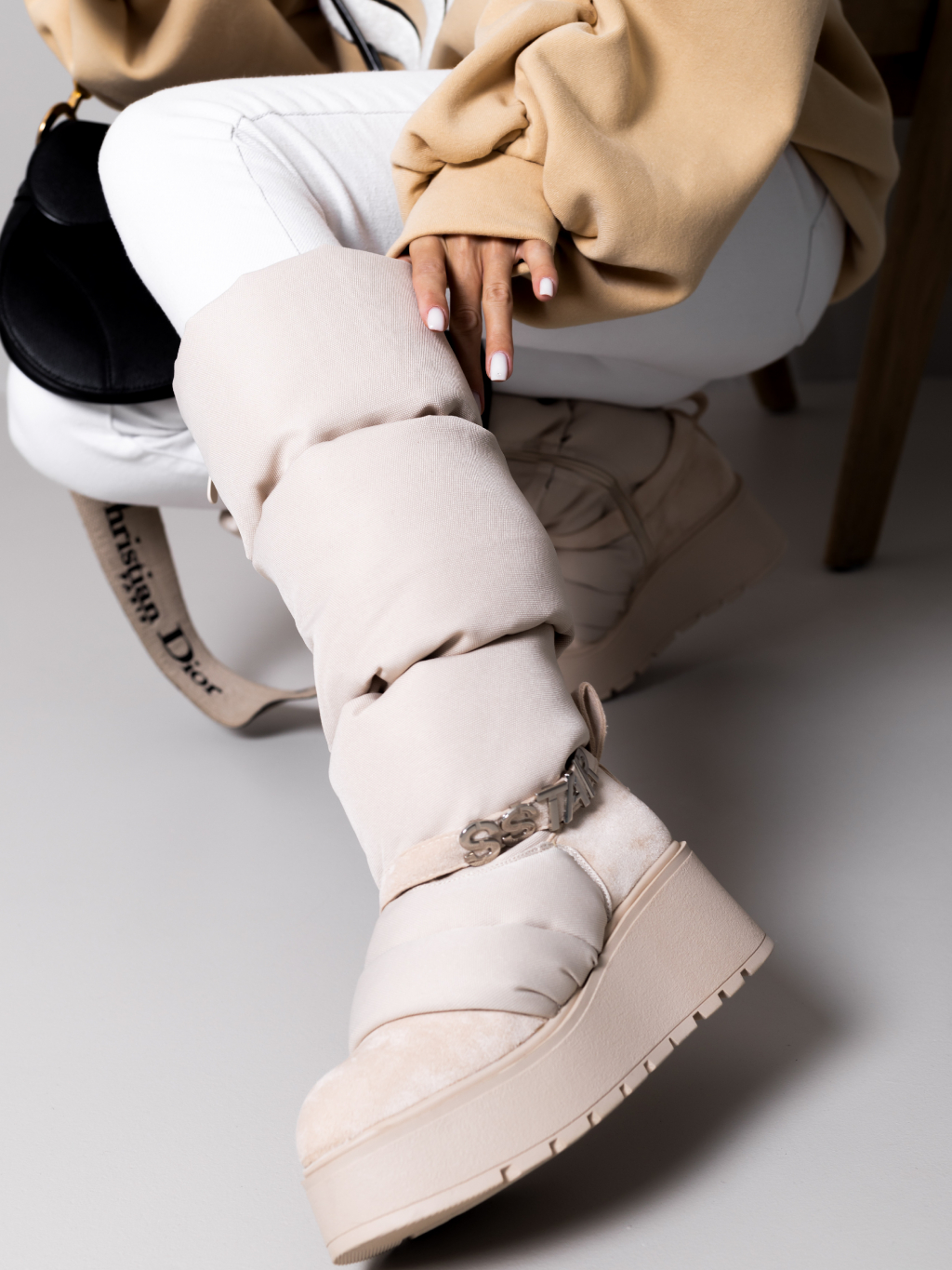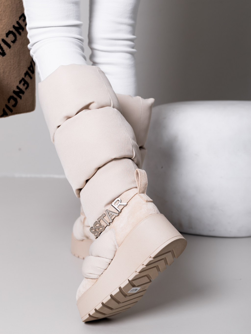 Krémové vysoké sněhule SSTAR na klínku