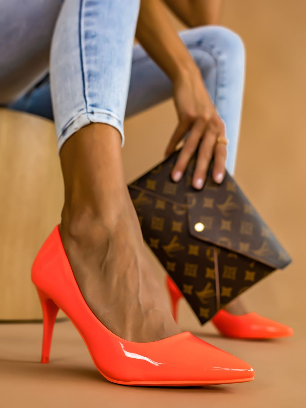 Neonové oranžové hladké boty na podpatku MELODY