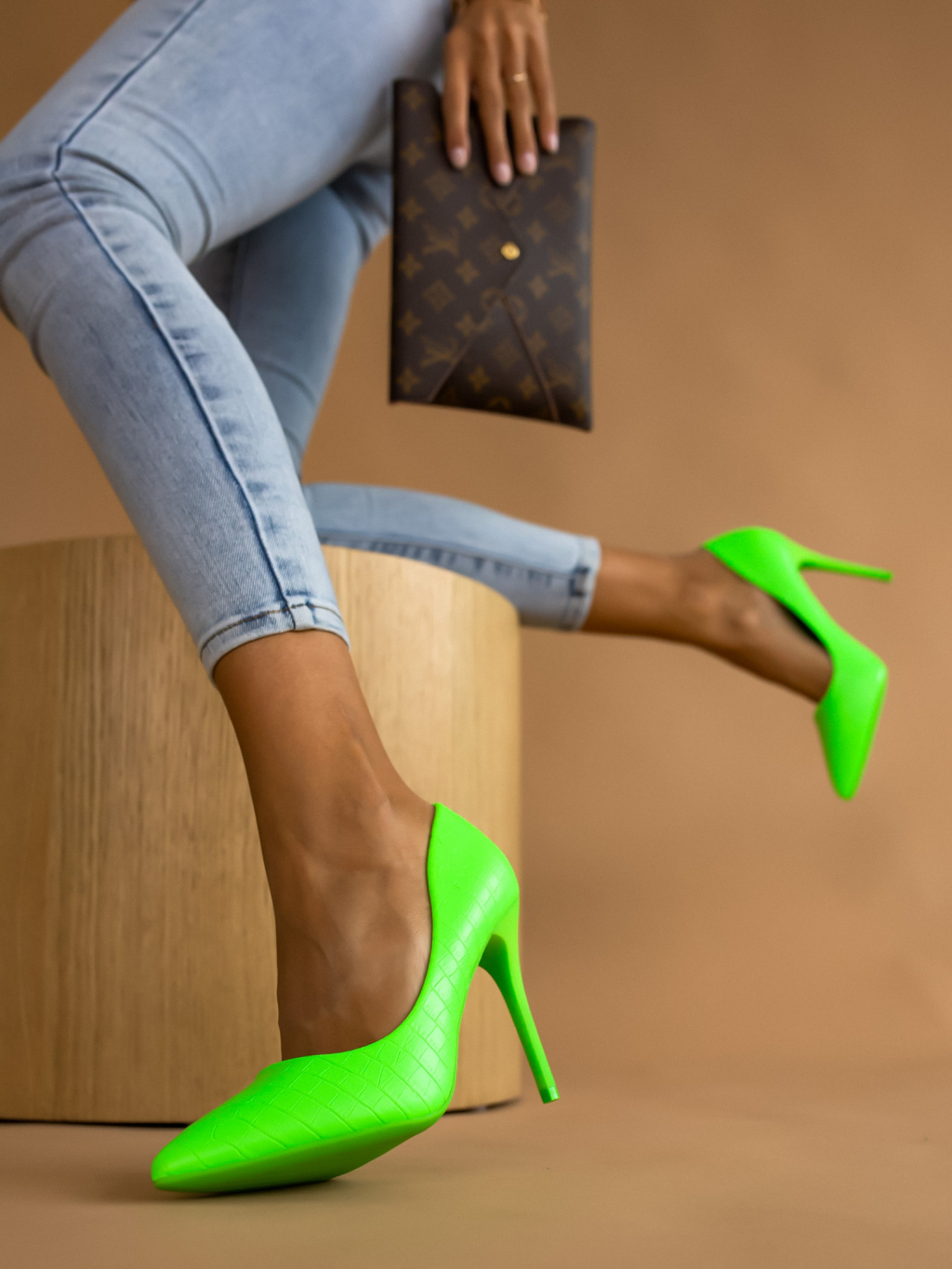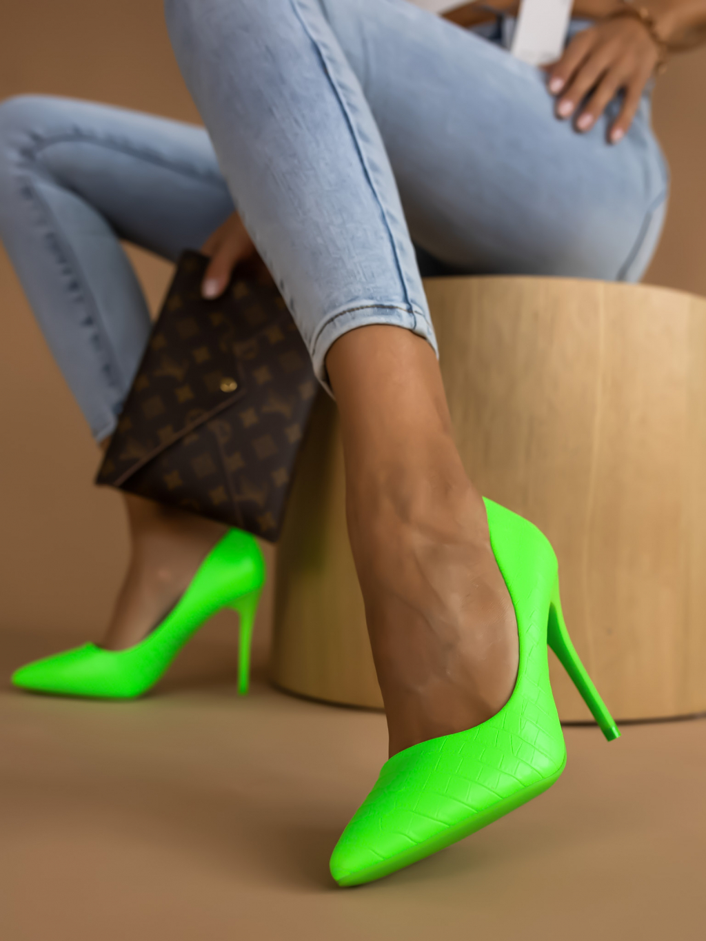 Neonově zelené vzorované boty na podpatku LINDSEY