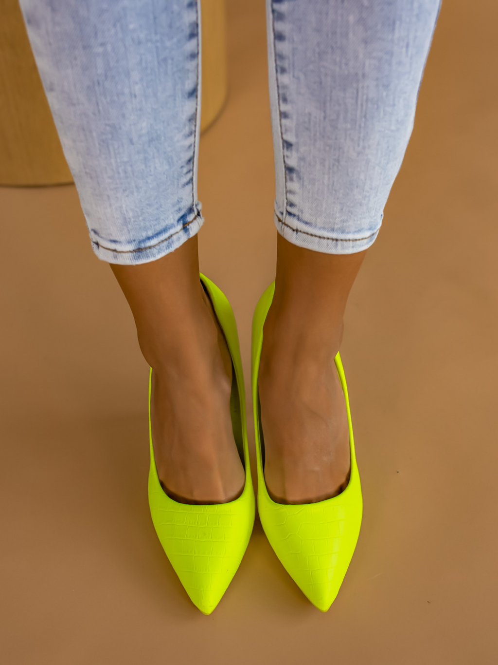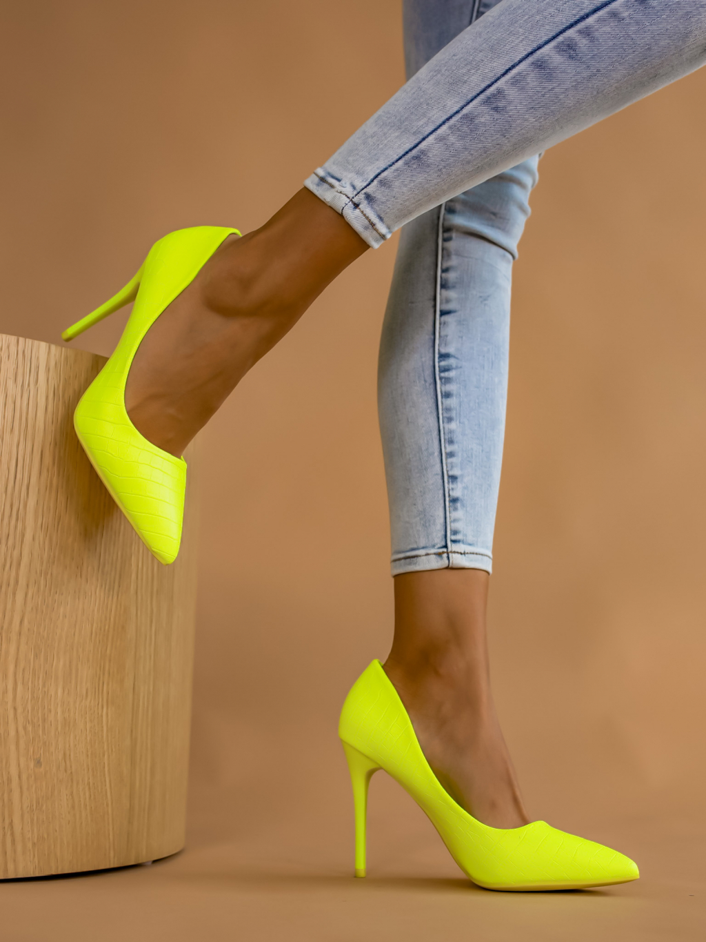 Neonově žluté vzorované boty na podpatku LINDSEY