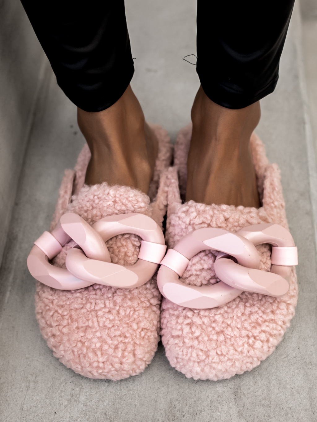 Růžové chlupaté pantofle HUGGIE se zdobením