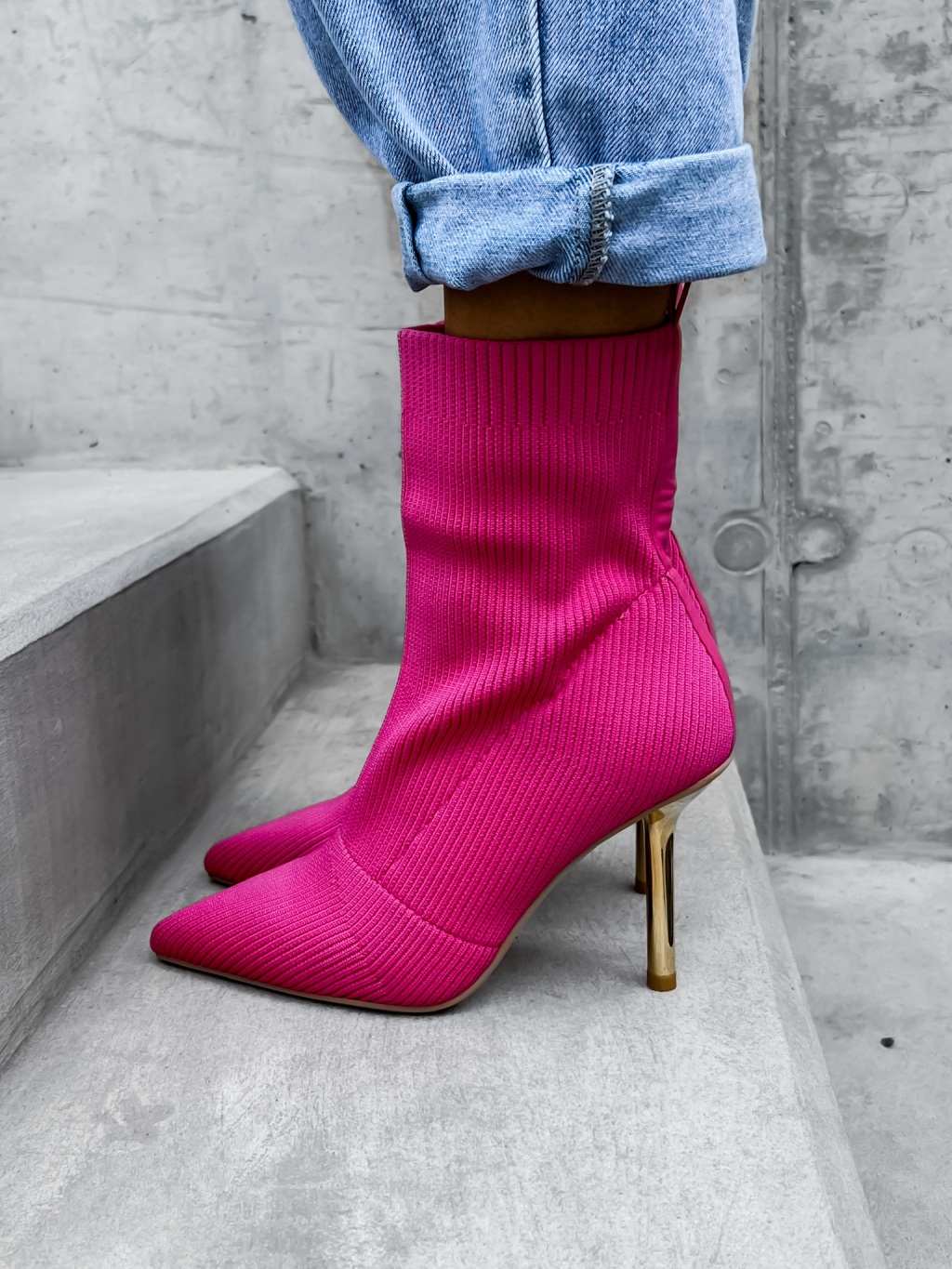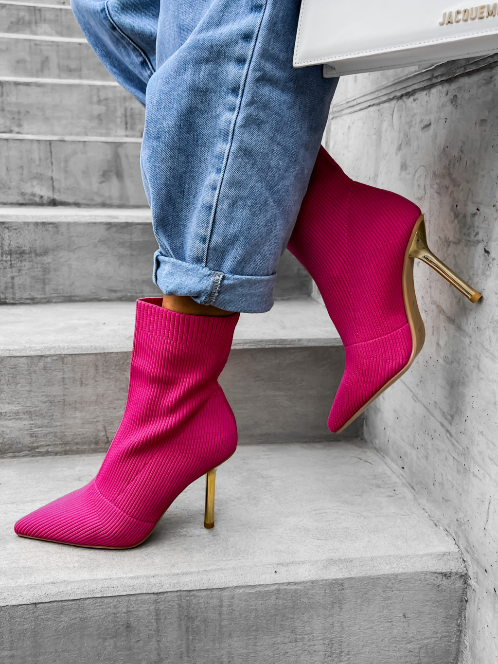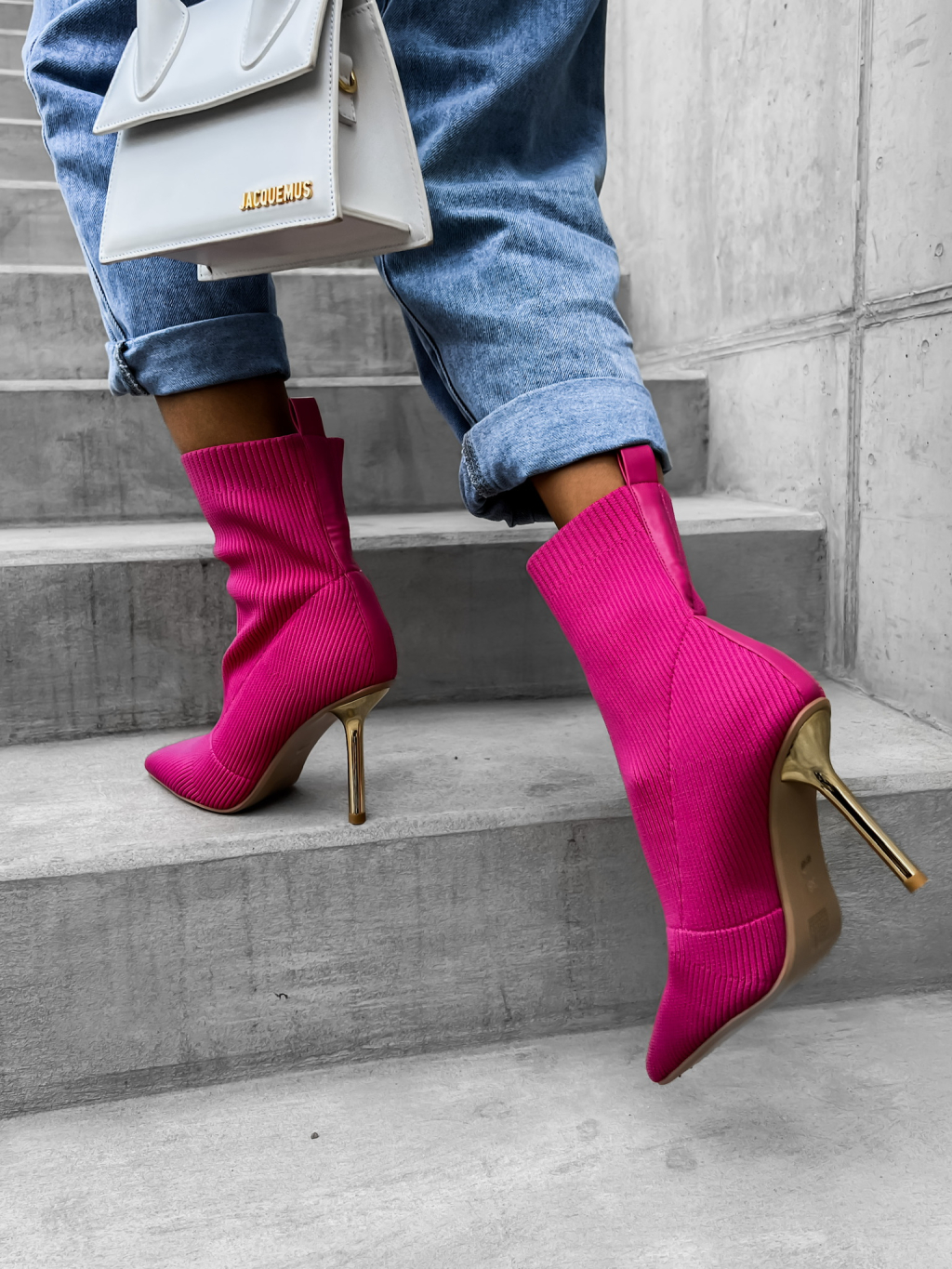 Růžové žebrované kozačky PARKER se zlatým podpatkem