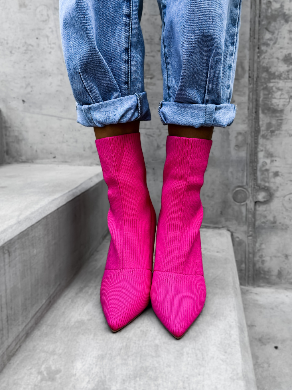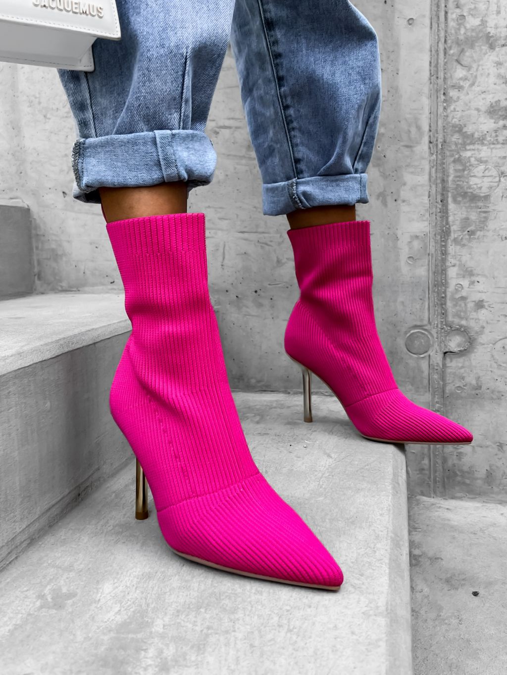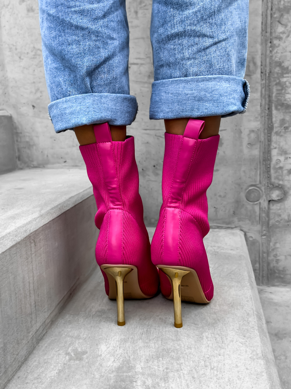 Růžové žebrované kozačky PARKER se zlatým podpatkem