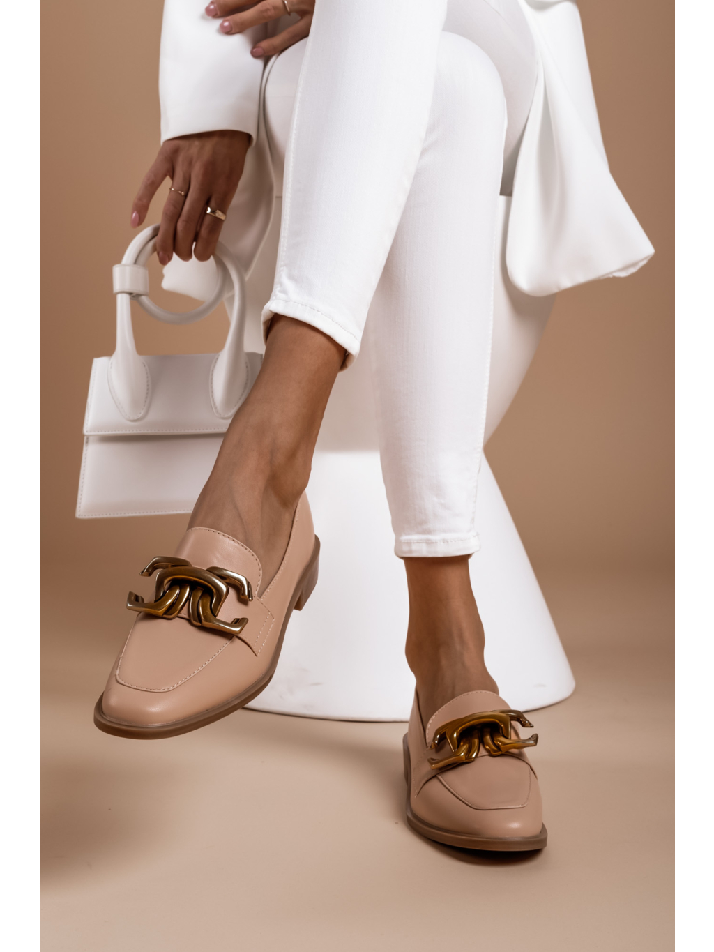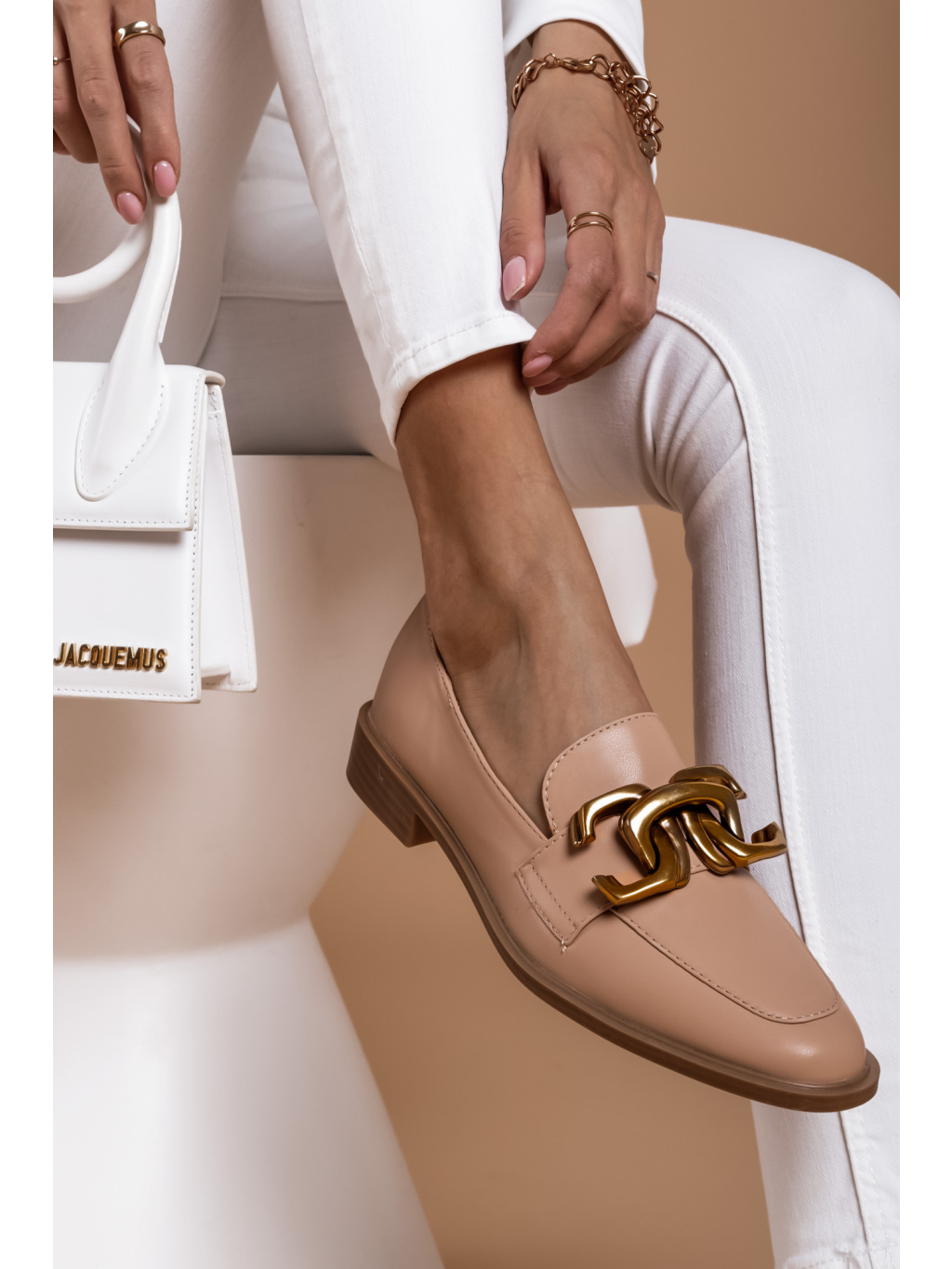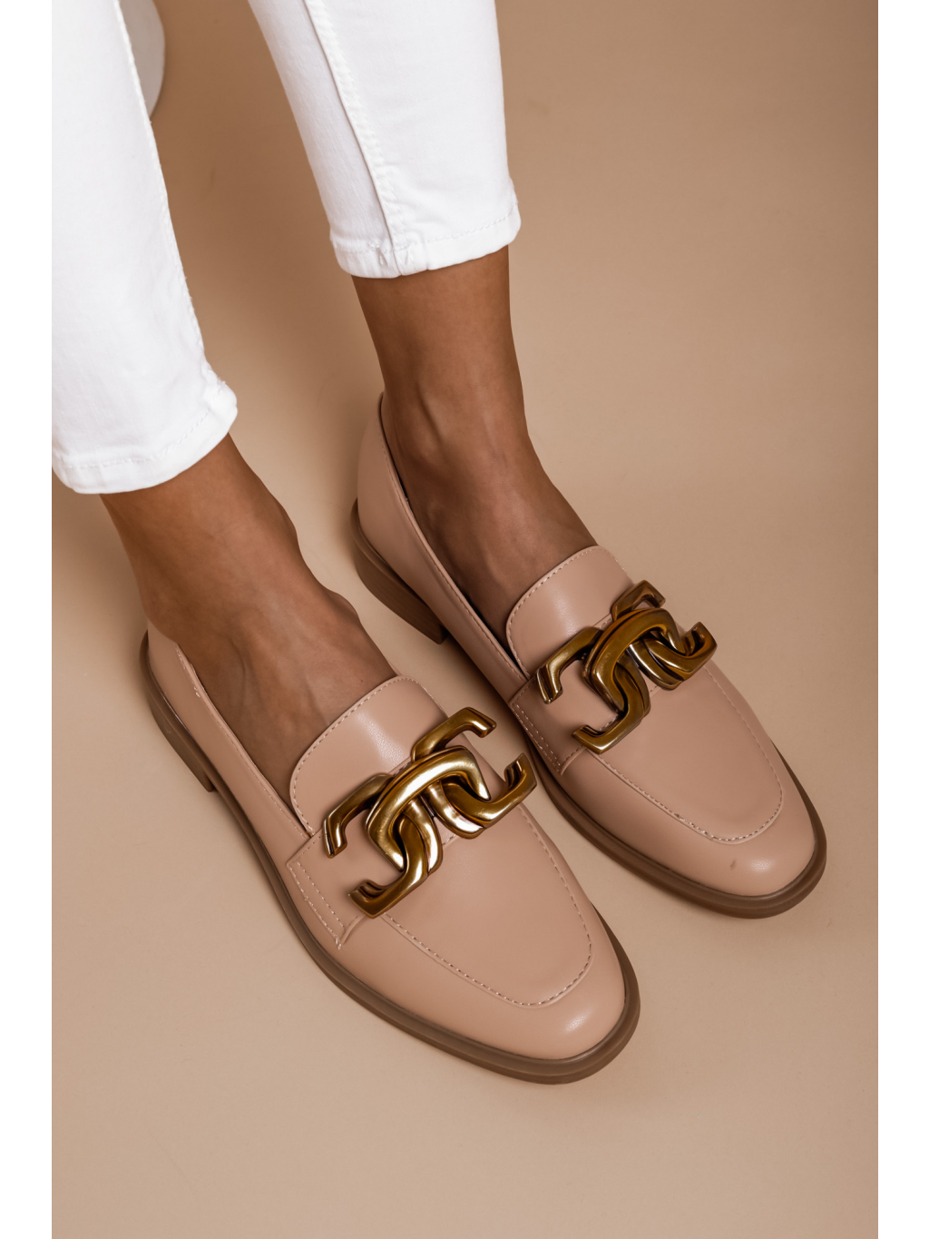 Světle hnědé koženkové polobotky BERRIES se zlatou sponou