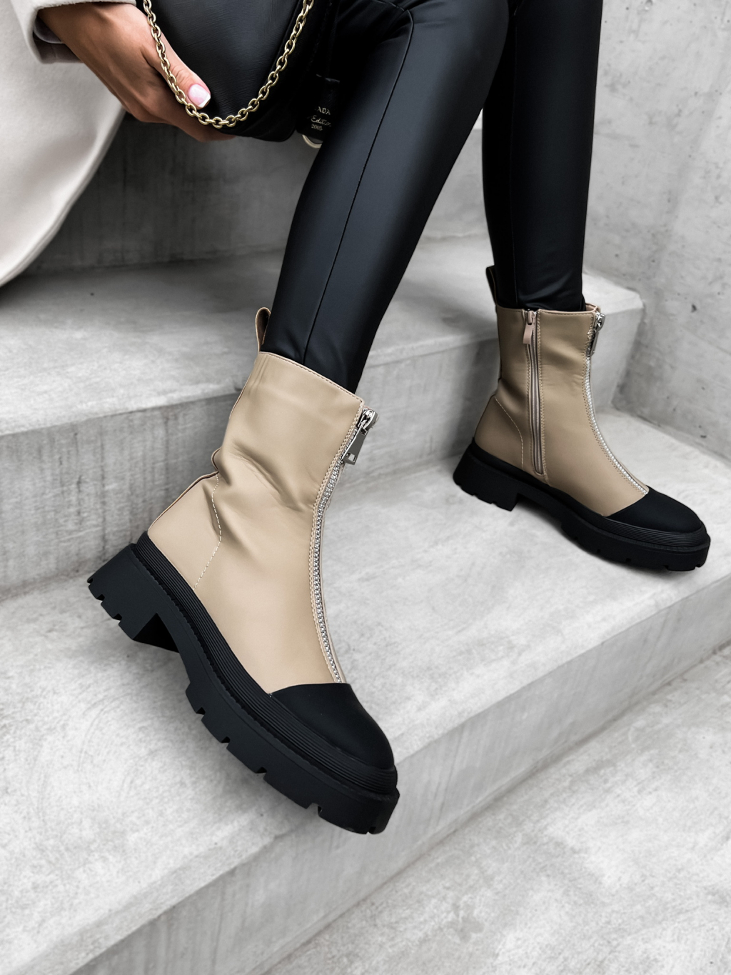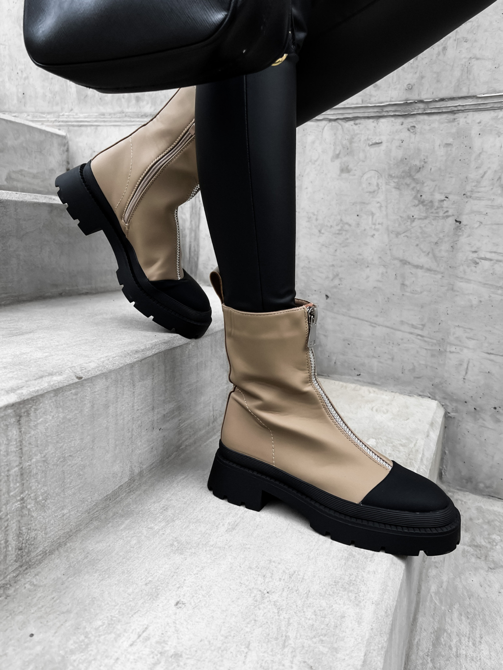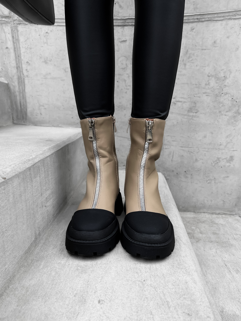 Tmavě béžové kotníkové boty TAZZI se zipem
