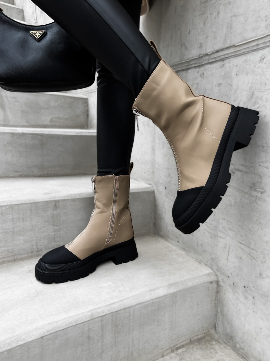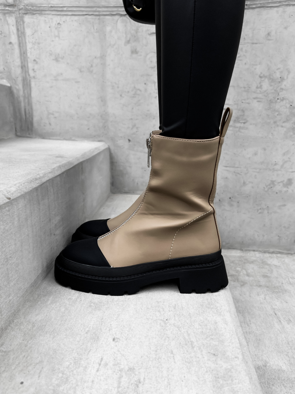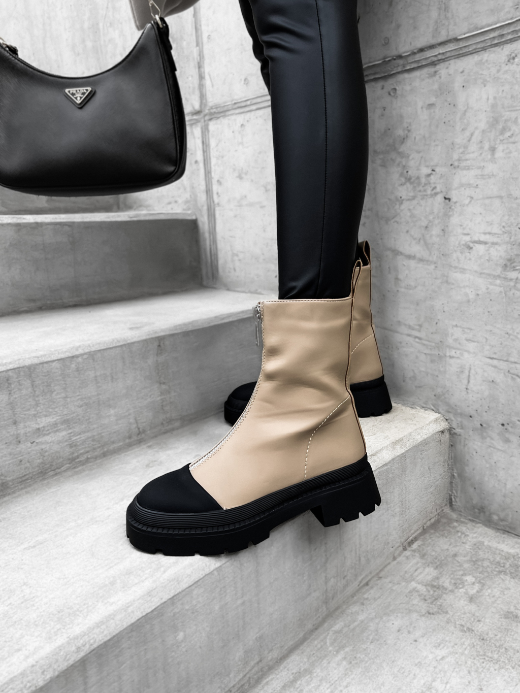 Tmavě béžové kotníkové boty TAZZI se zipem