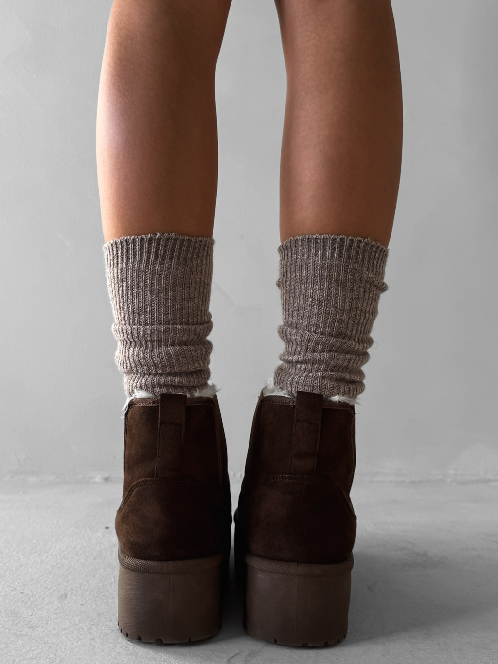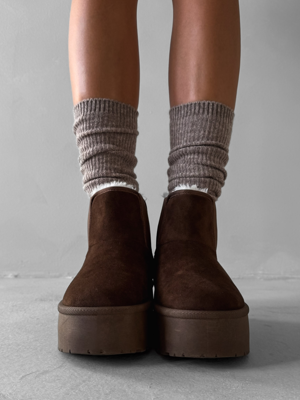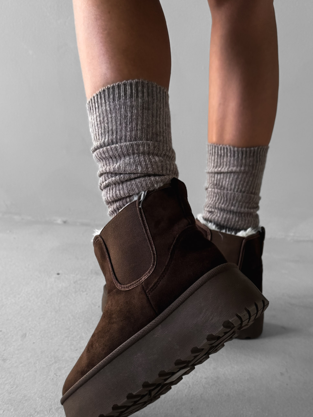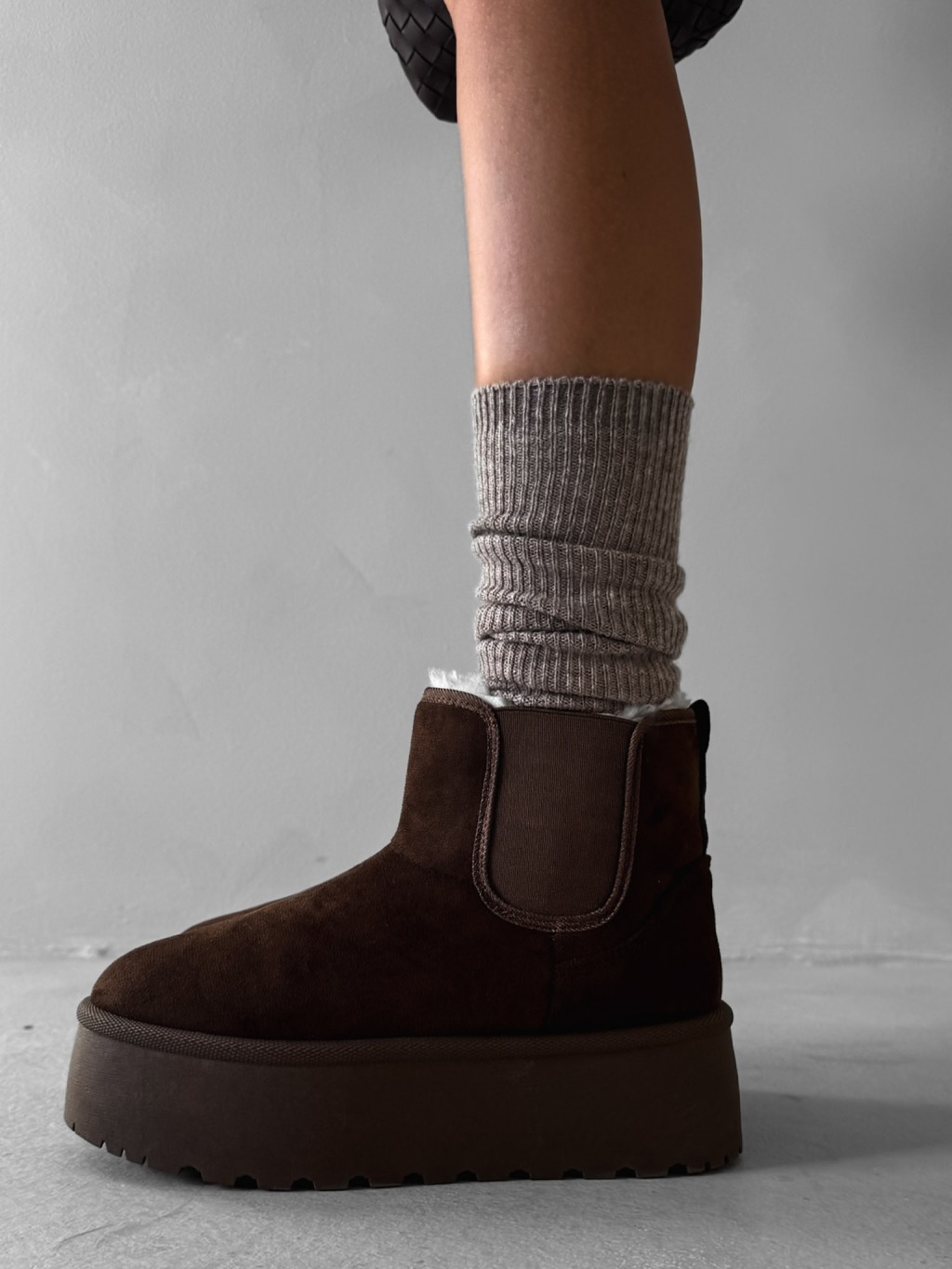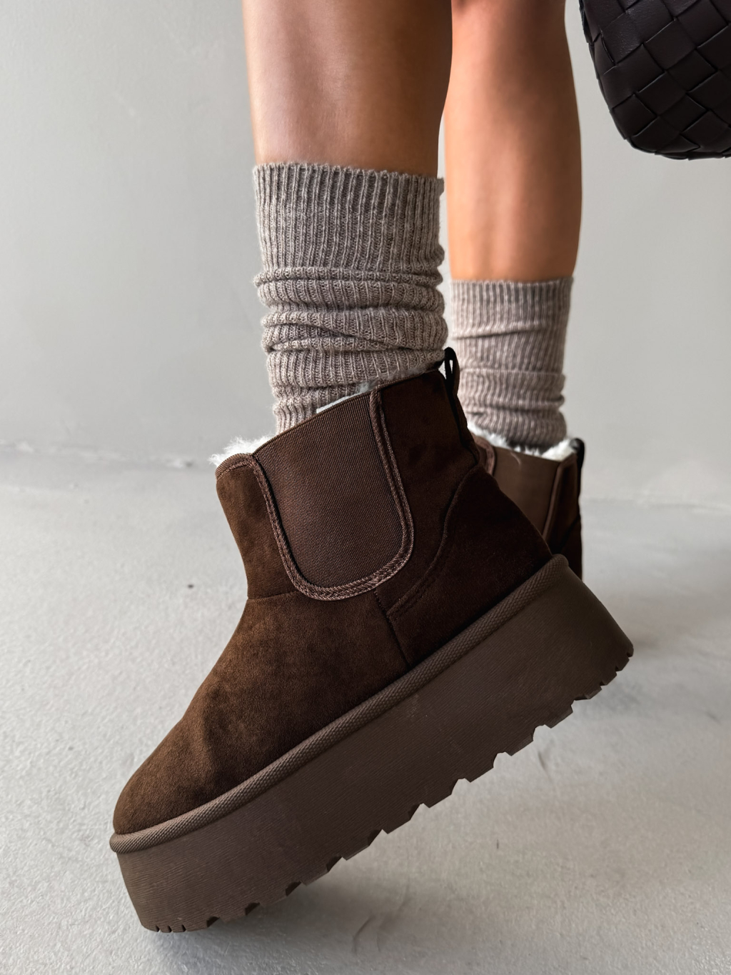 Tmavě hnědé válenky CASTOR s vysokou platformou