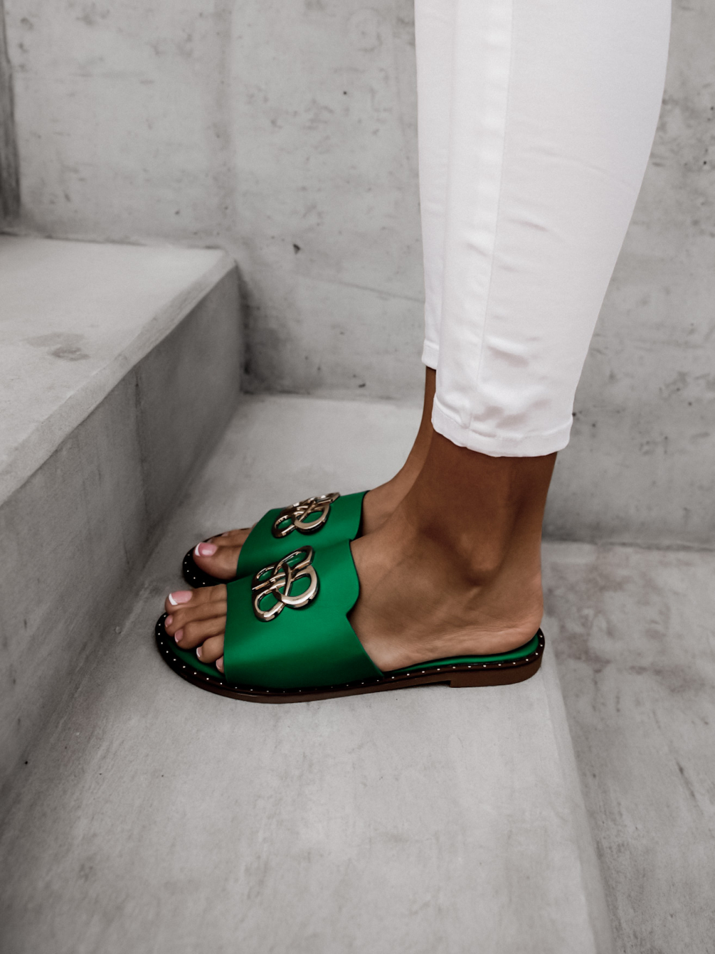 Zelené elegantní pantofle EMMY se zlatým detailem