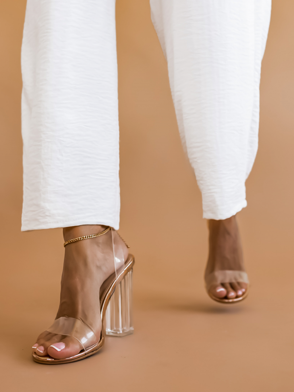Zlaté boty na podpatku JENNY s transparentními pásky