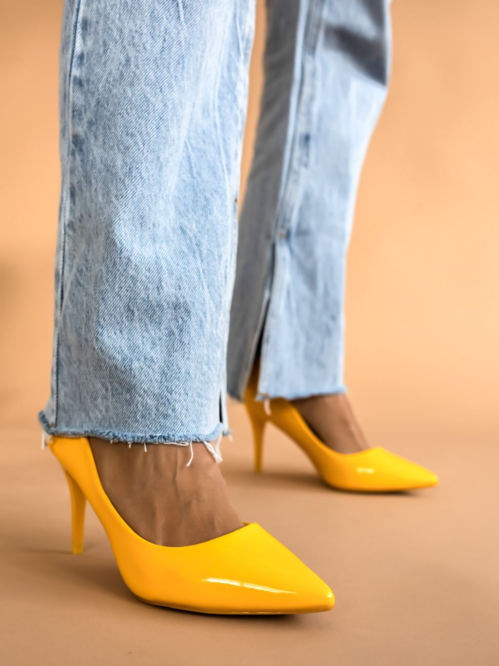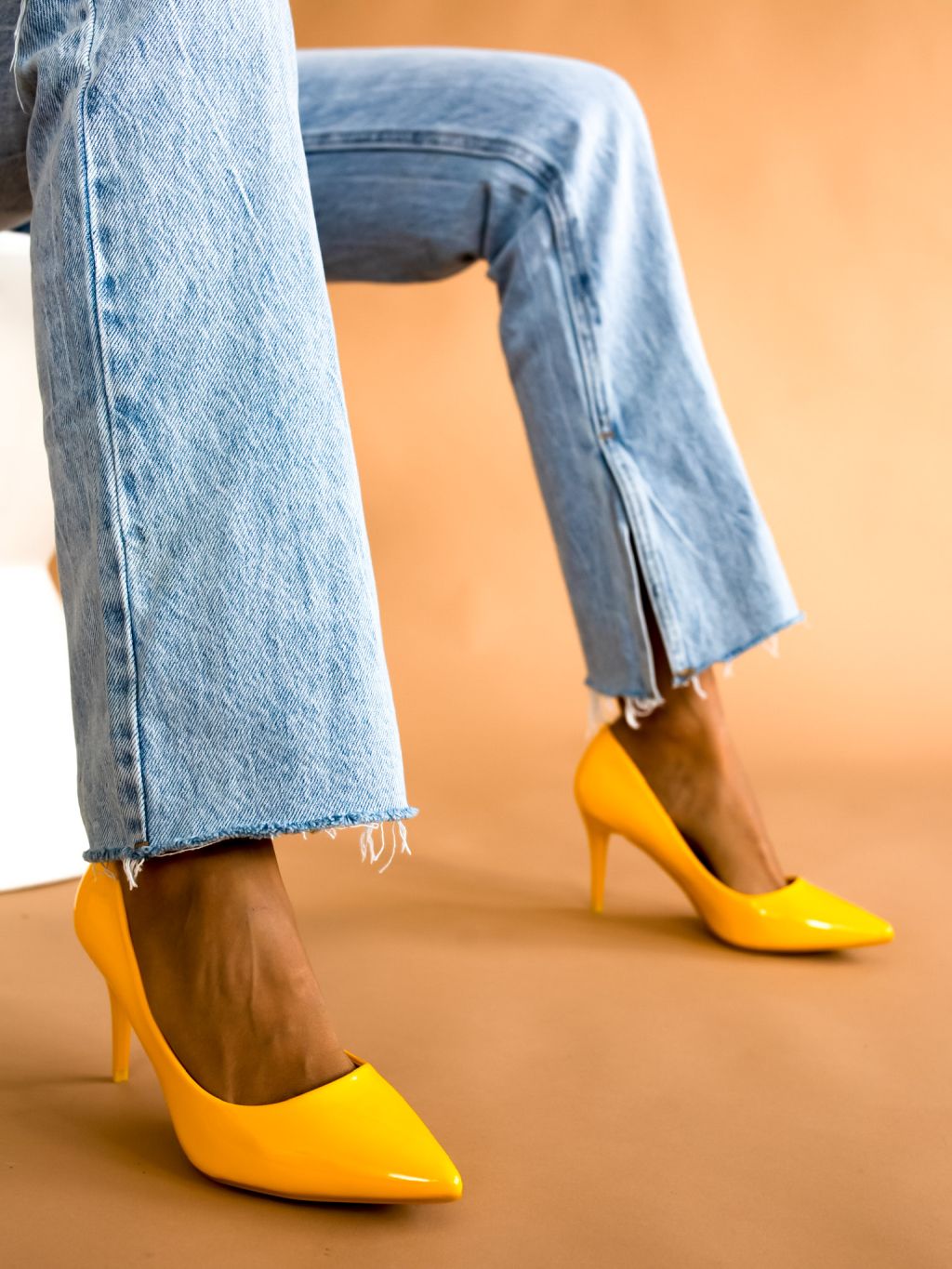 Žluté hladké boty na podpatku MELODY