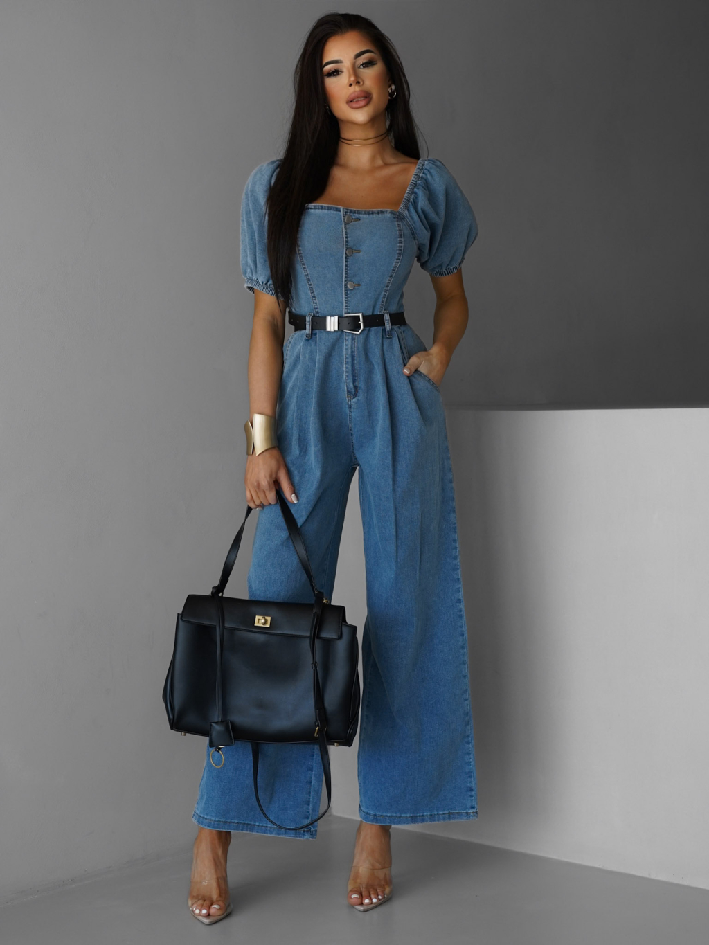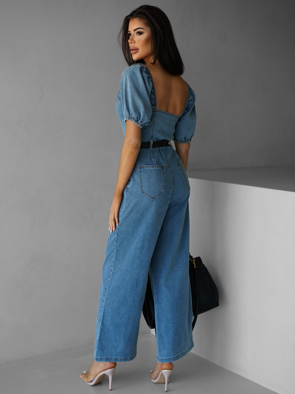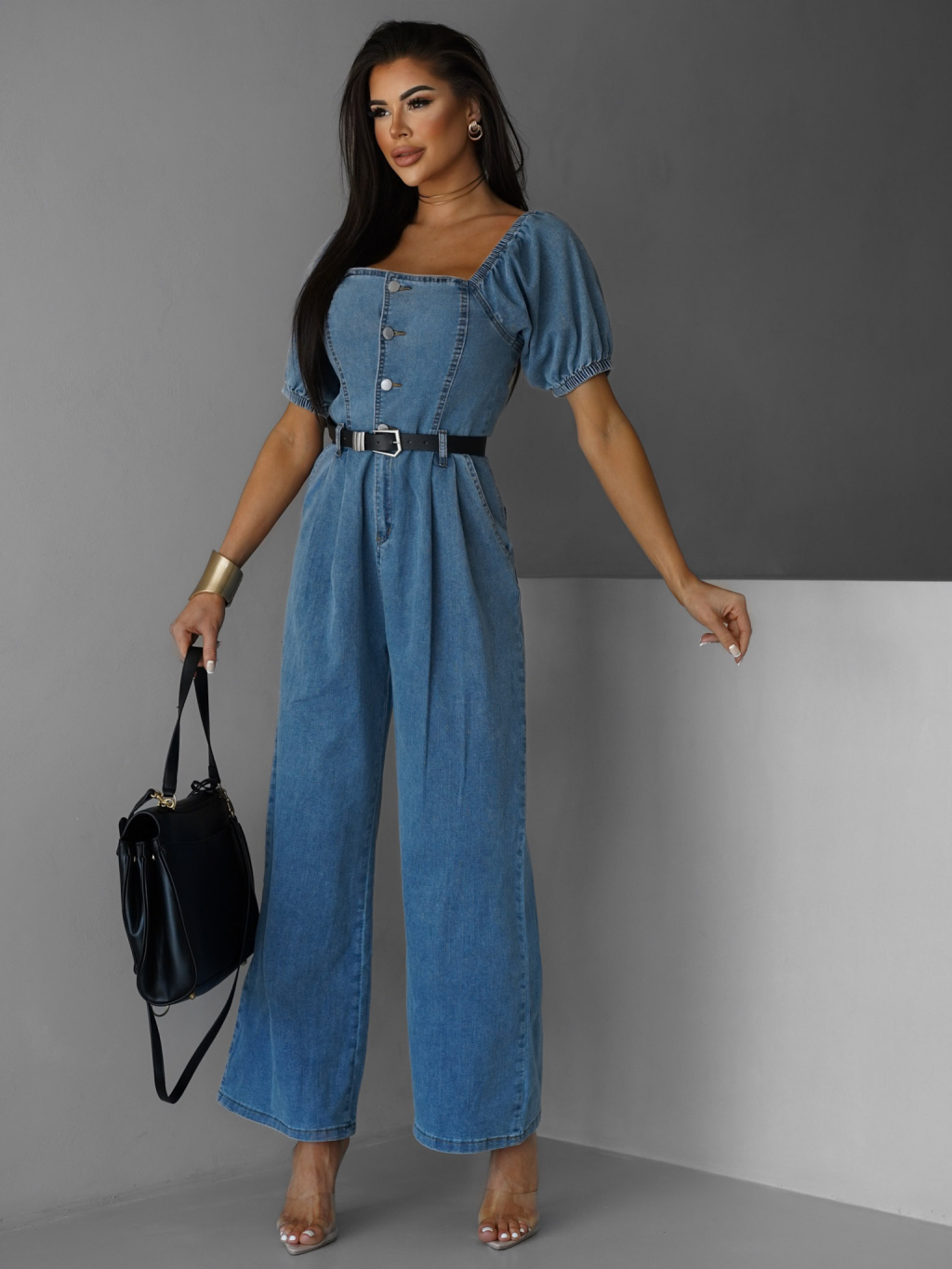 Modrý džínový dlouhý overal PERAM s krátkým rukávem