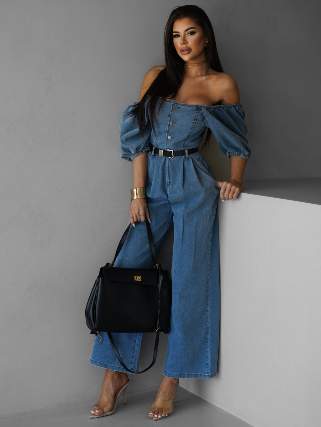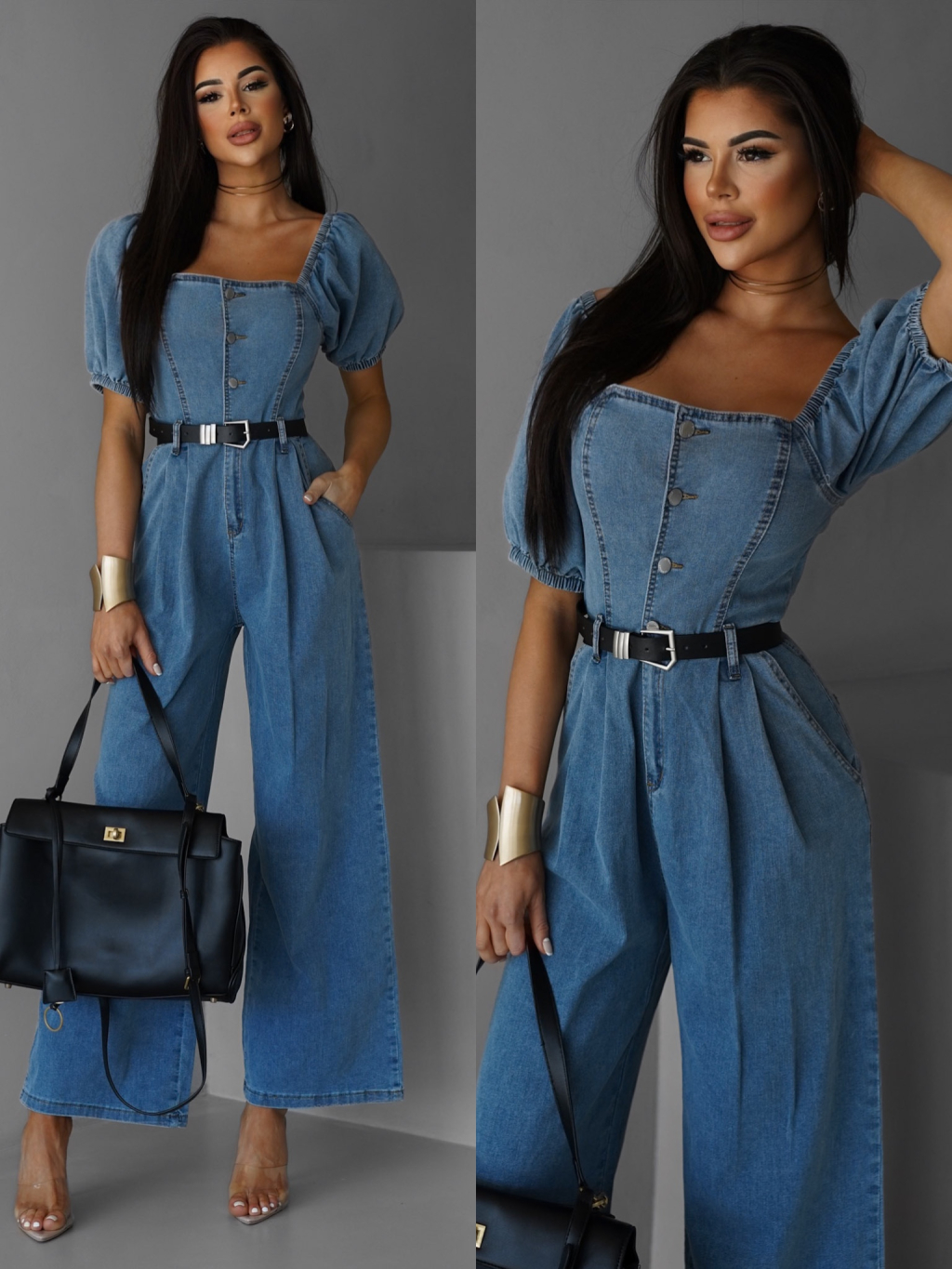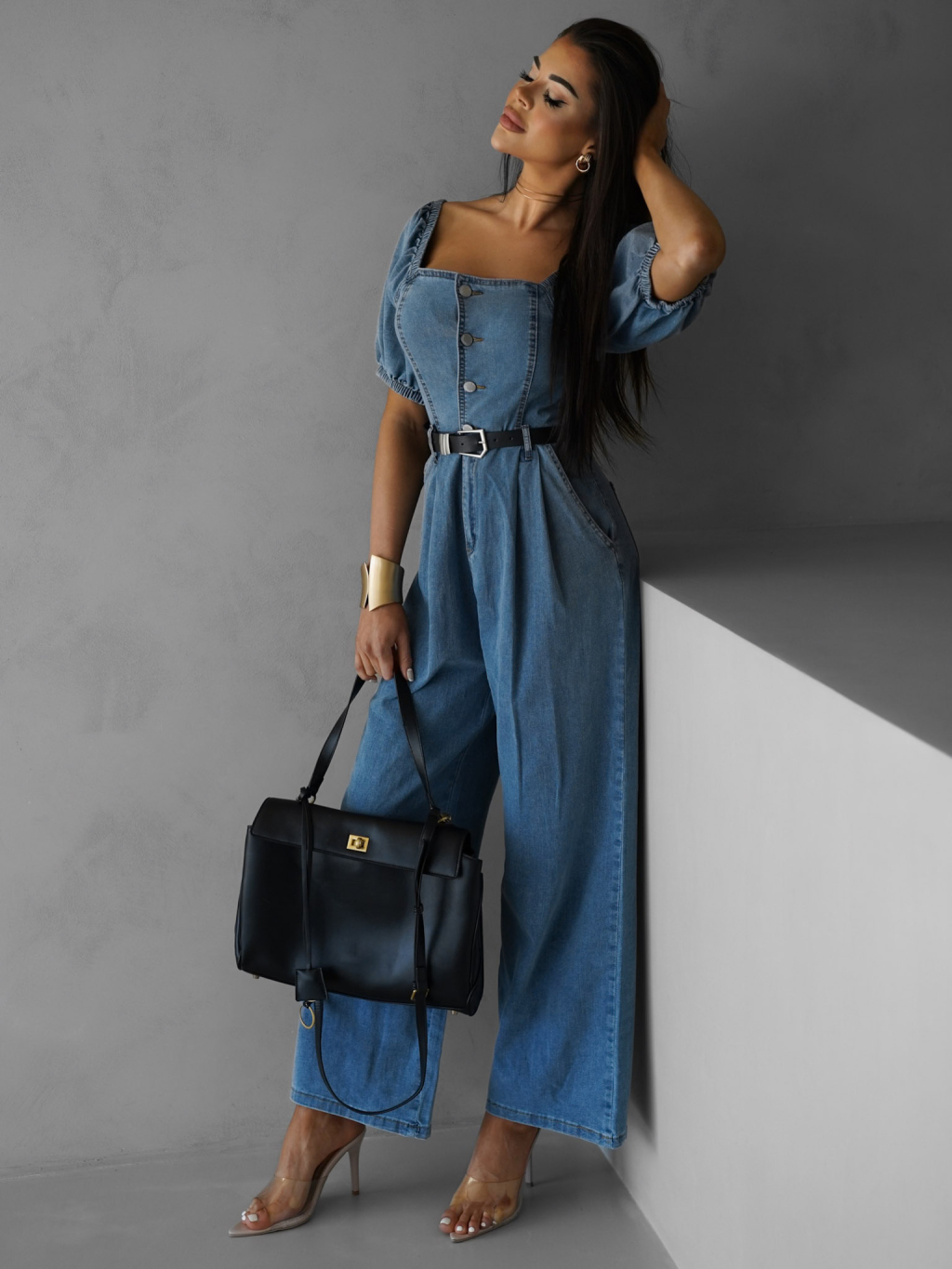 Modrý džínový dlouhý overal PERAM s krátkým rukávem
