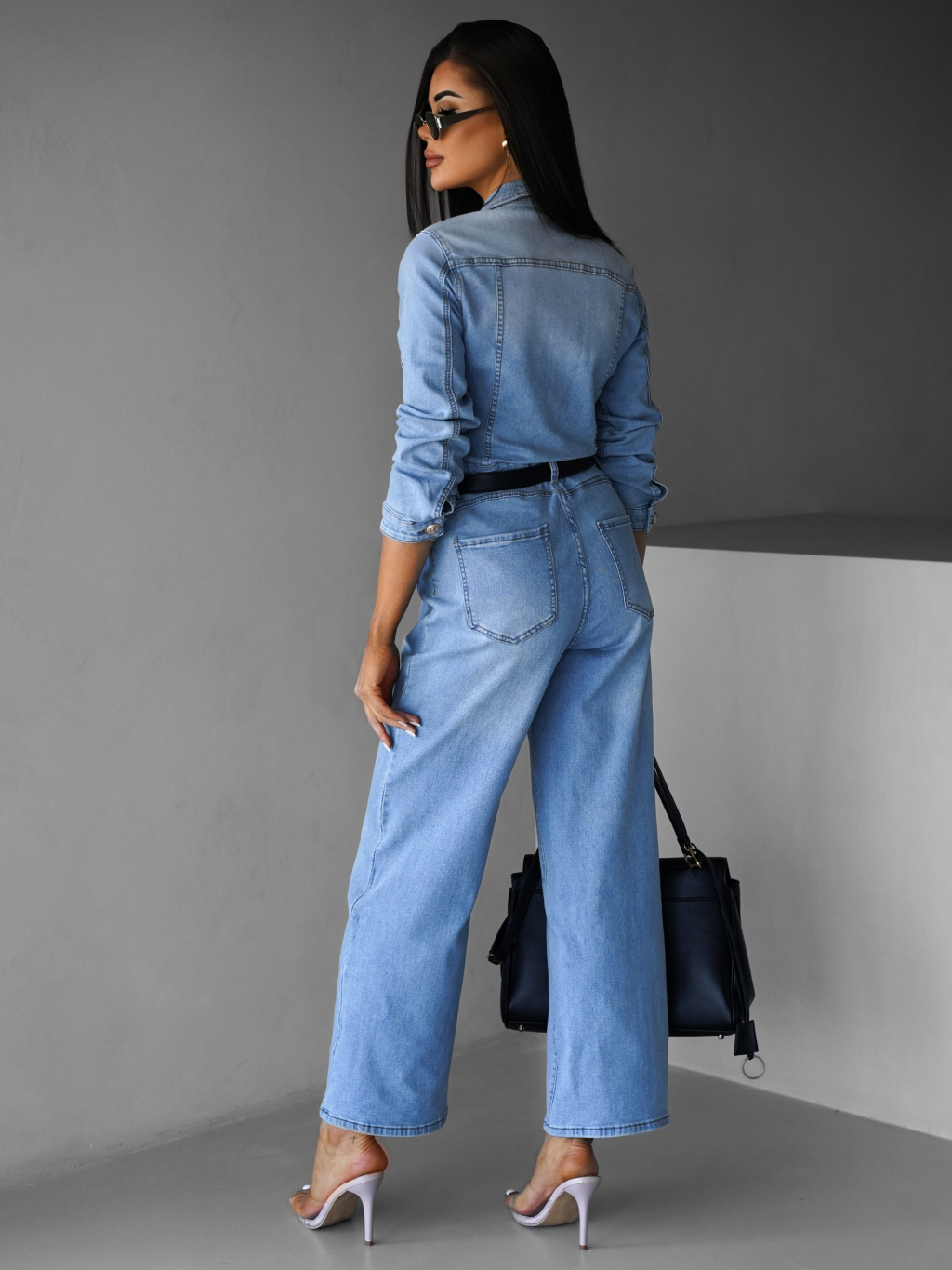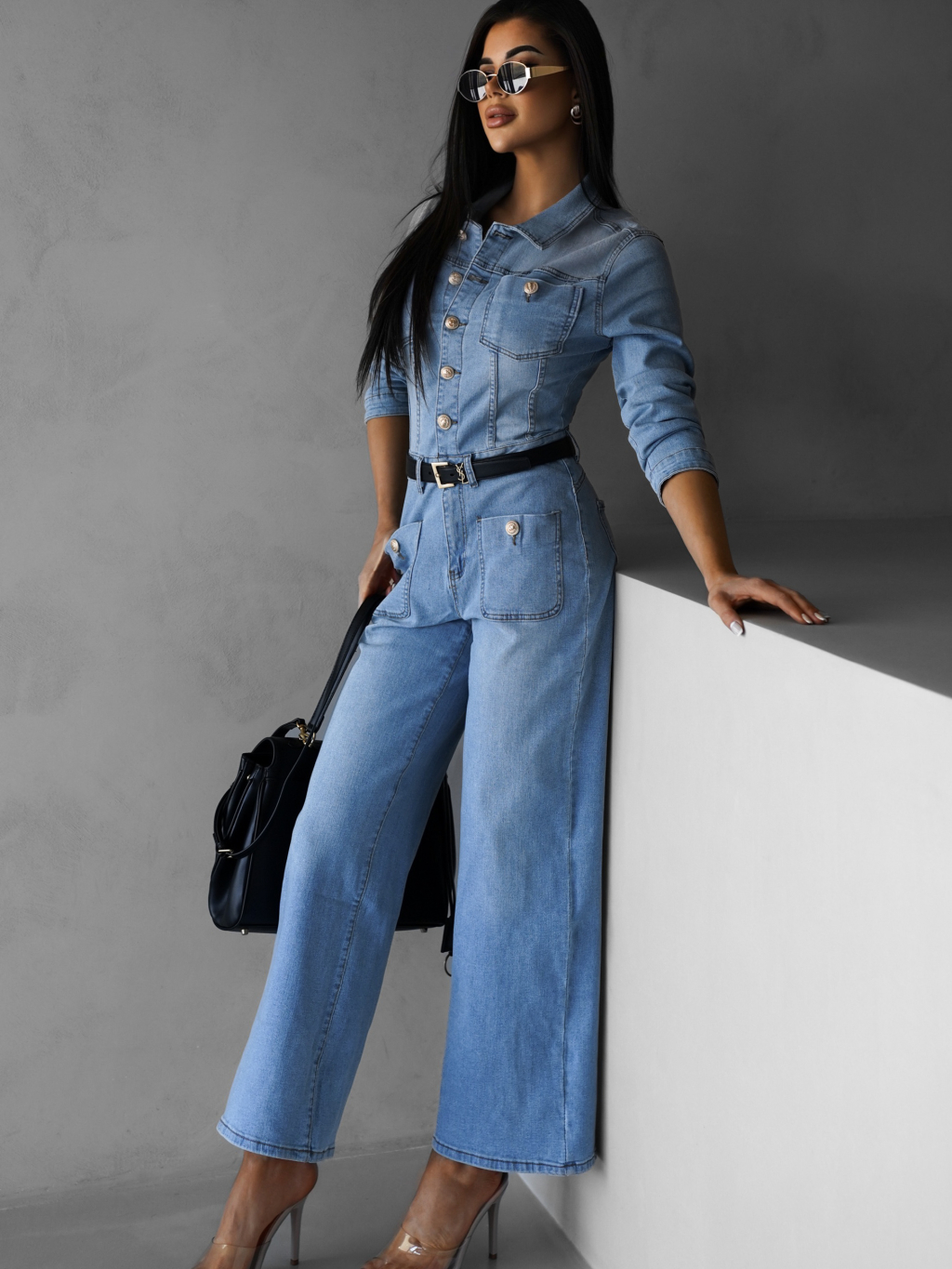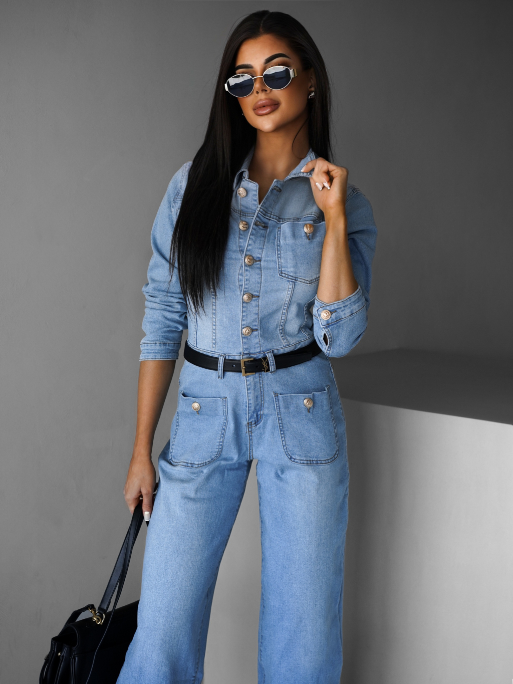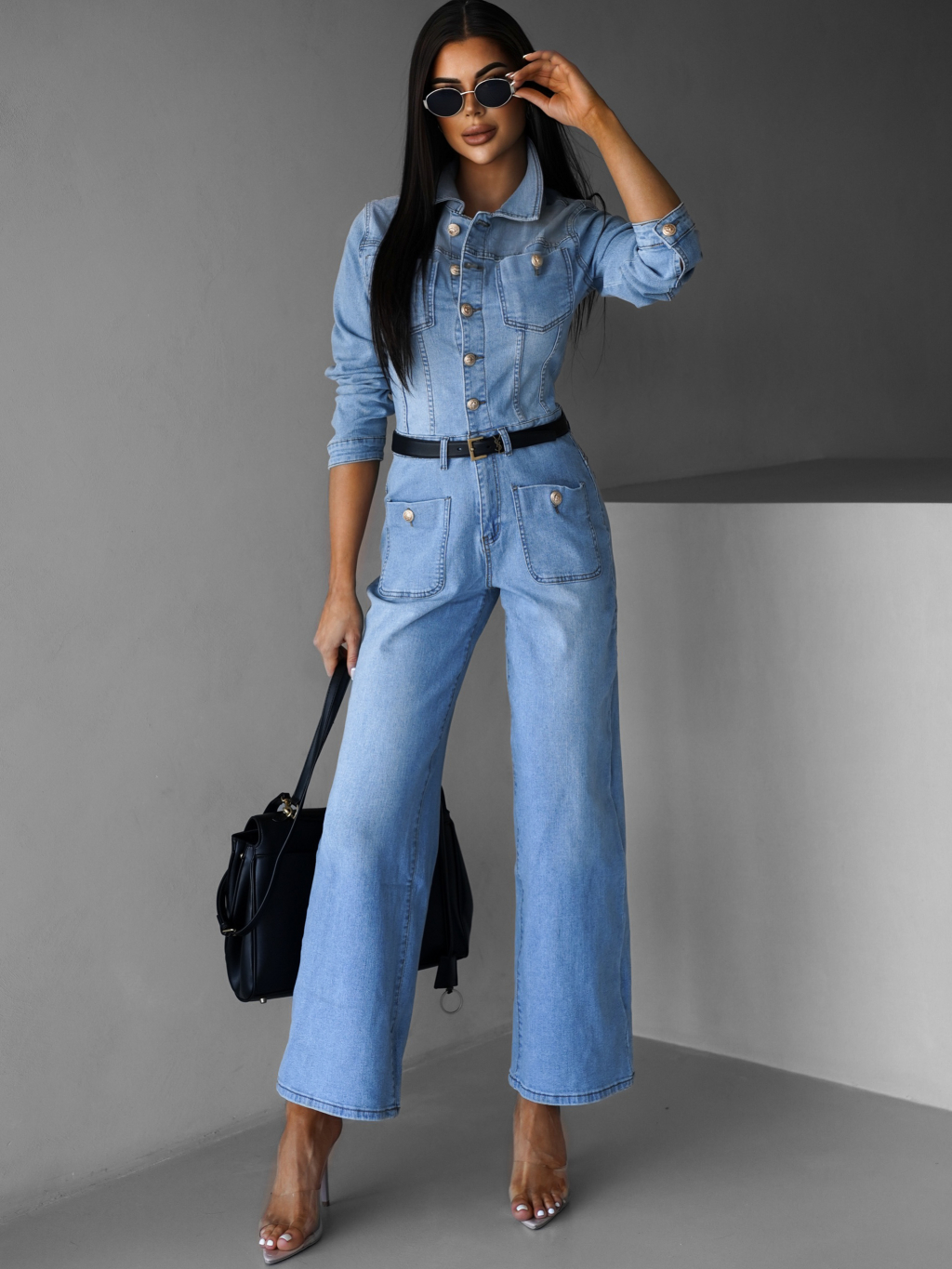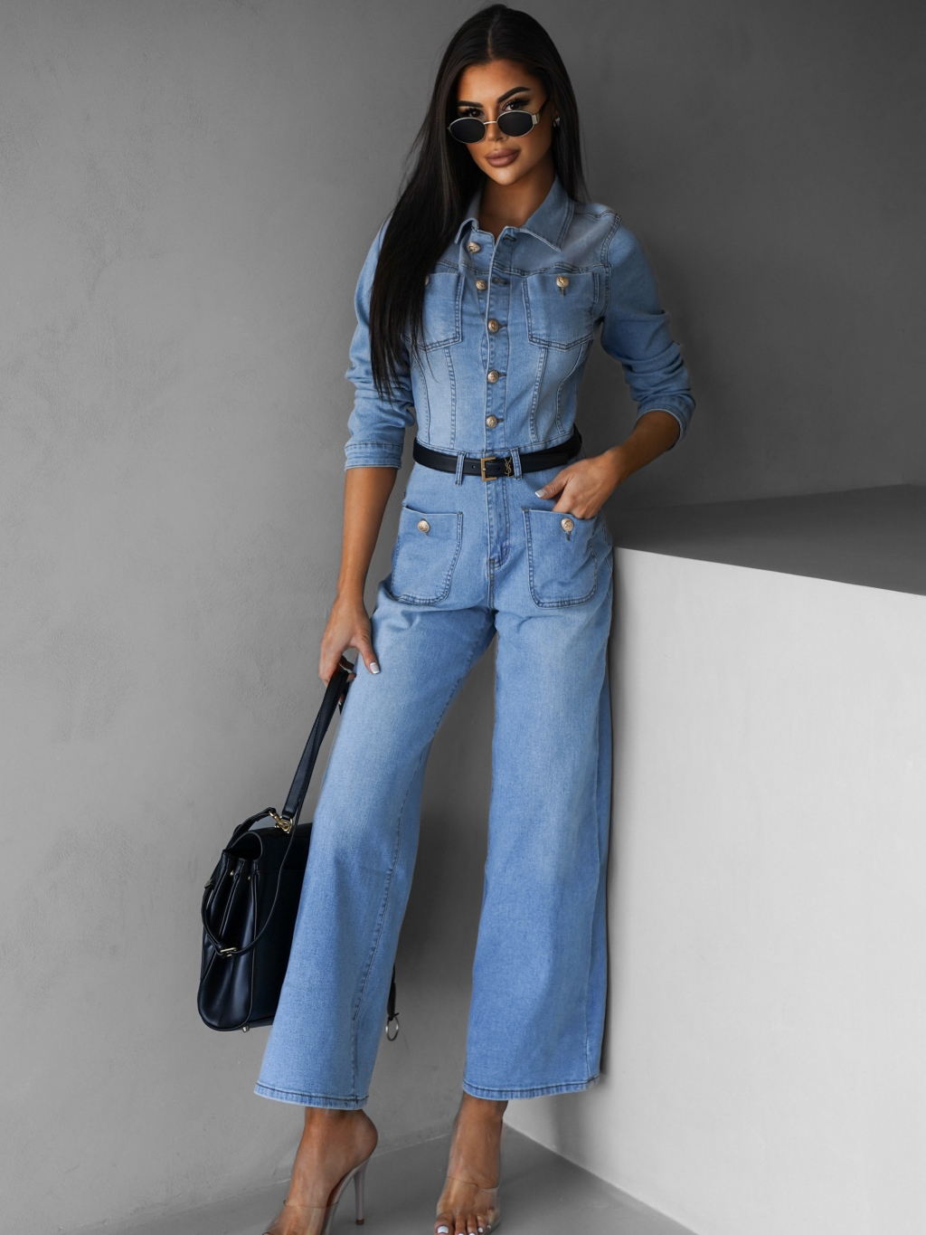 Modrý džínový dlouhý overal VARNOT s dlouhým rukávem