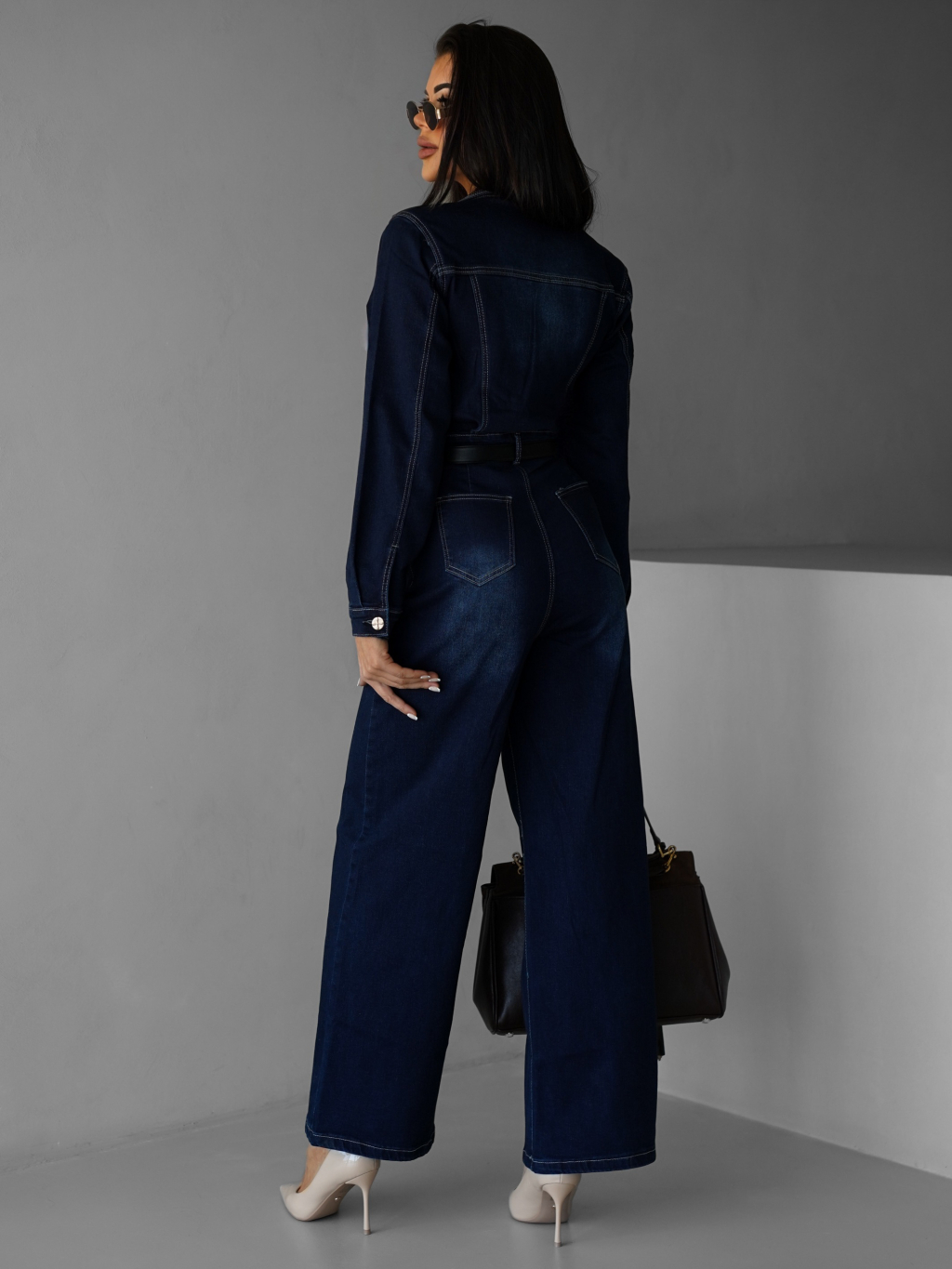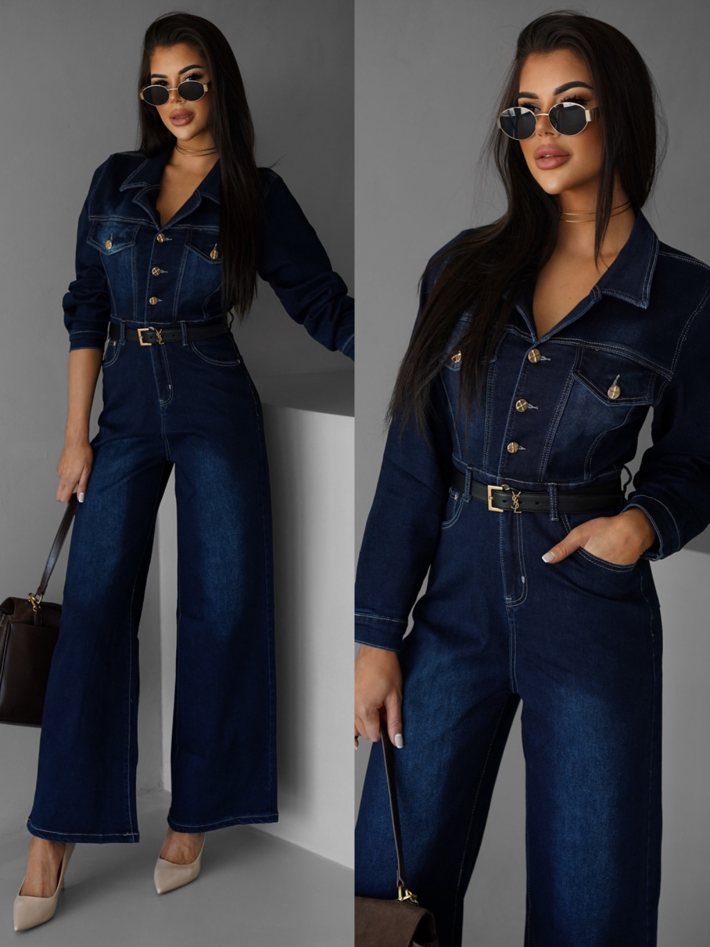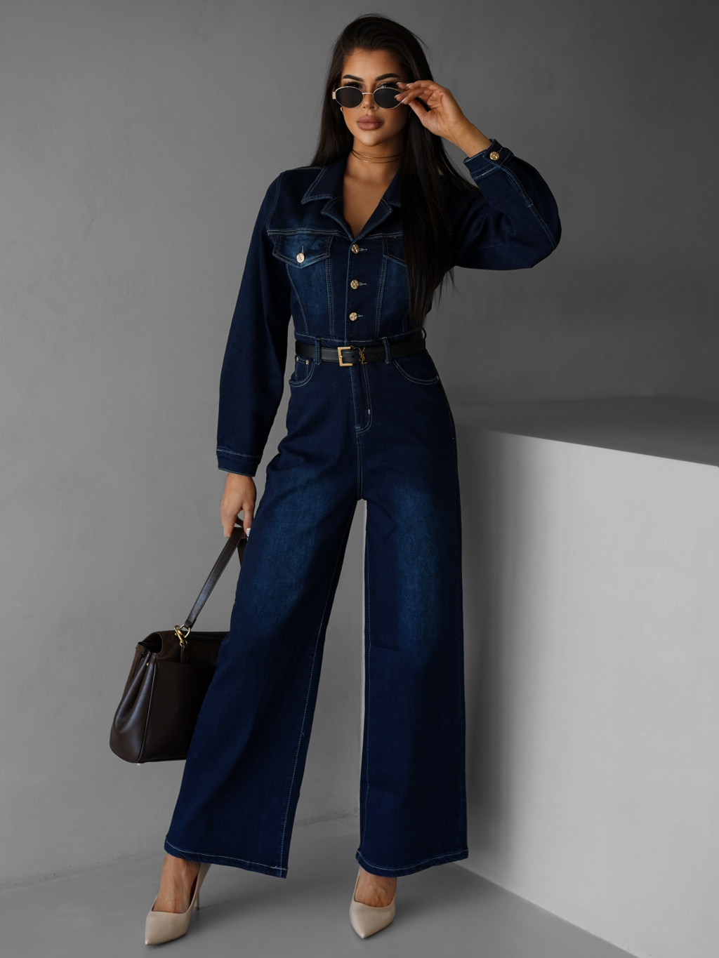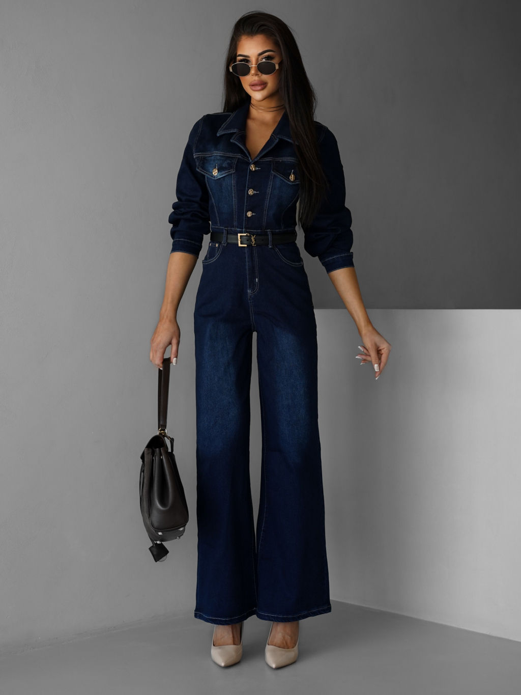 Tmavě modrý džínový dlouhý overal SOUAN s dlouhým rukávem