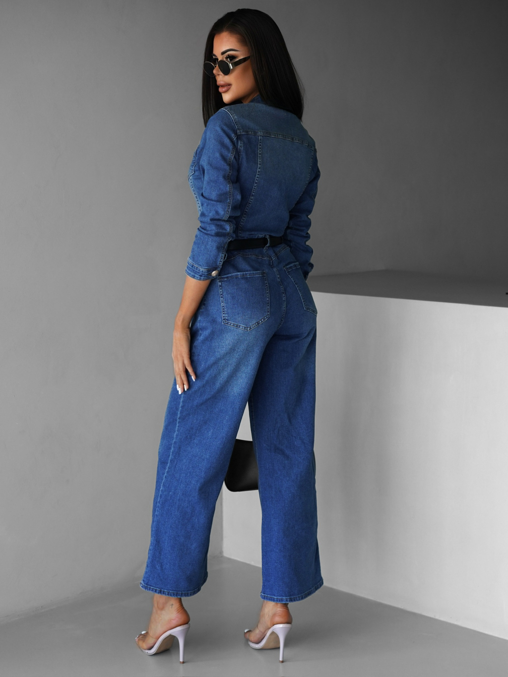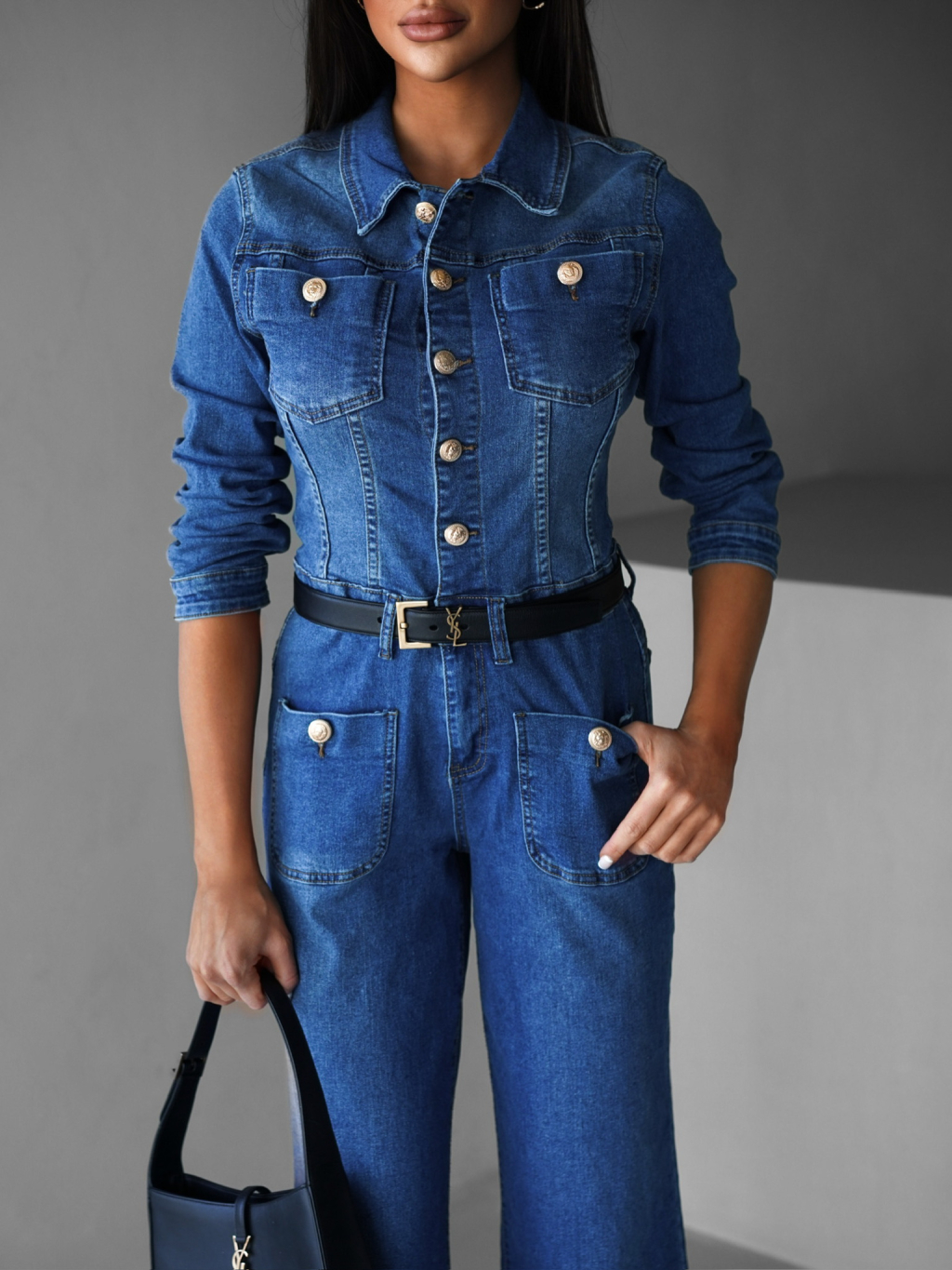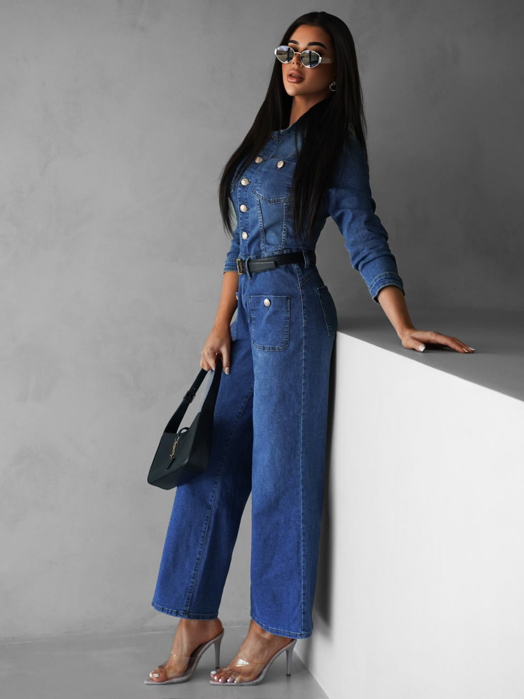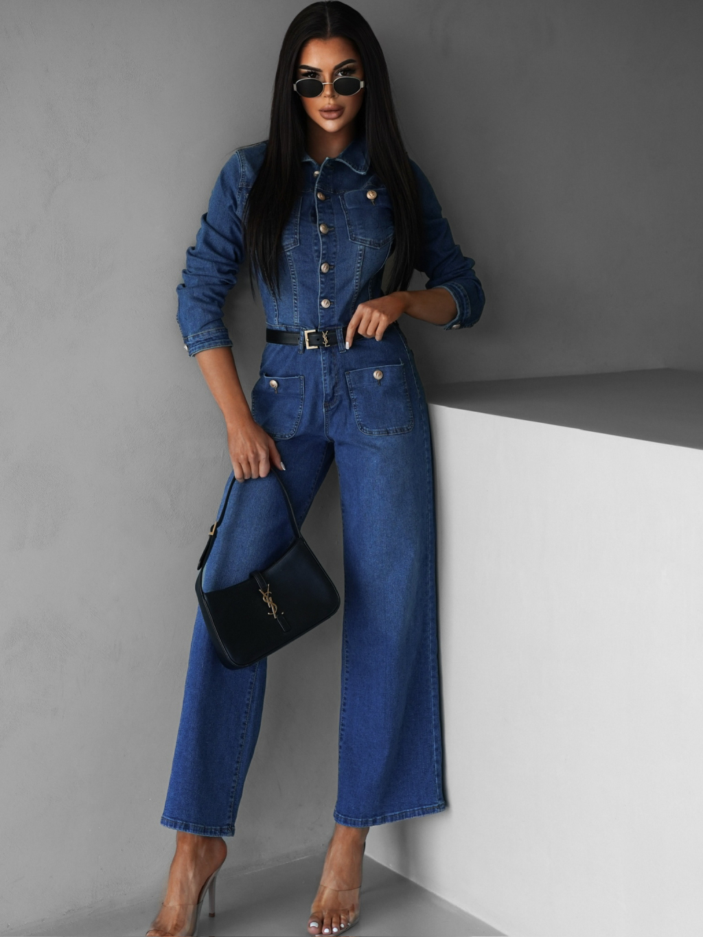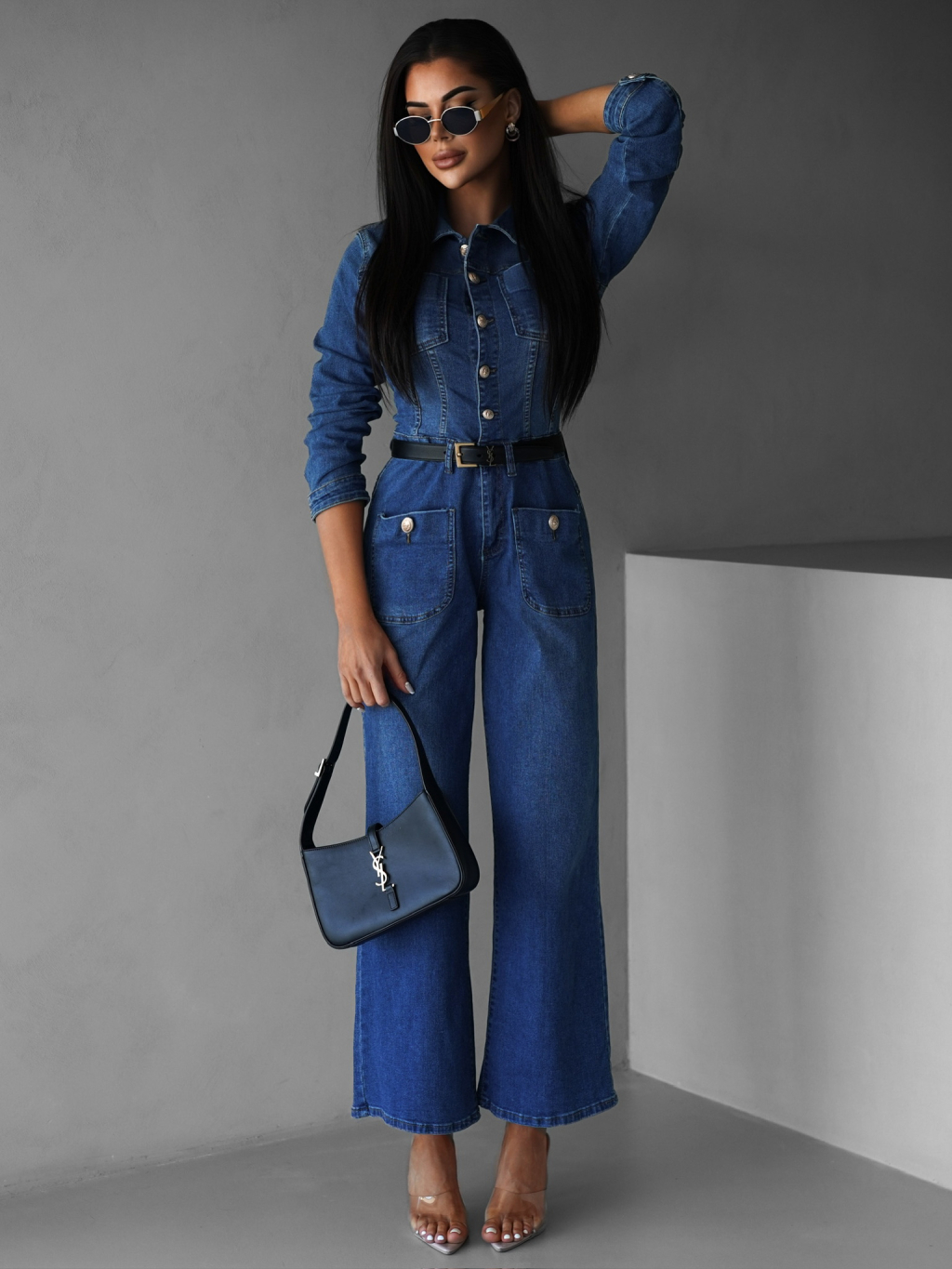 Tmavě modrý džínový dlouhý overal VARNOT s dlouhým rukávem
