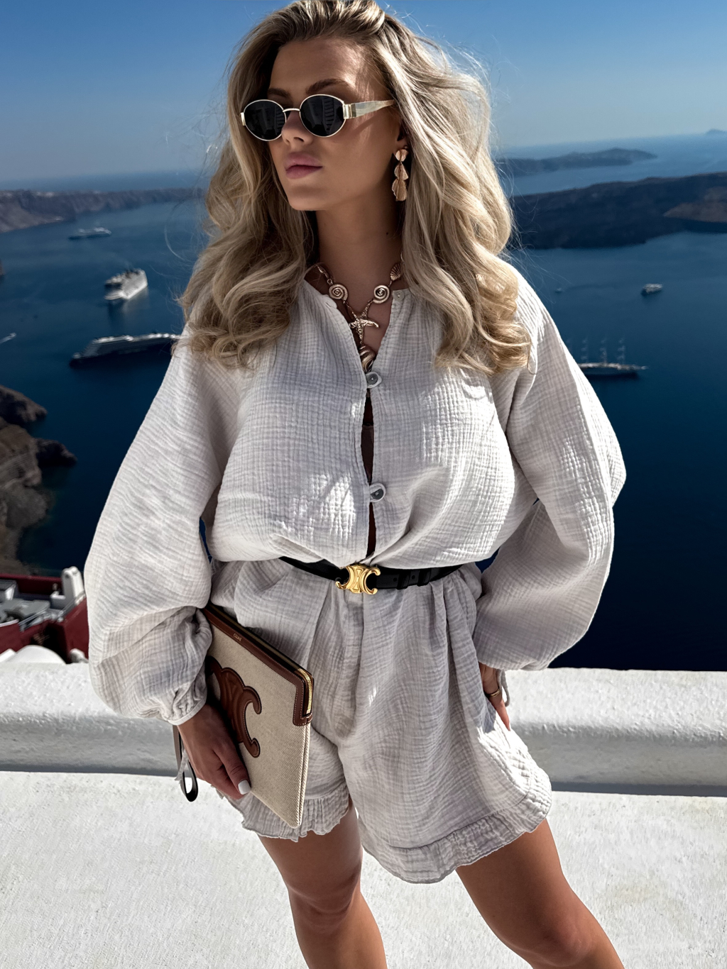 Béžový mušelínový krátký letní overal NOVIRA
