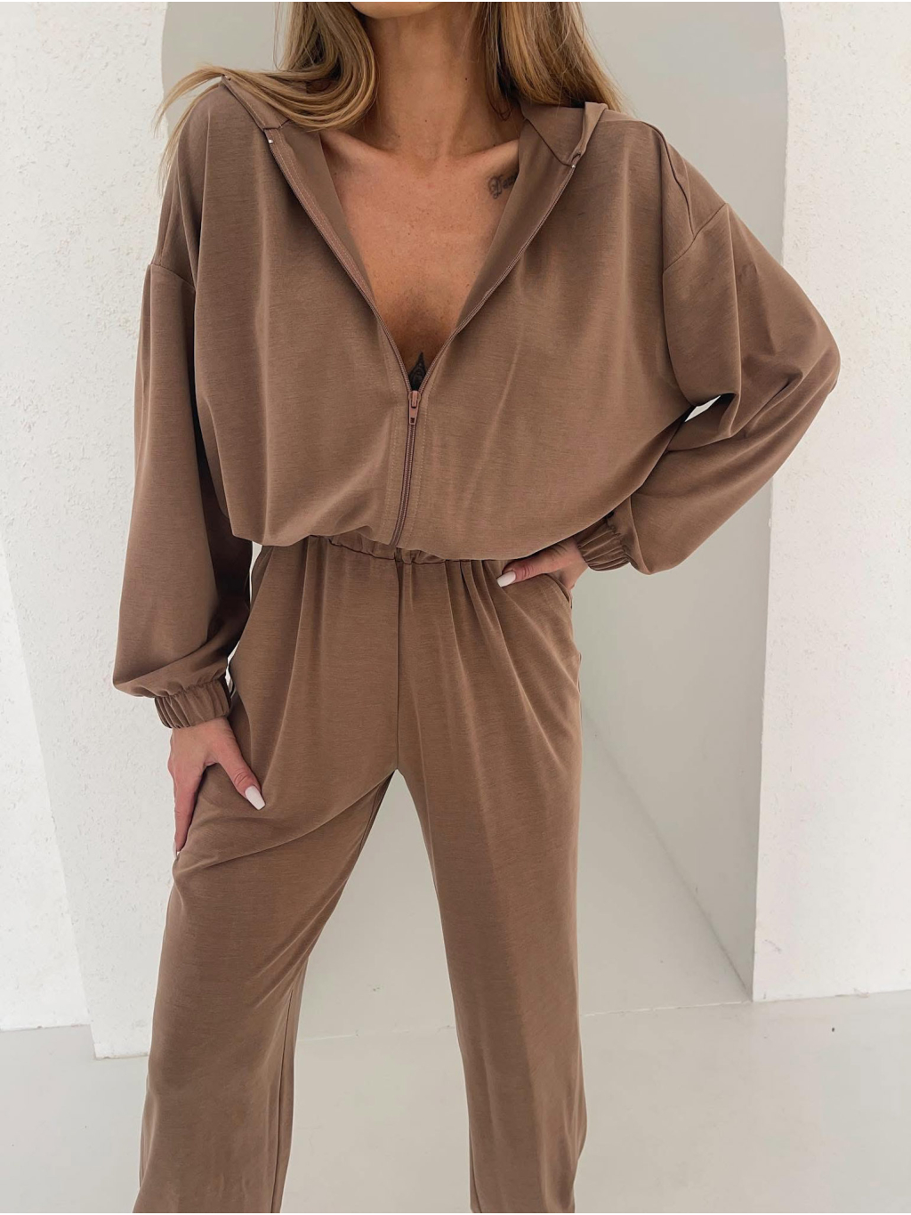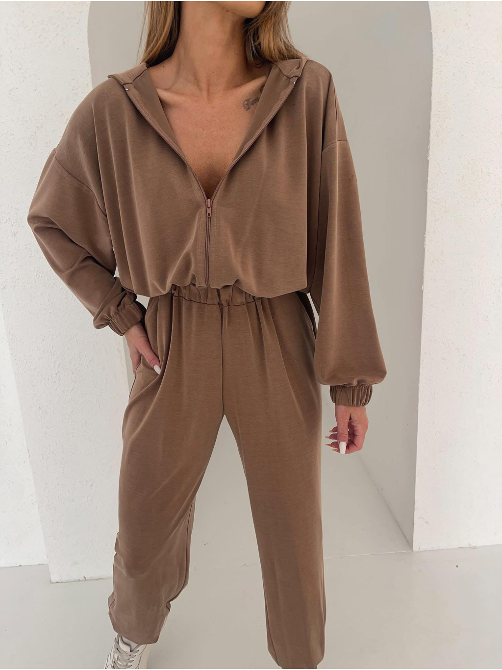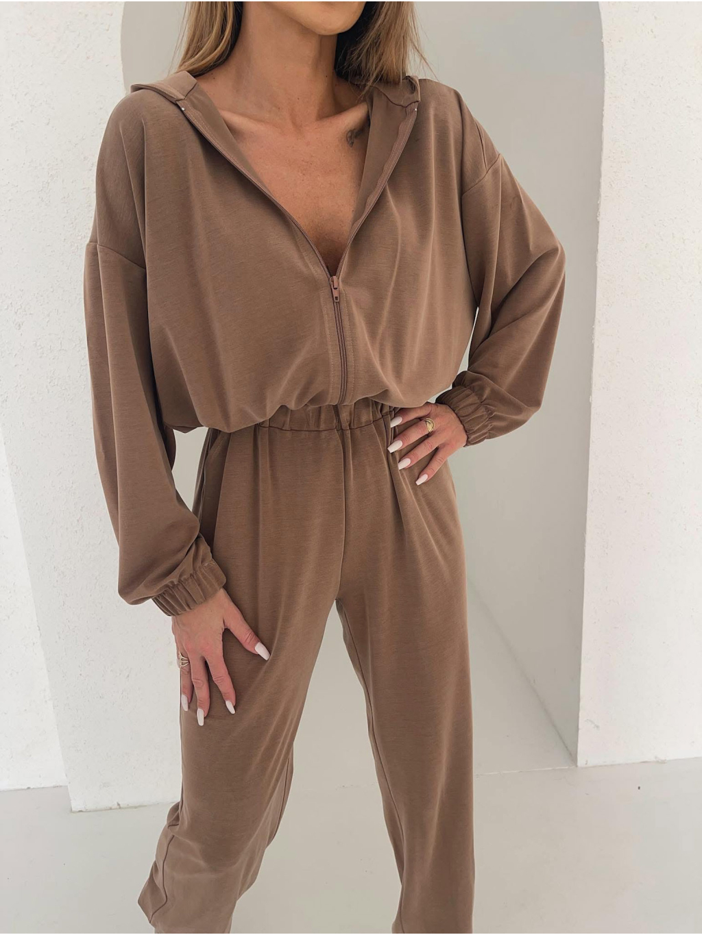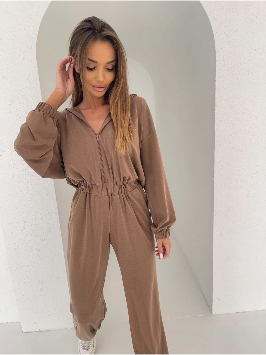 Hnědý luxusní pohodlný overal LEMOULET