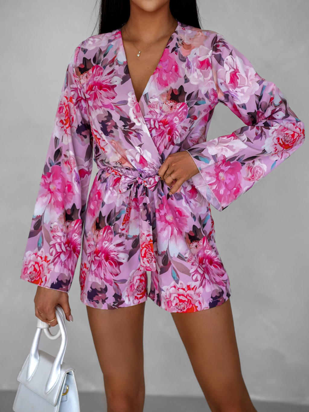 Růžový květinový letní overal VYSBY s páskem