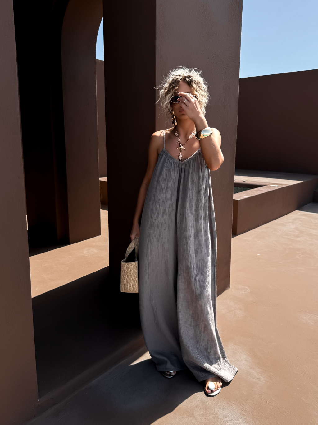 Šedohnědý mušelínový maxi overal ZEVANDER