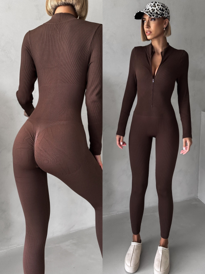 Hnědý dlouhý sportovní jóga overal ROVIKA