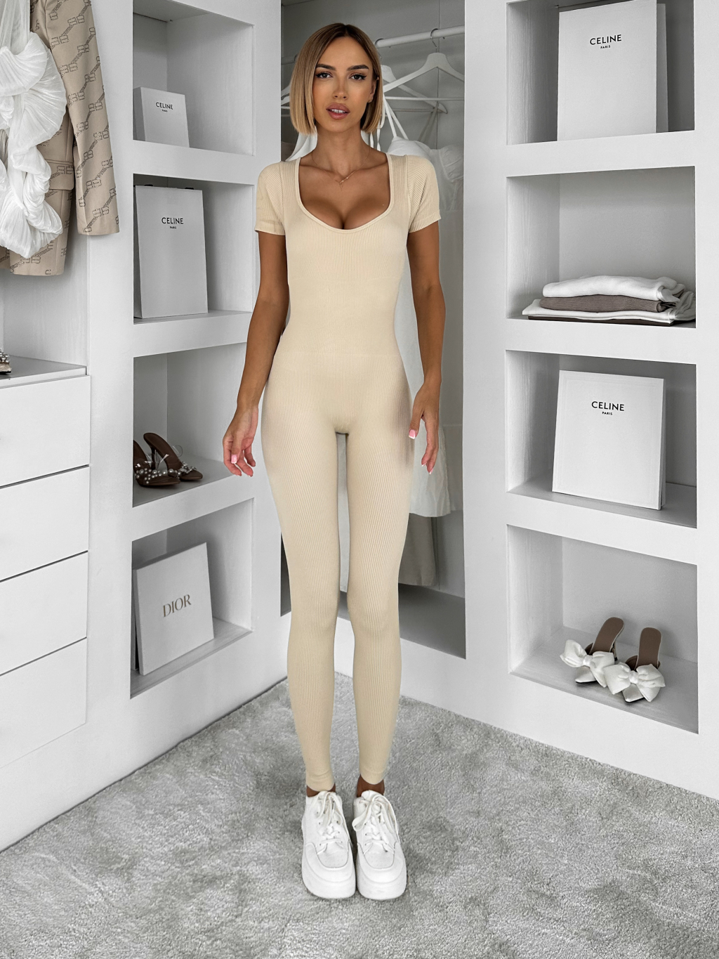 Béžový tvarující overal GRAYZE s krátkým rukávem