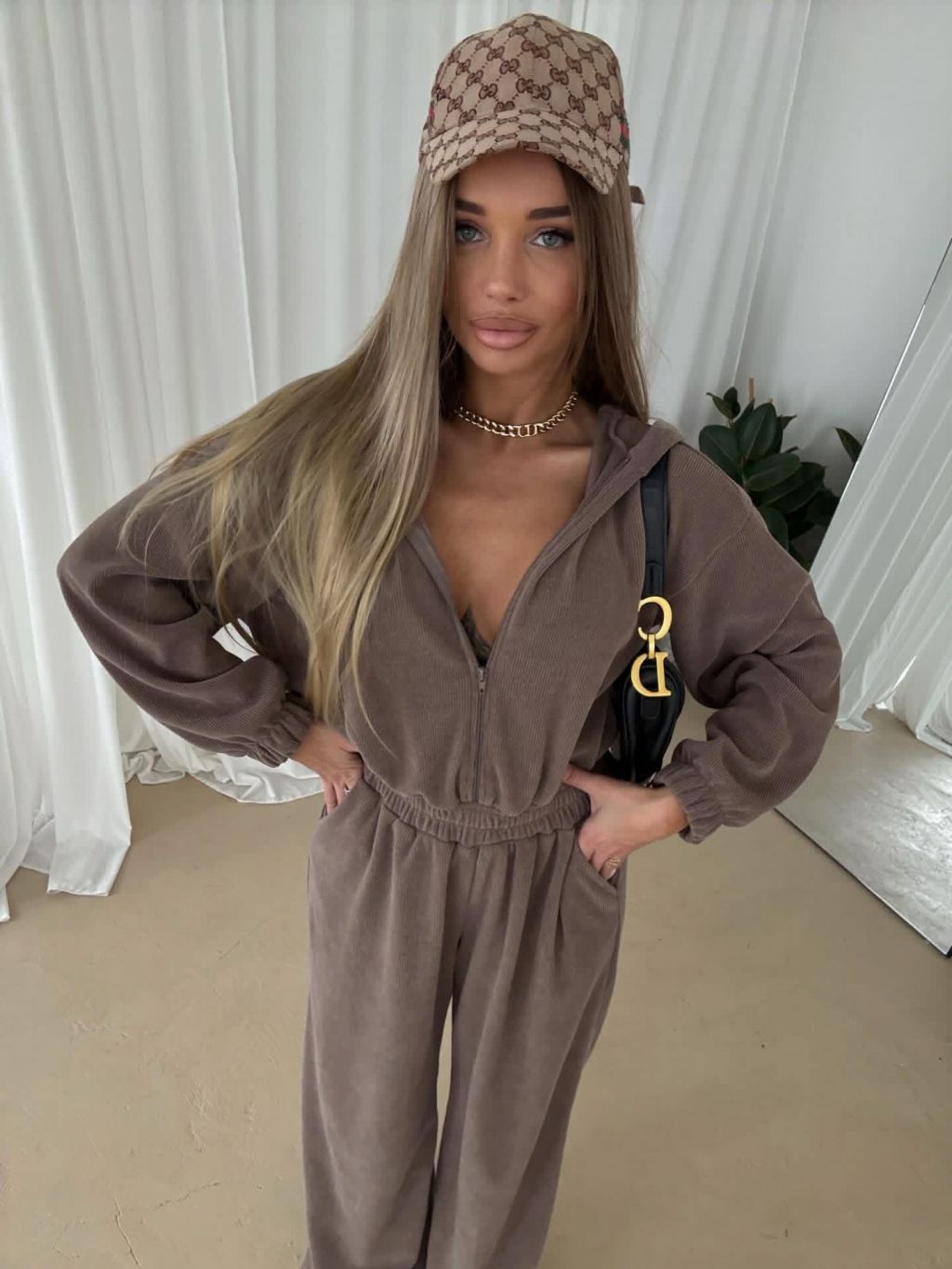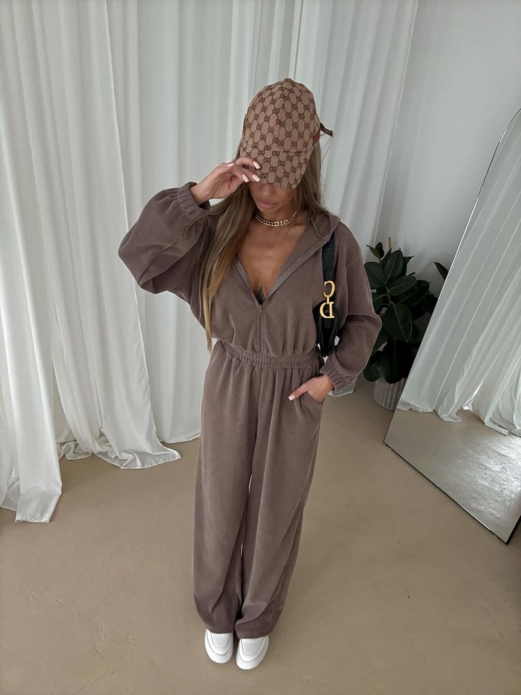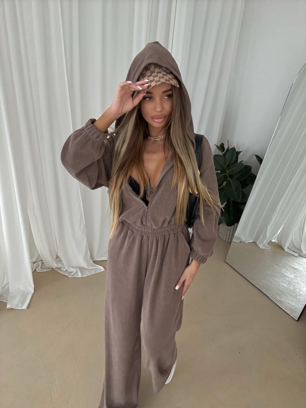 Hnědý dlouhý luxusní overal VYXEN s kapucí