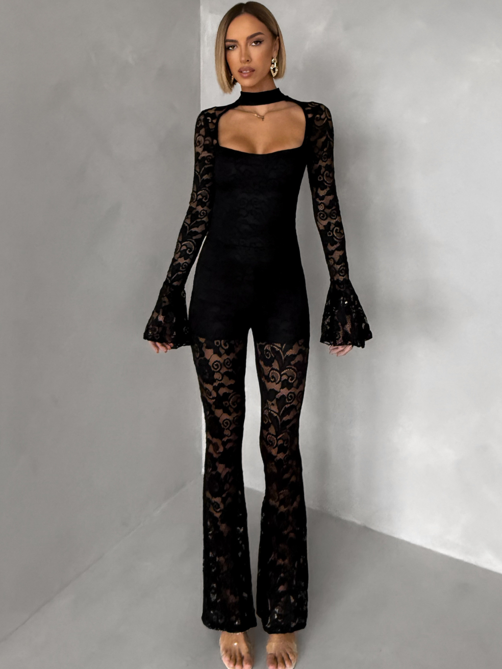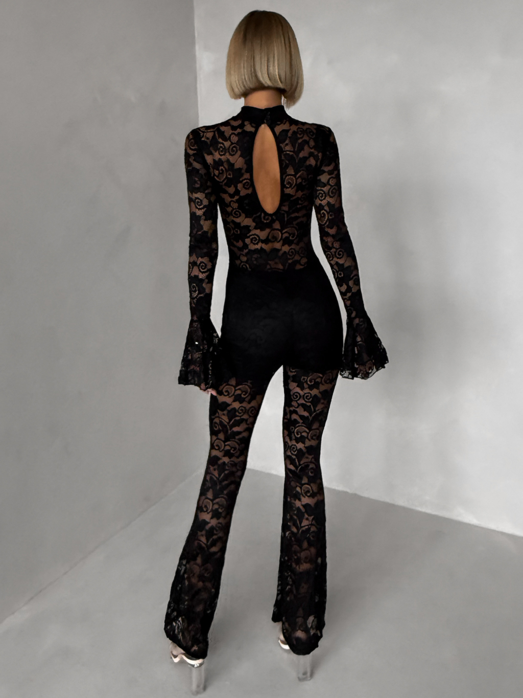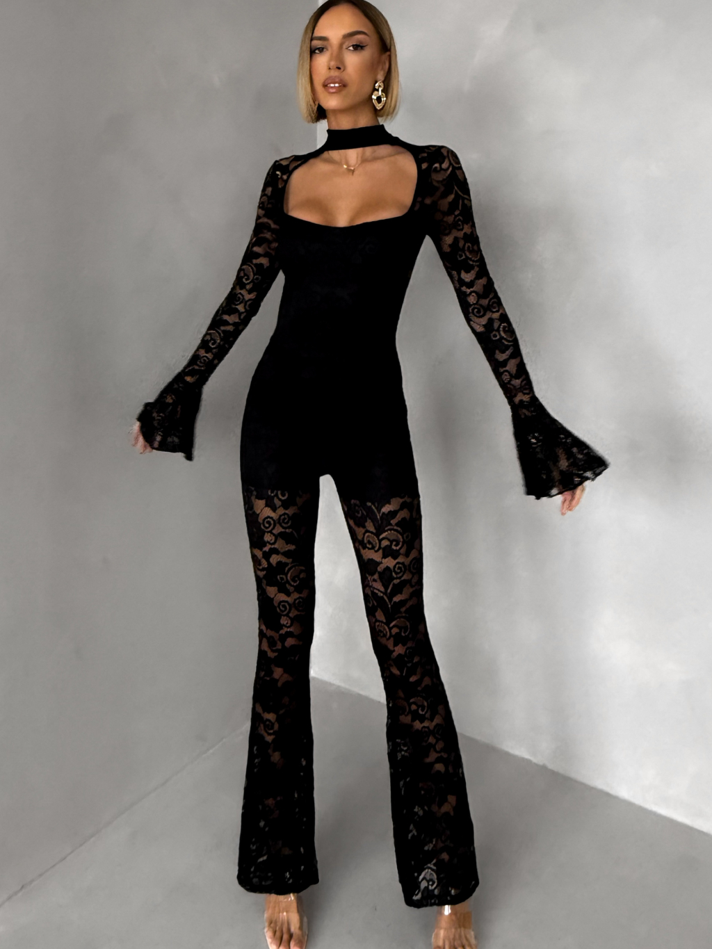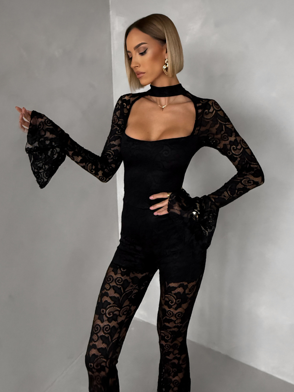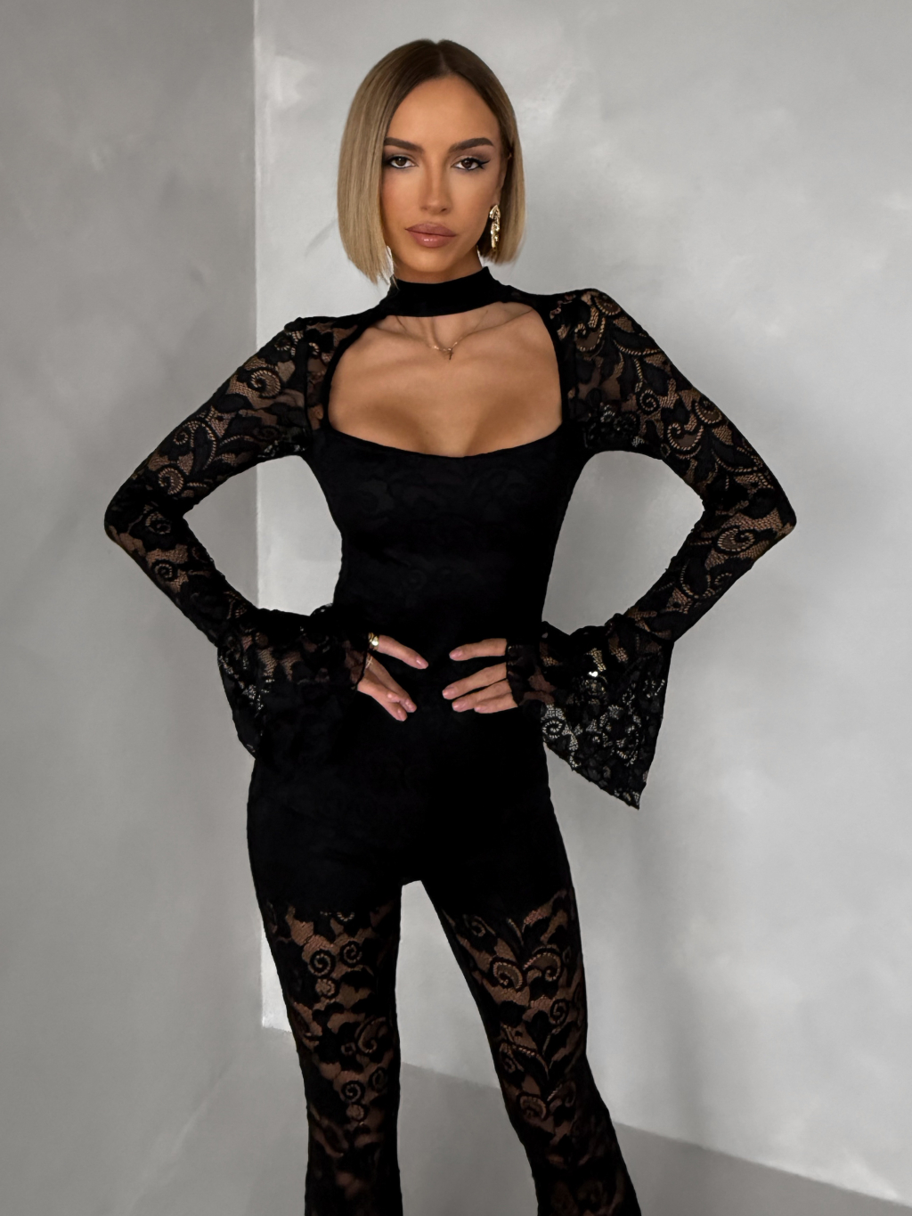 Černý krajkový společenský dlouhý overal ZYRELLA