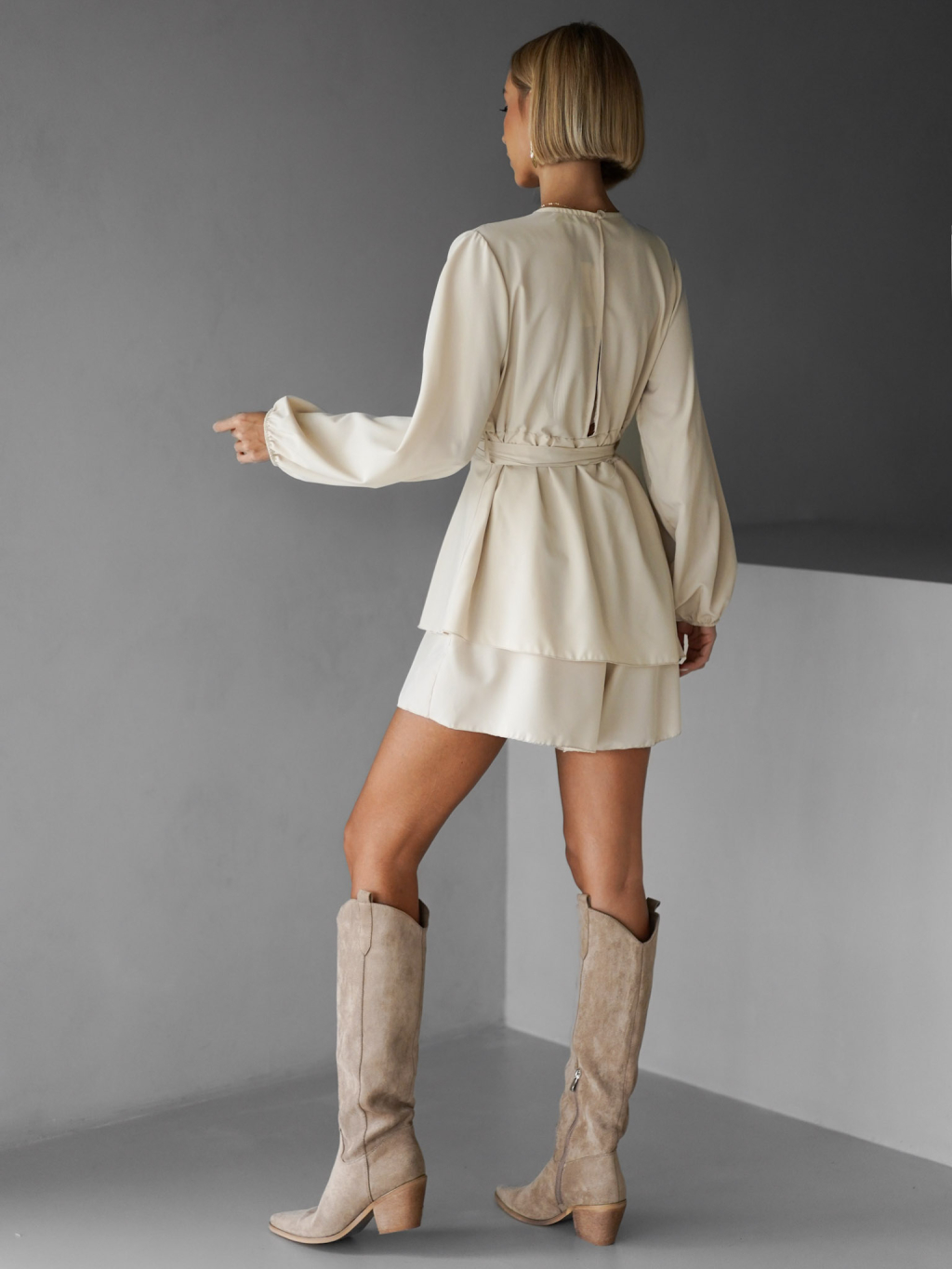Béžový overal MOUSEE s dlouhým rukávem