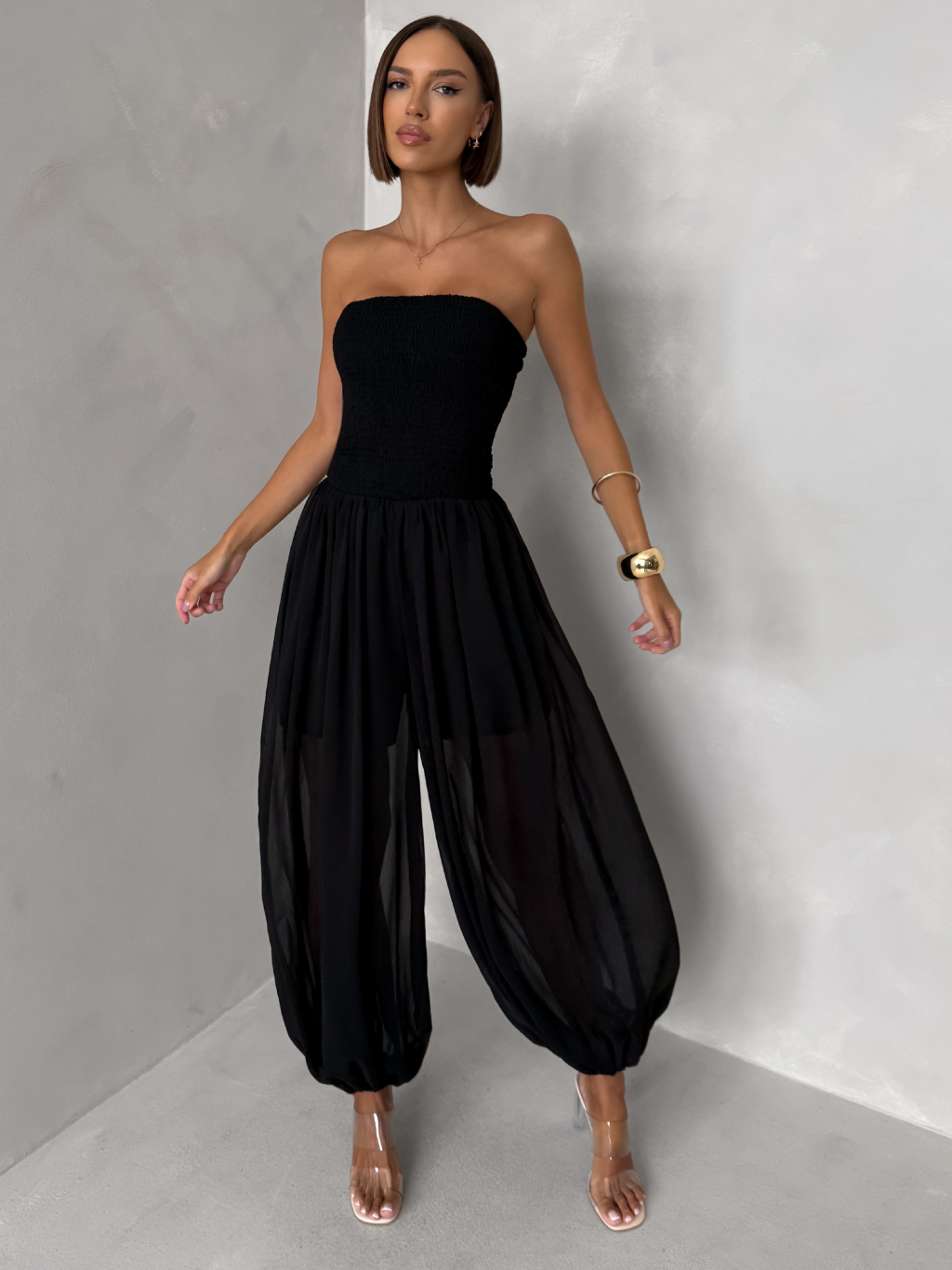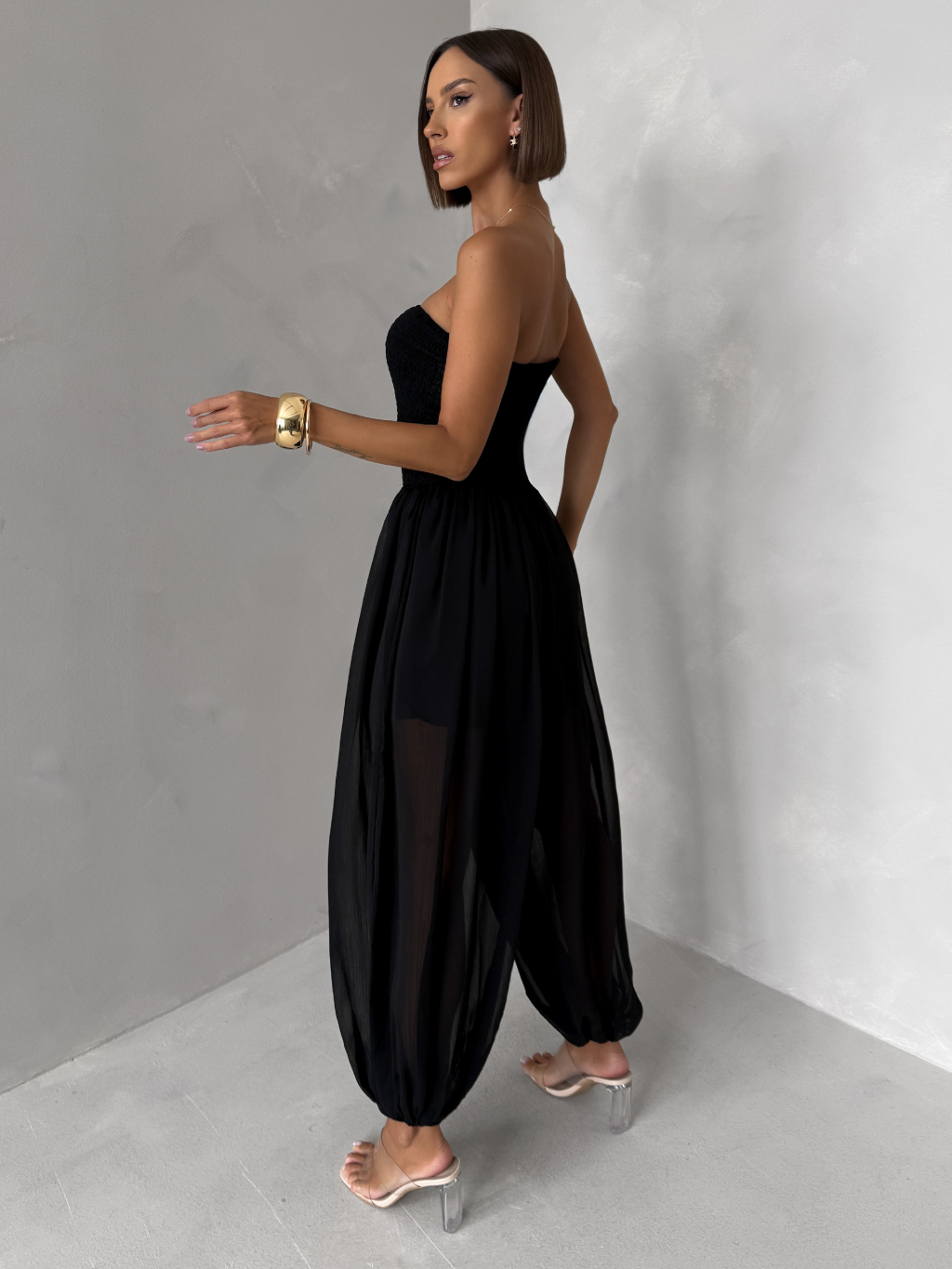 Černý elastický stylový overal ROVALY