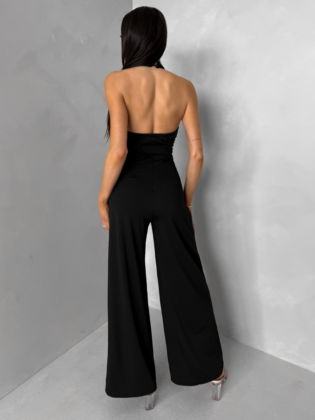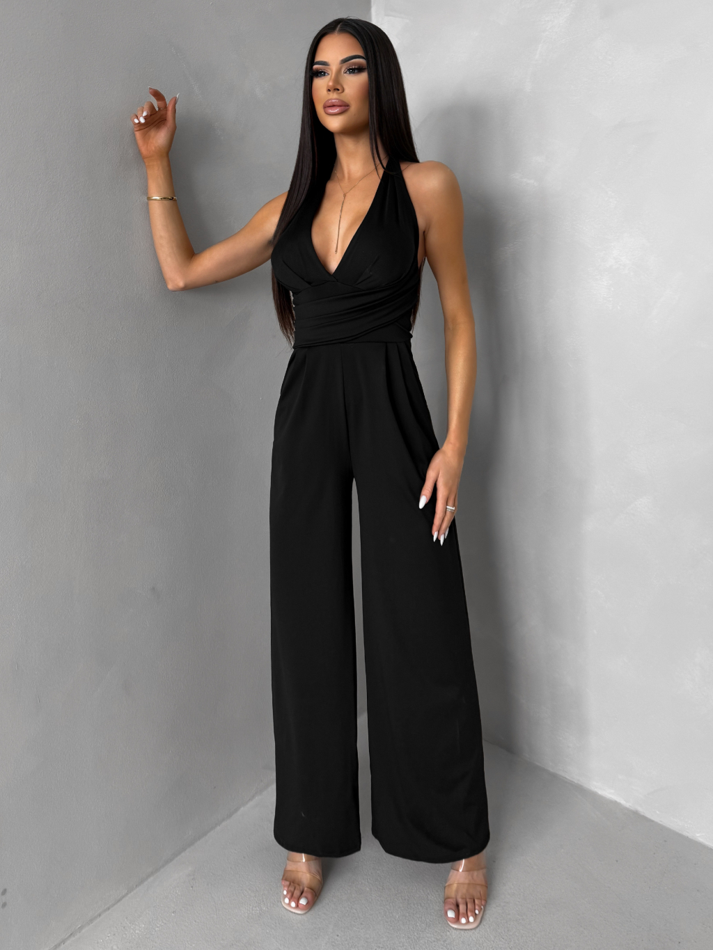 Černý společenský dlouhý overal ARVELLA s výstřihem
