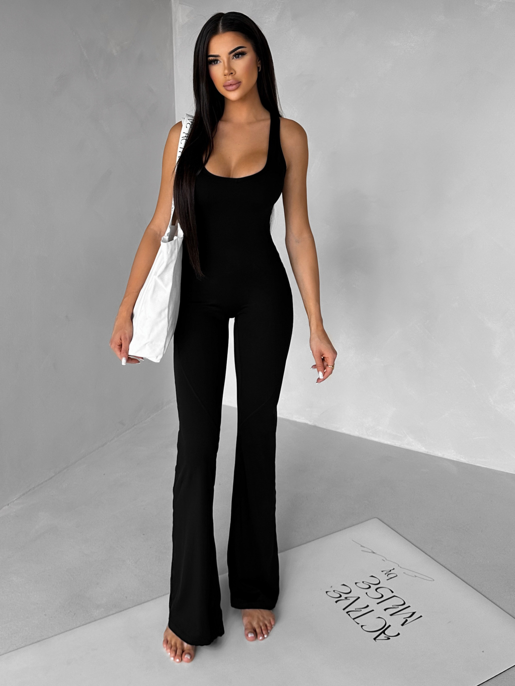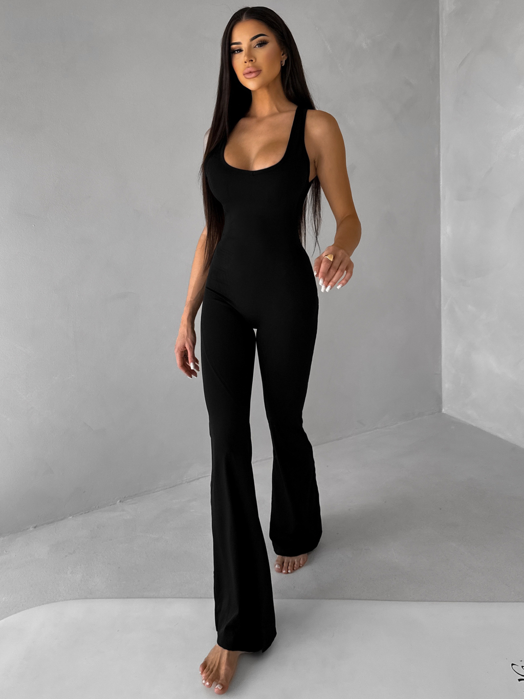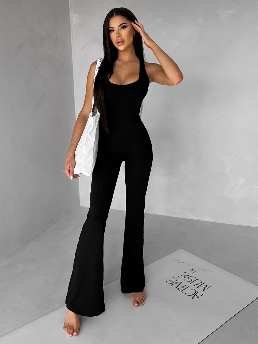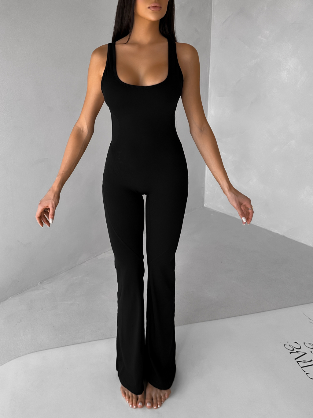 Černý tvarující sportovní overal WOLTERA