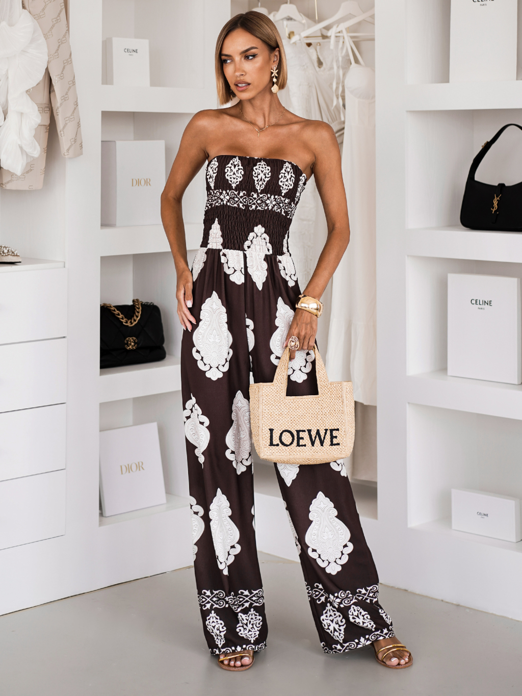 Hnědý letní overal RELOFT s ornamenty