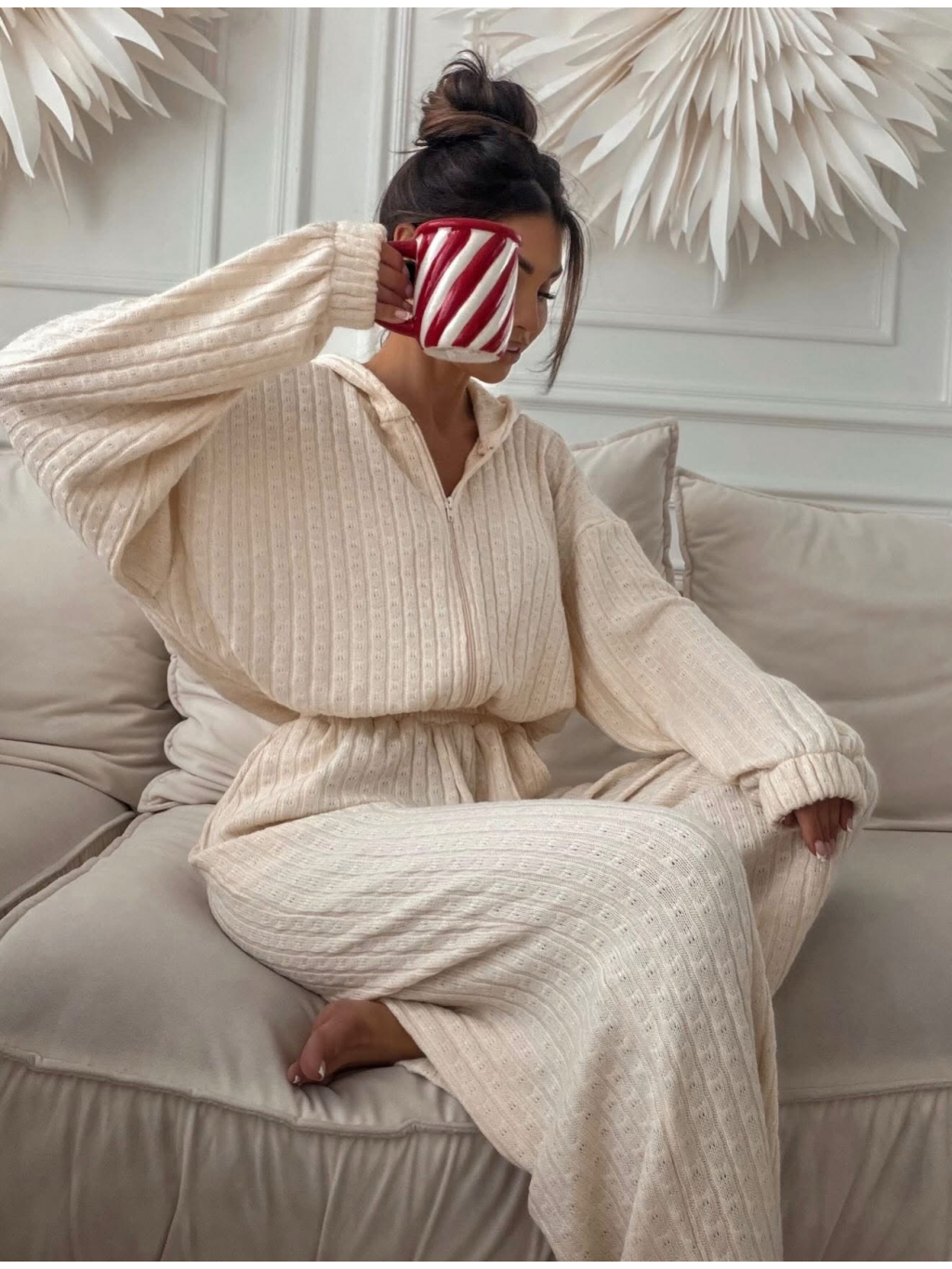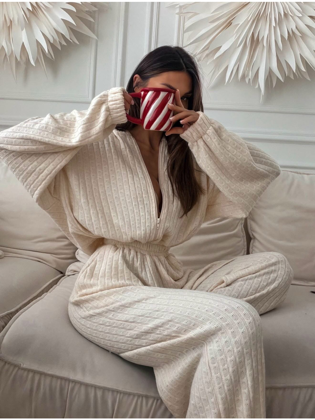 Krémový luxusní dlouhý overal VELIANO
