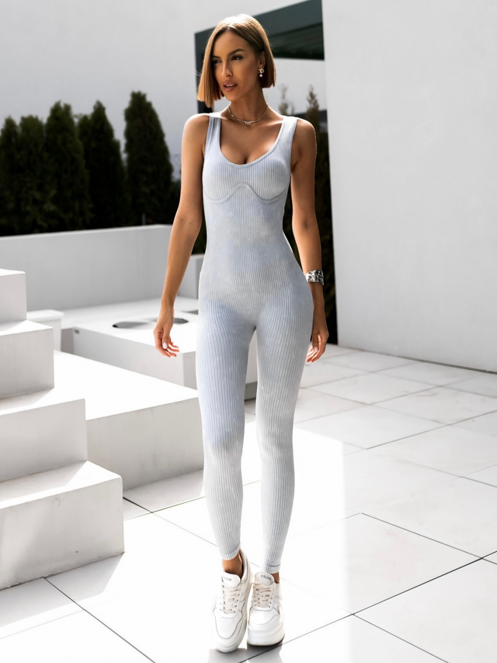 Šedý dlouhý elastický overal TRAST