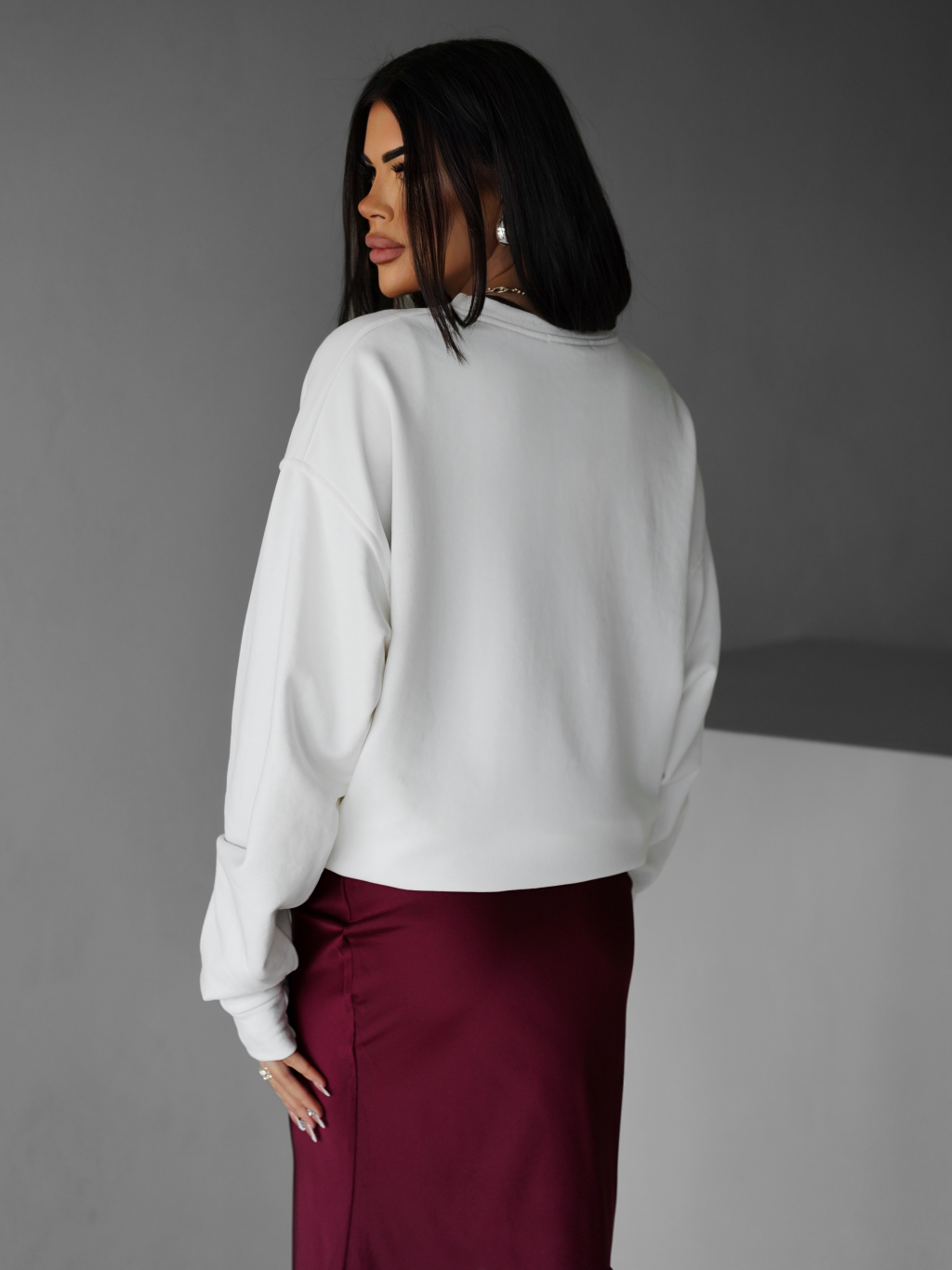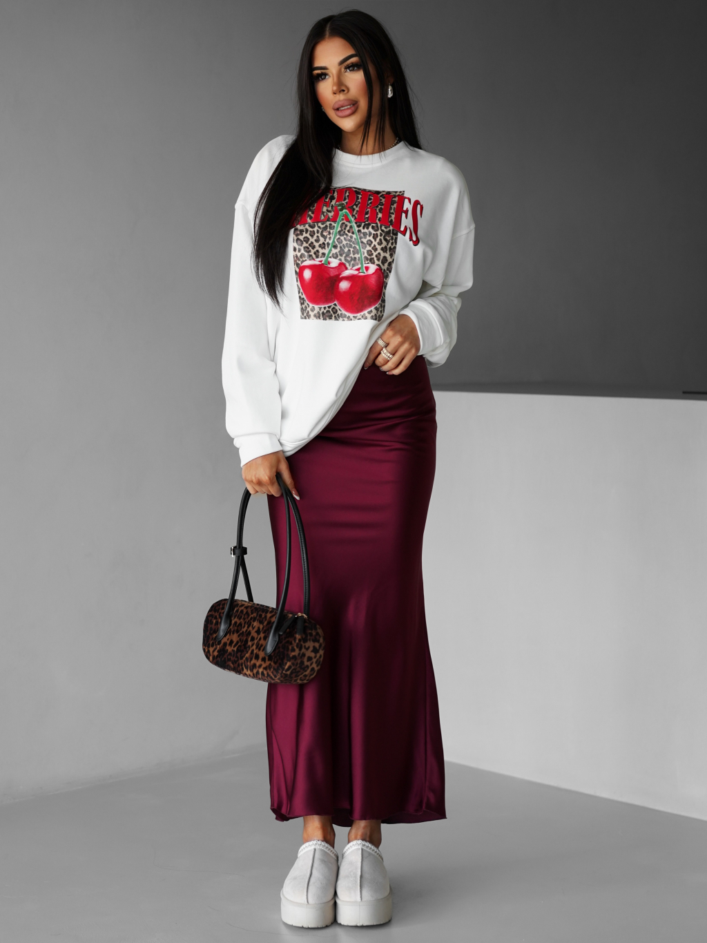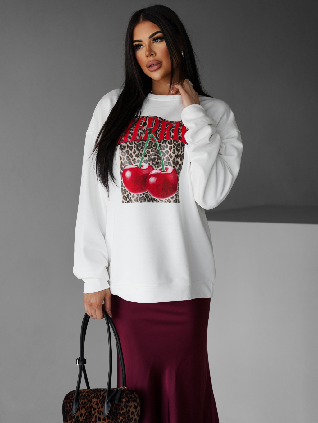 Bílá bavlněná oversize mikina MEYTAL s potiskem