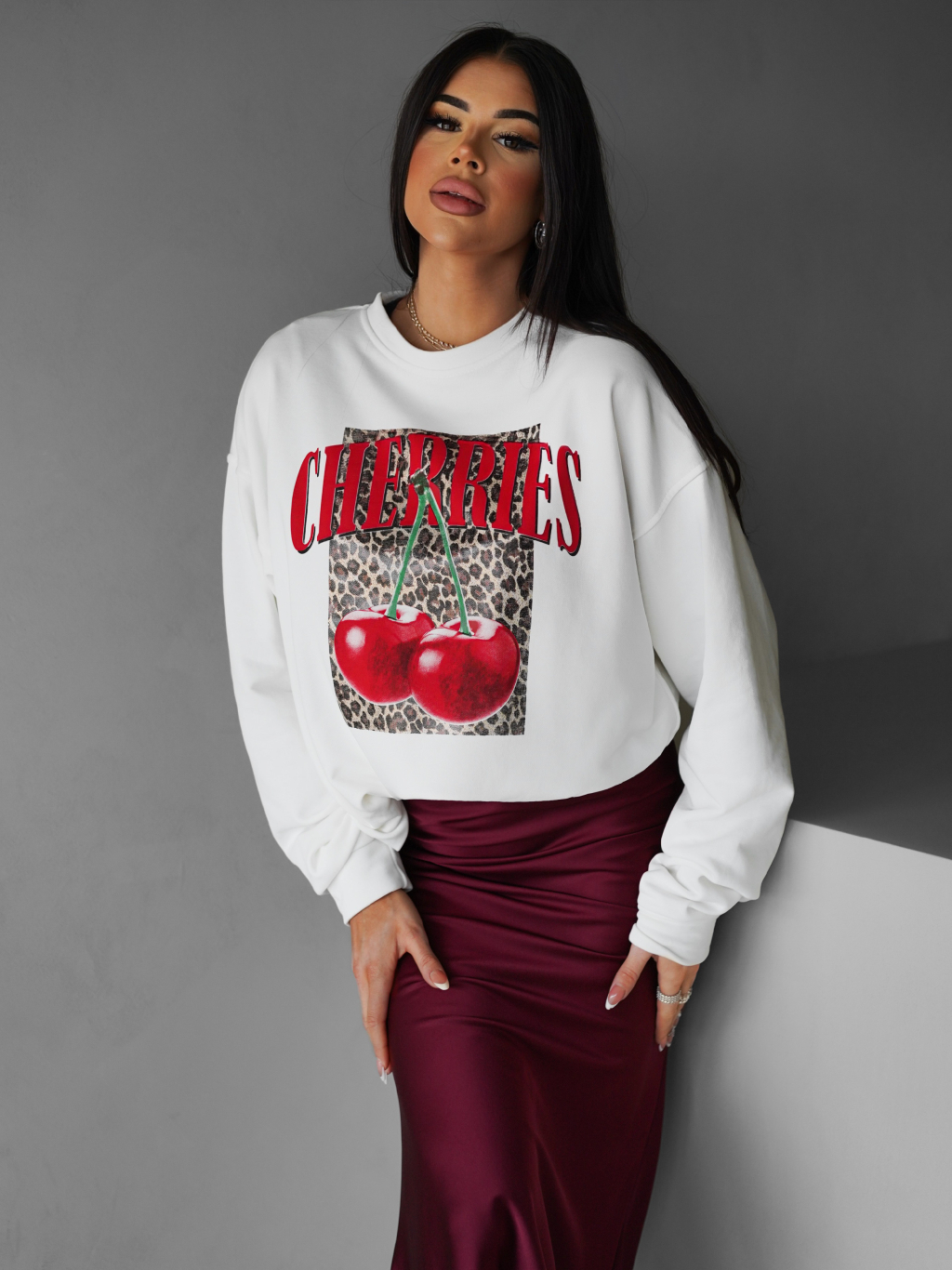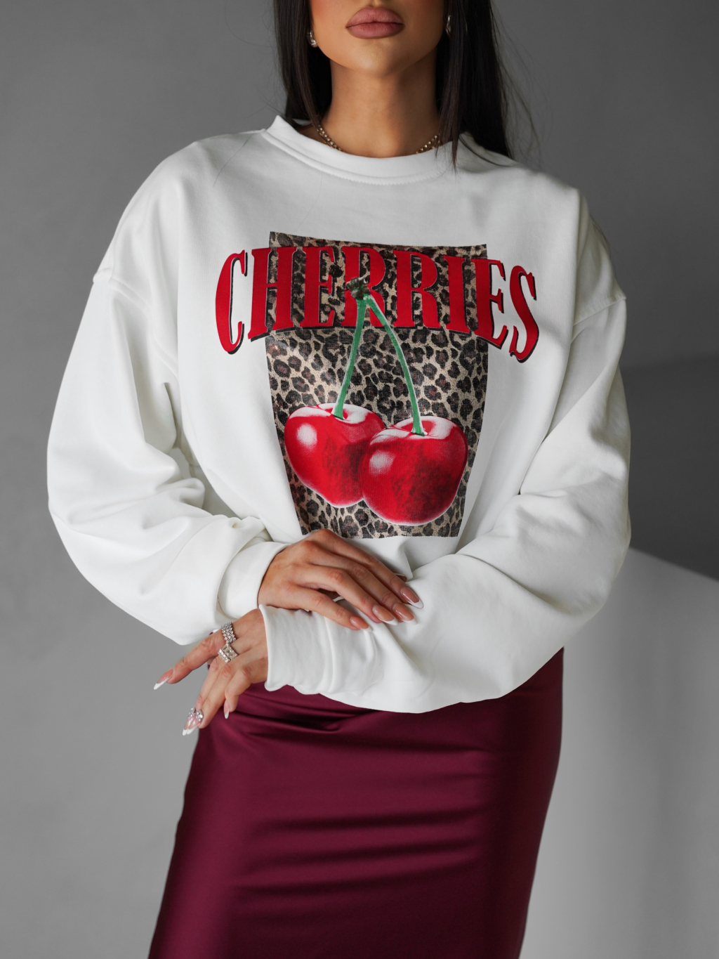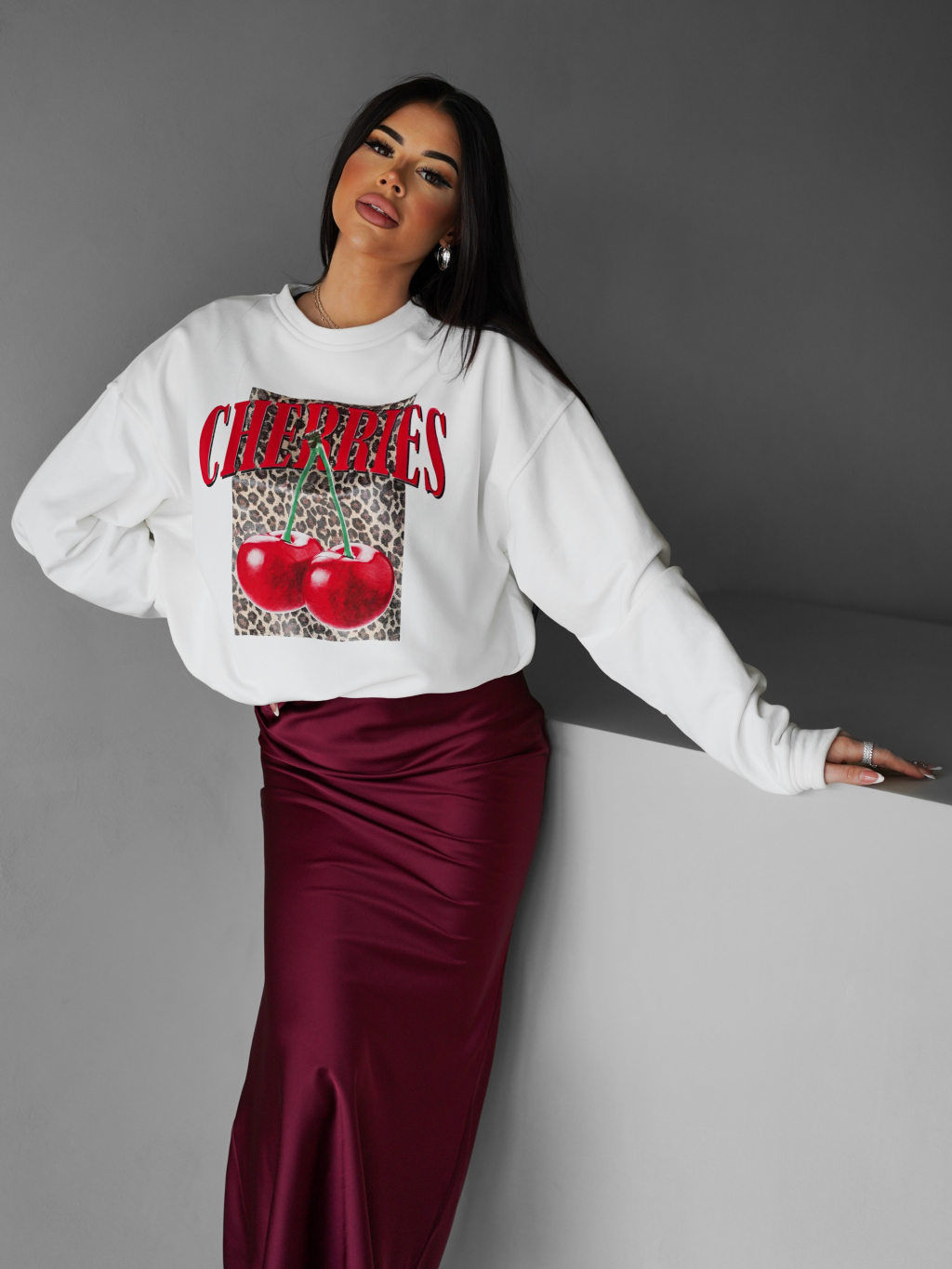 Bílá bavlněná oversize mikina MEYTAL s potiskem