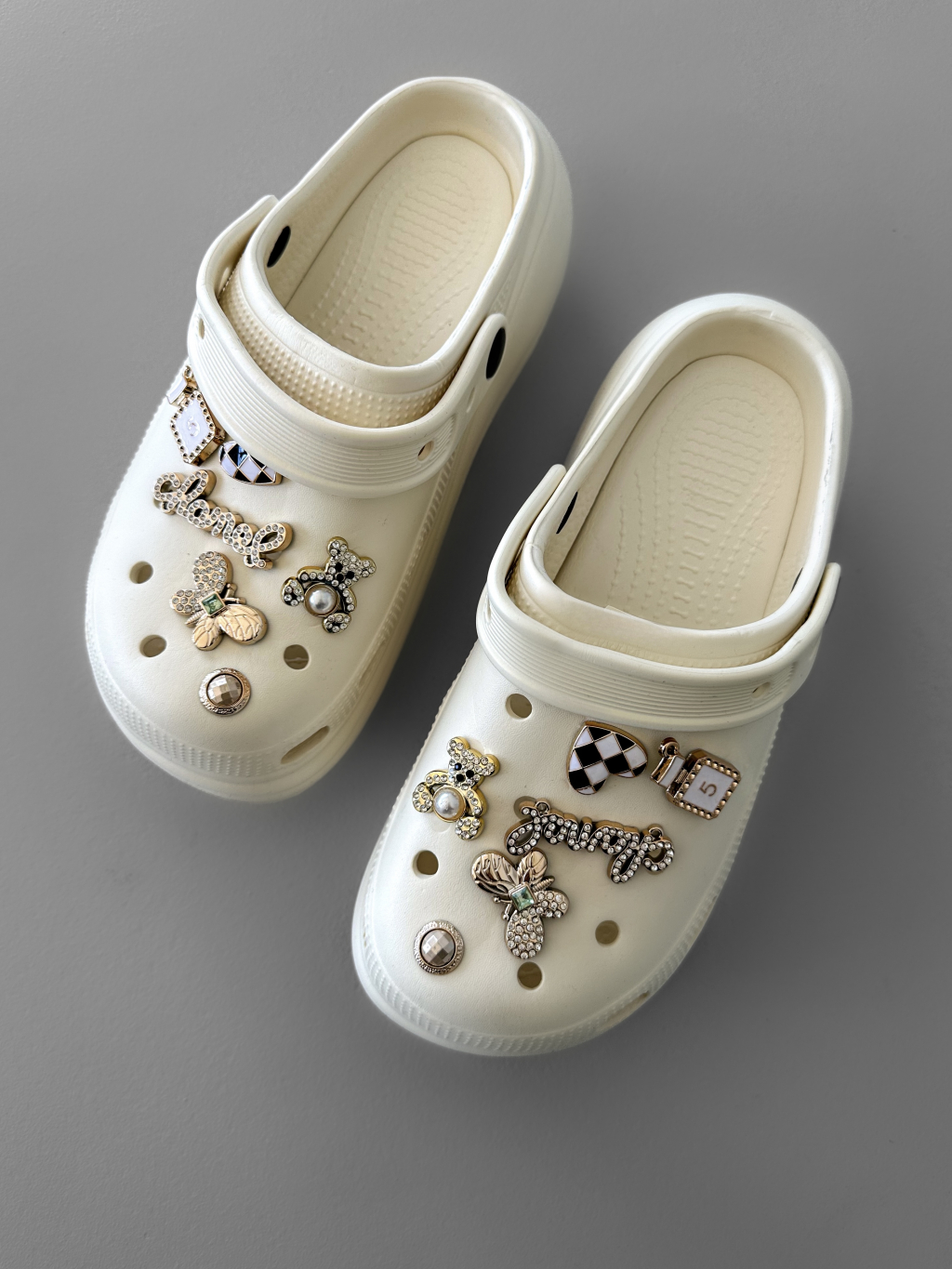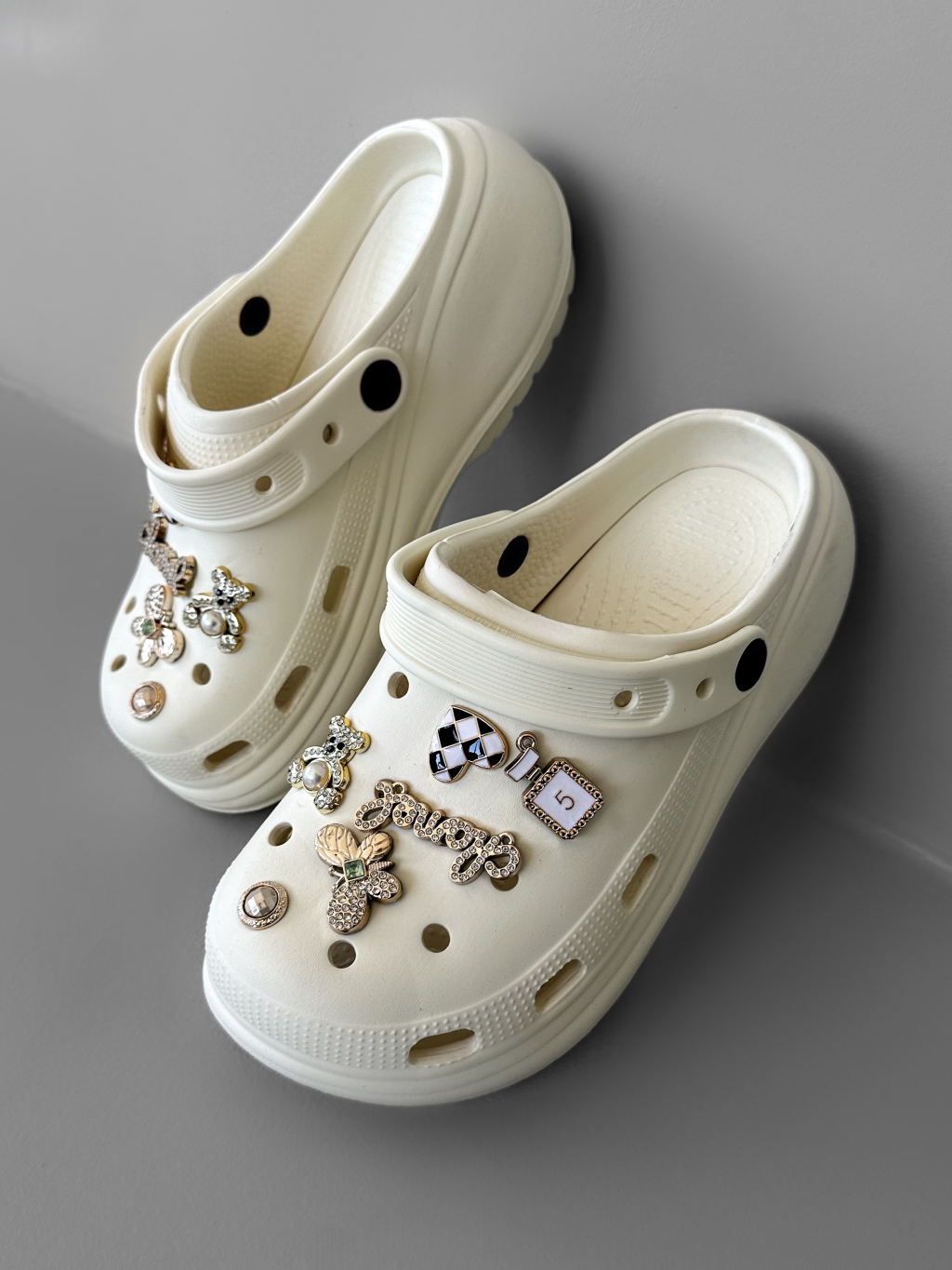 Krémové nazouváky SUSIE s ozdobami ve stylu crocs