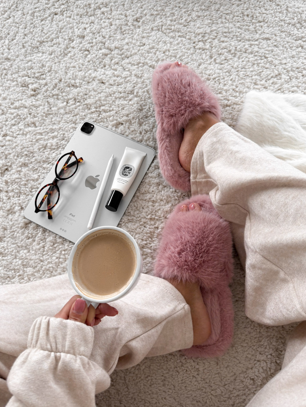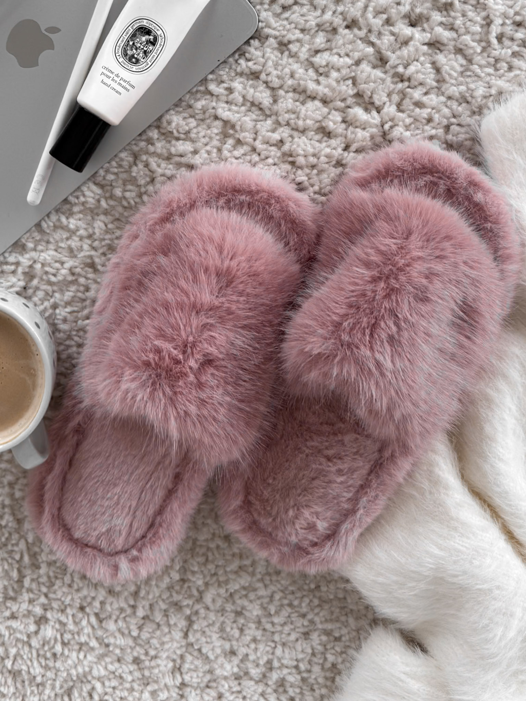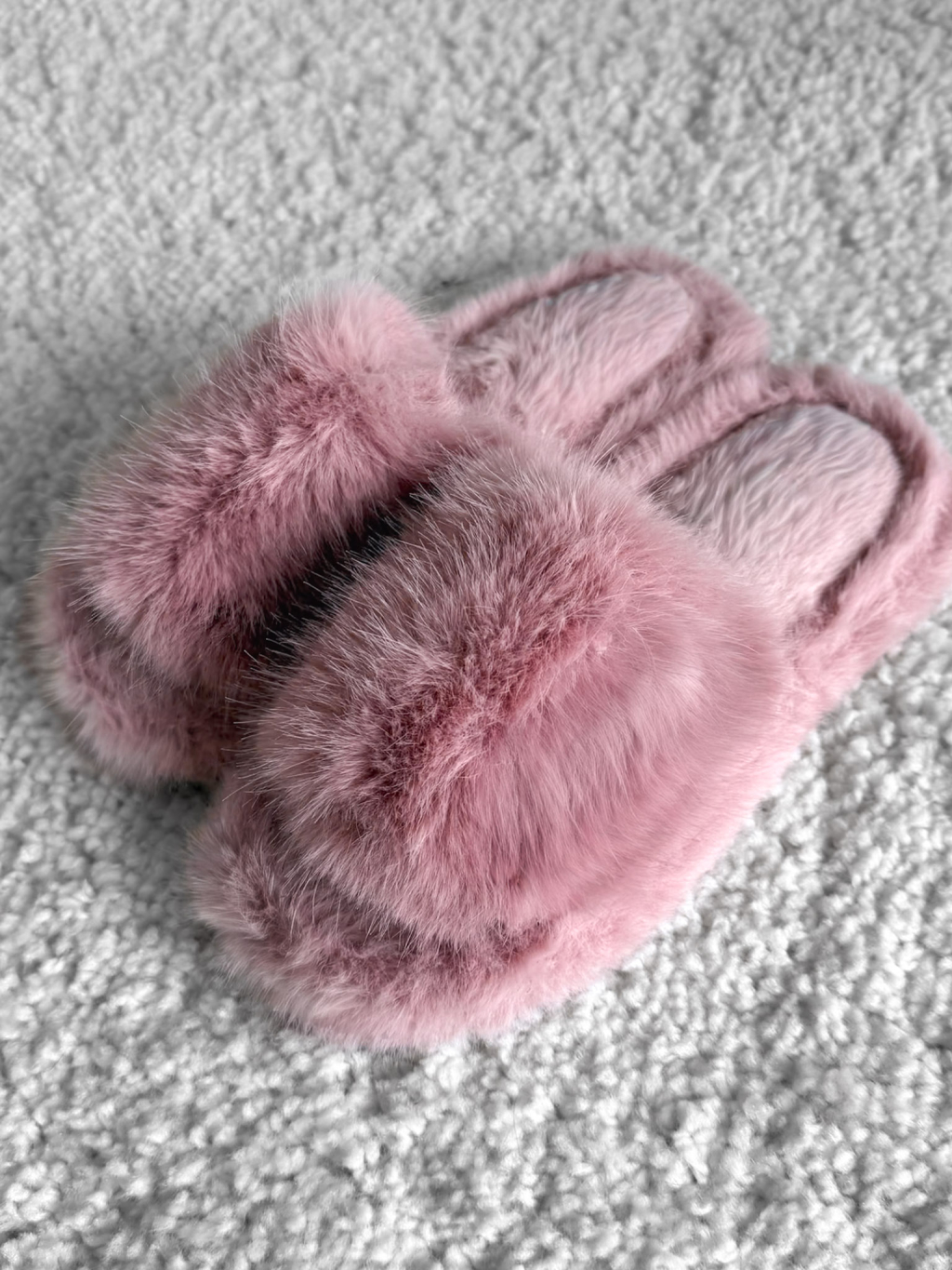 Růžové huňaté pantofle PUFFY