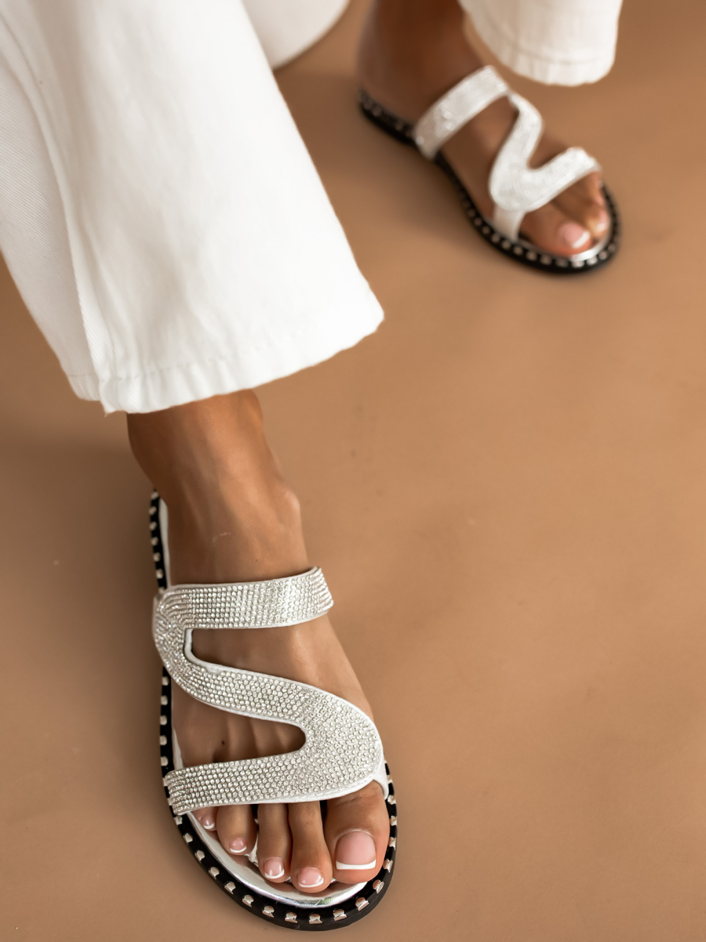 Stříbrné pantofle SURELY s kamínky