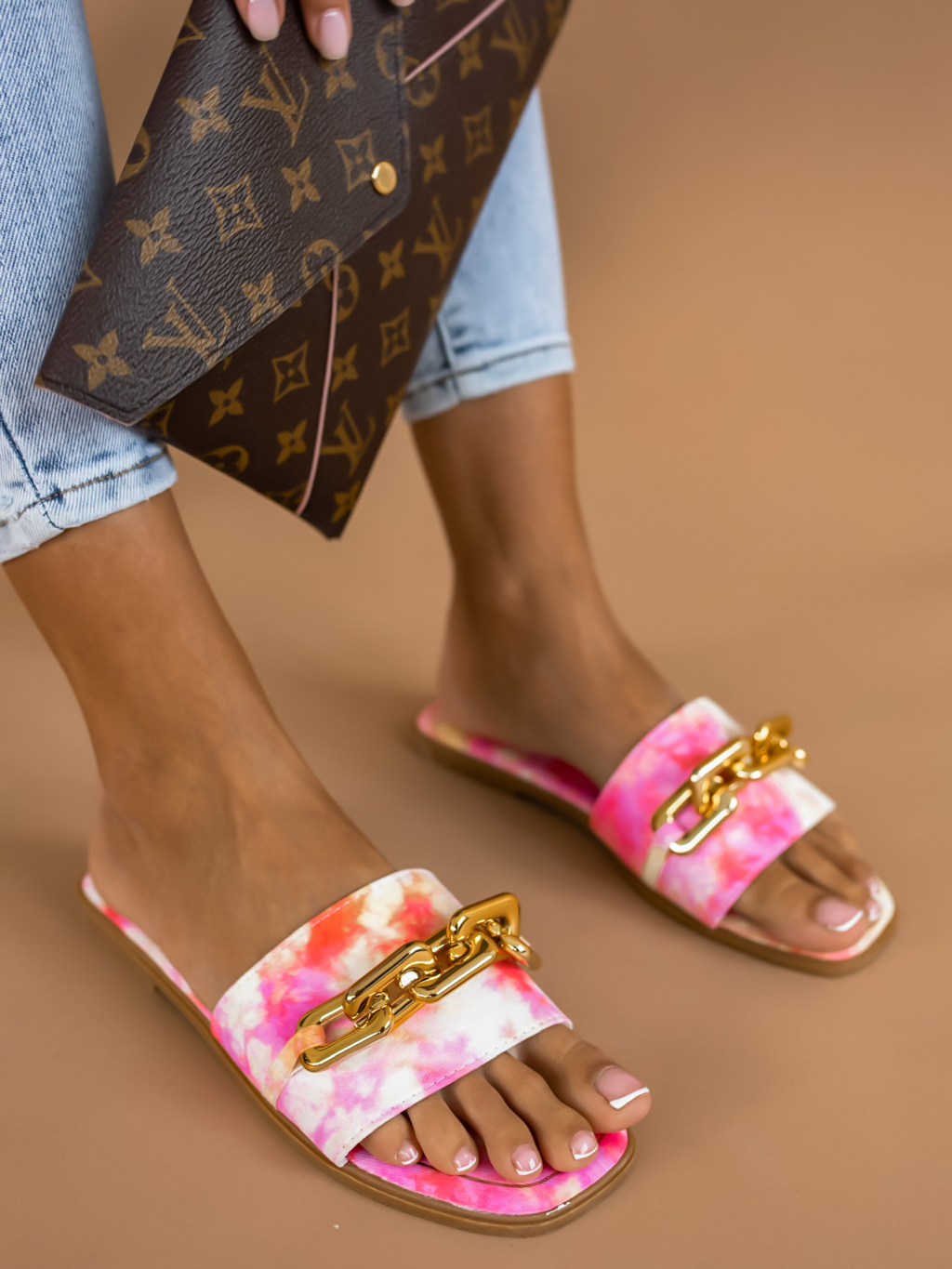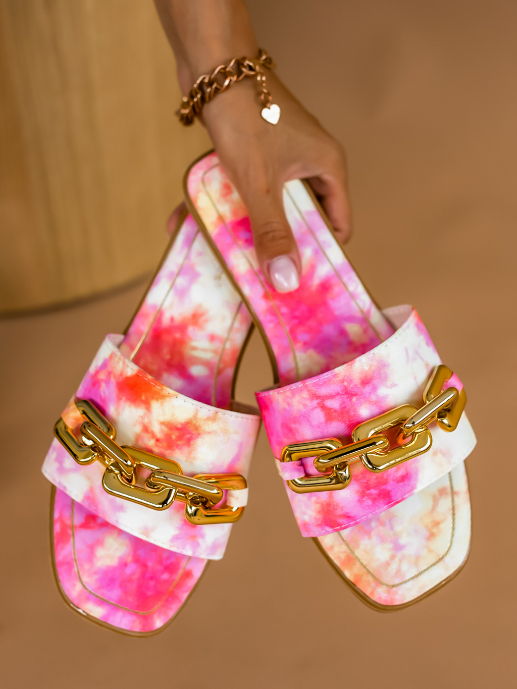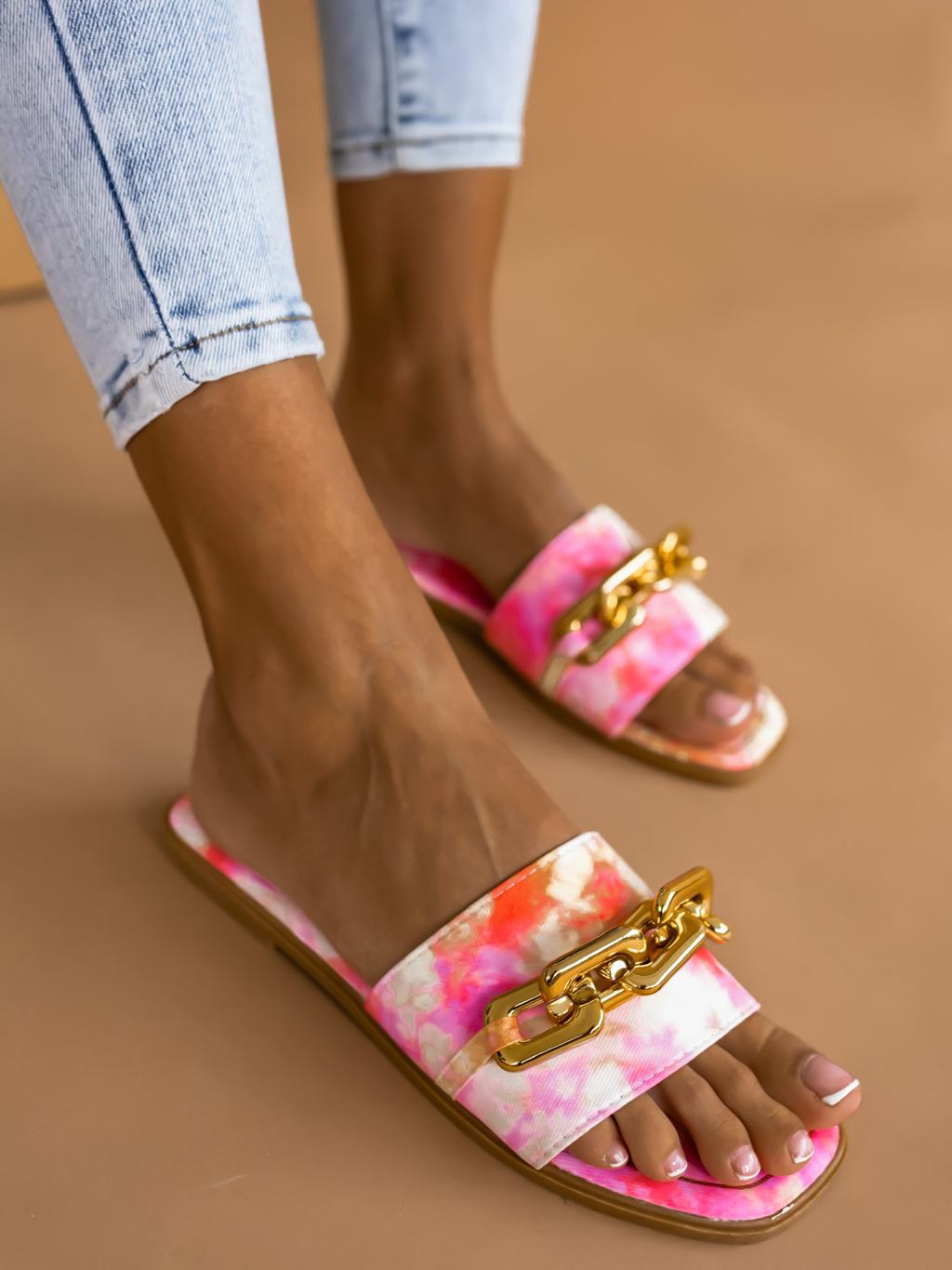 Vícebarevné pantofle MORTY se zlatým řetízkem