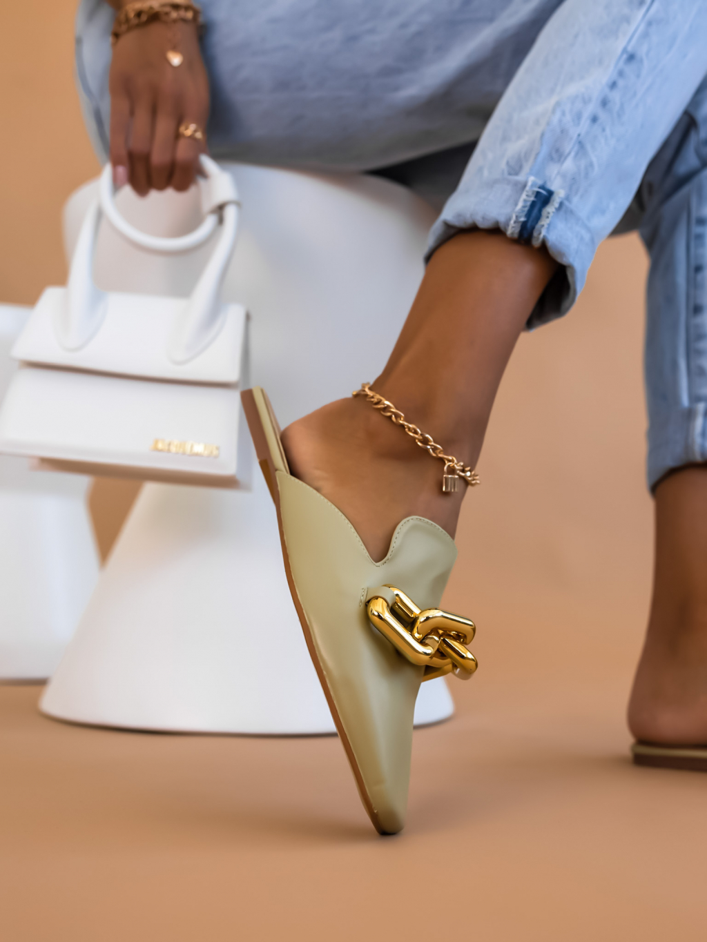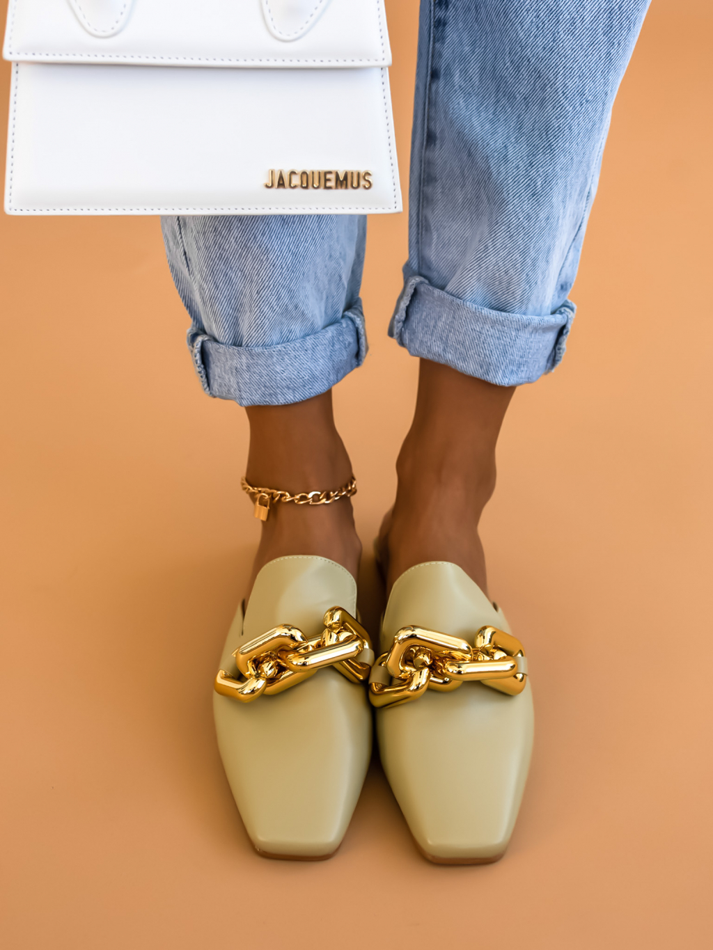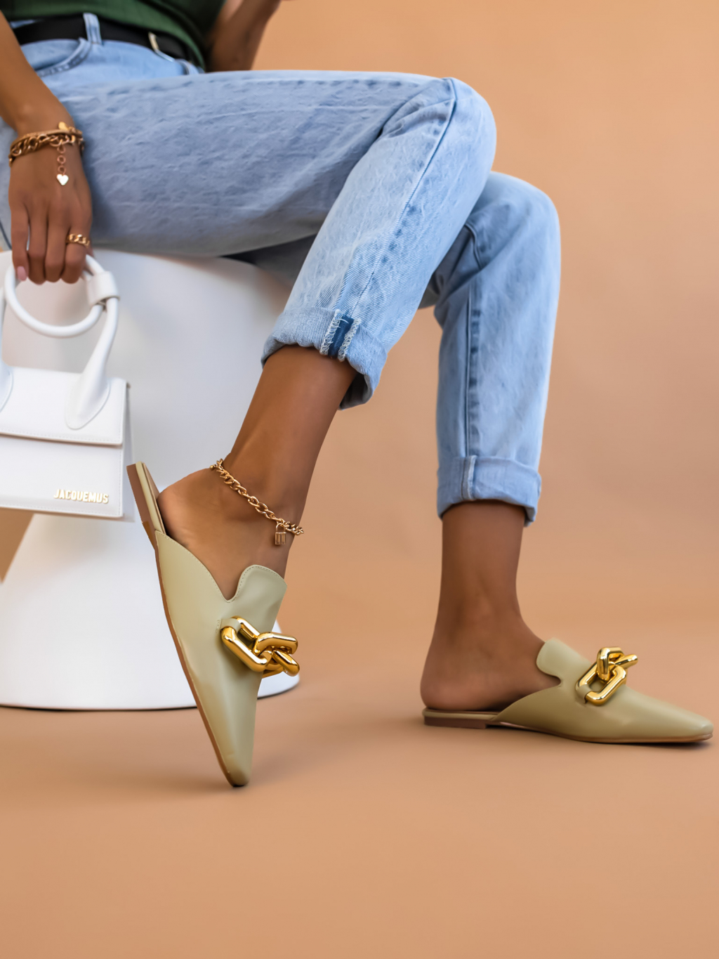 Zelené uzavřené pantofle ELLEN se zlatým doplňkem