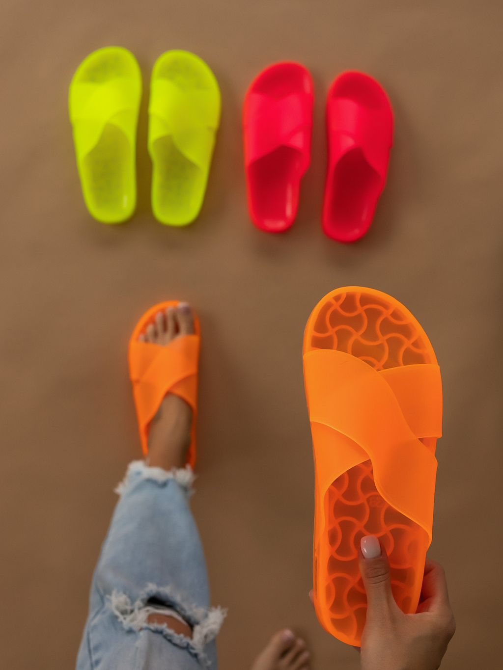Žluté pantofle SMOOTH s překříženými pásky