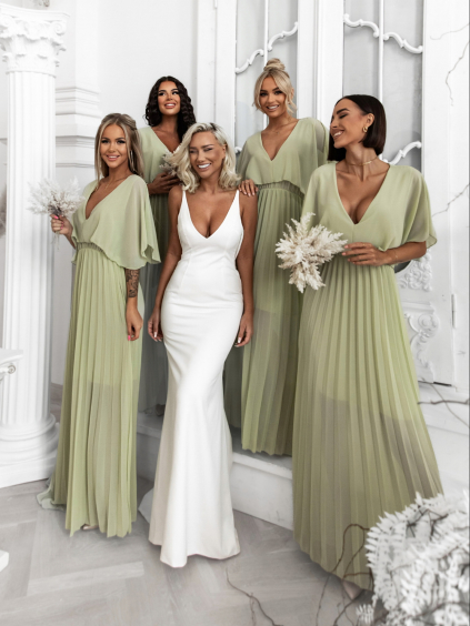 Mátové dlouhé splývavé šaty LERDISEL pro družičky