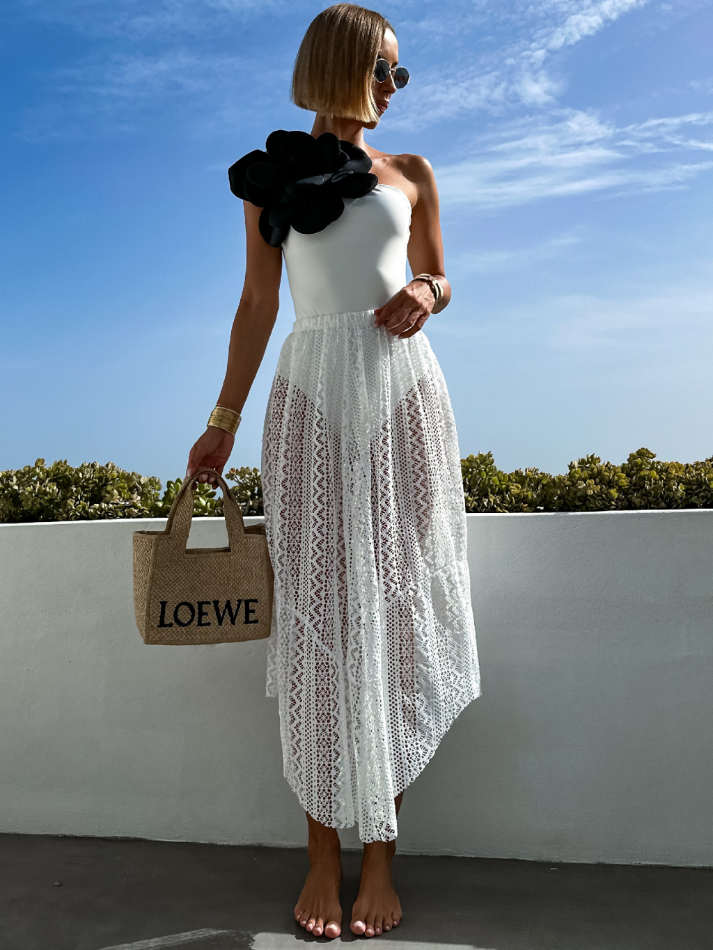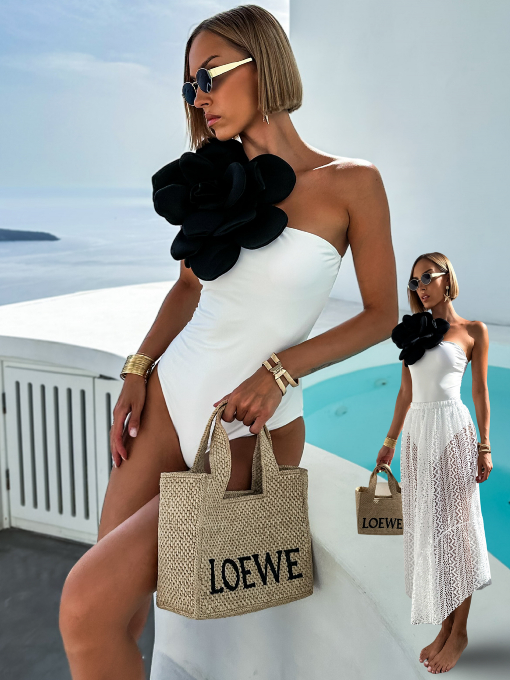 Bílé stylové jednodílné plavky KLEANTIS se sukní