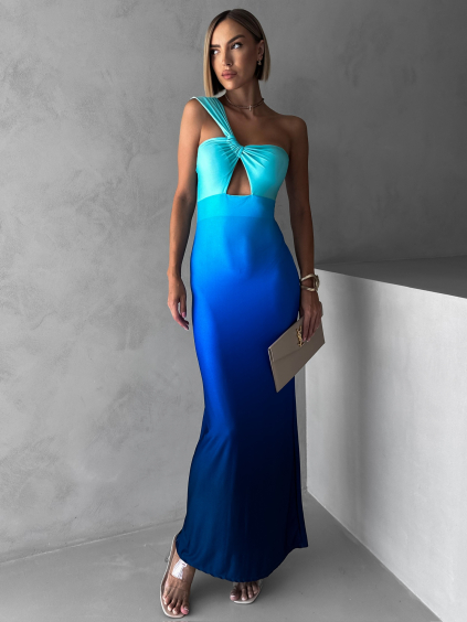 Petrolejové saténové šaty FIAMMAR na jedno rameno